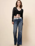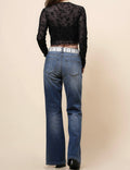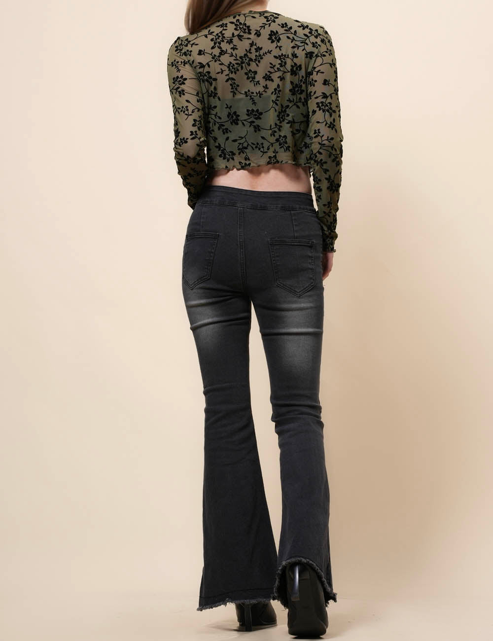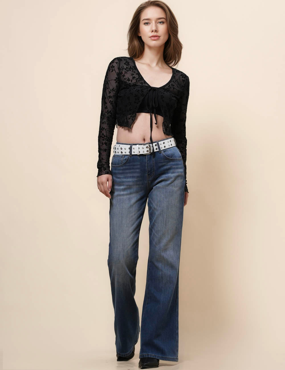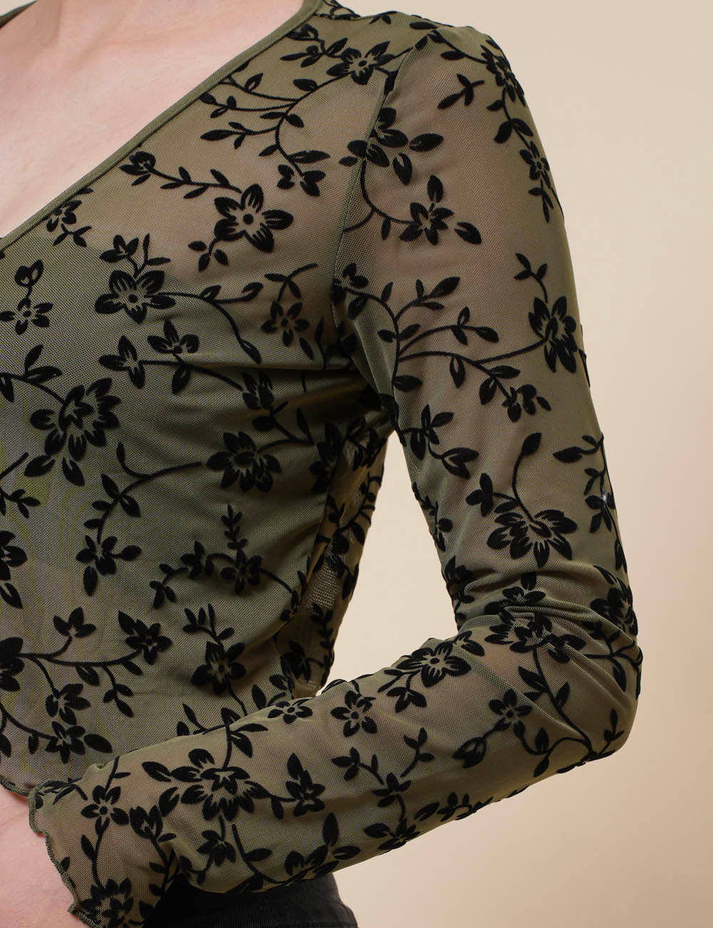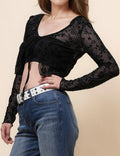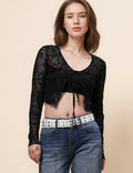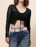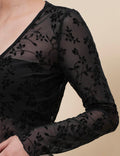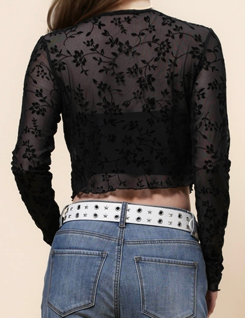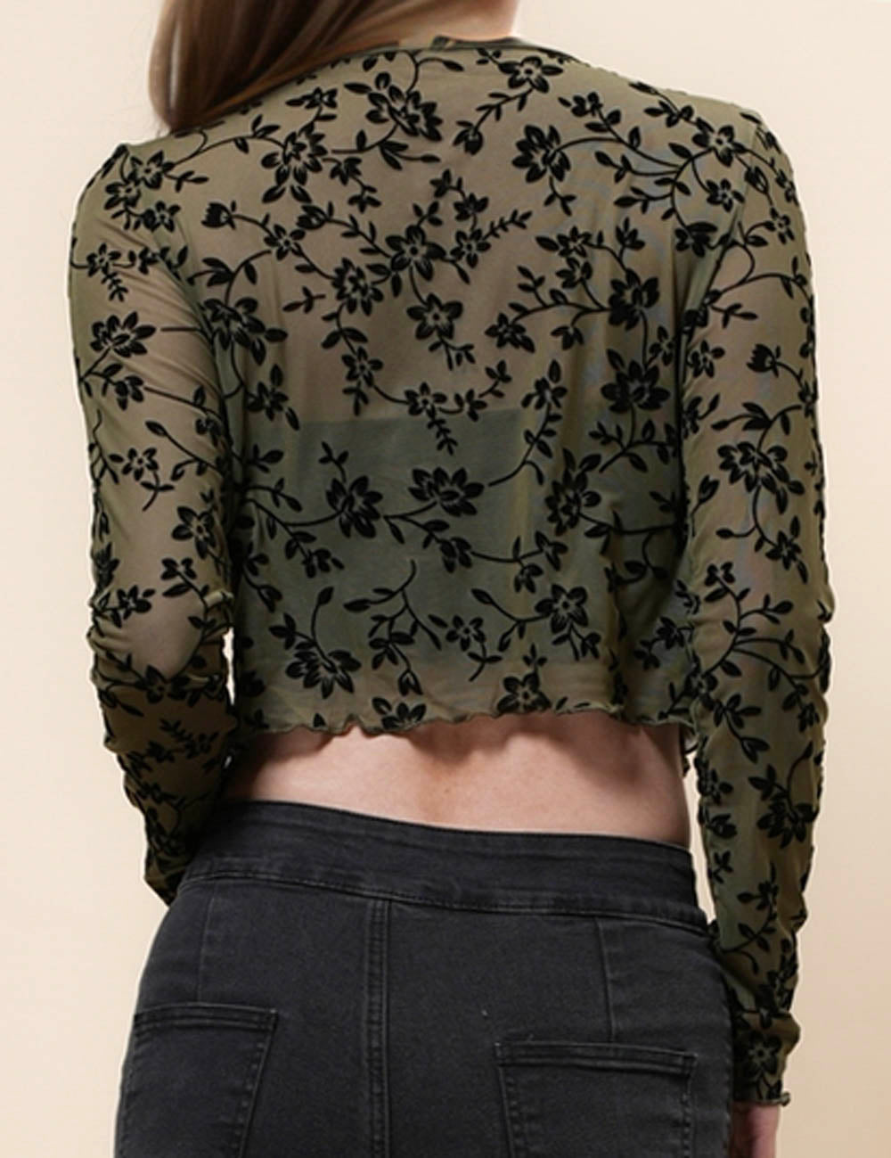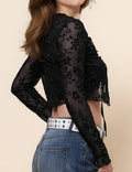 Ladies Floral See Sheer String Tie Mesh Blouse SKT4996