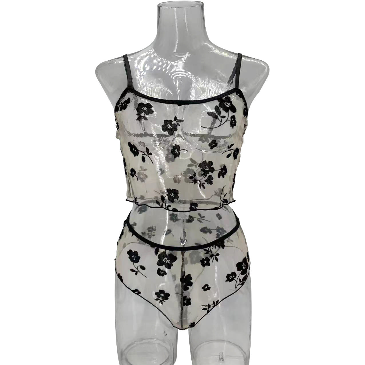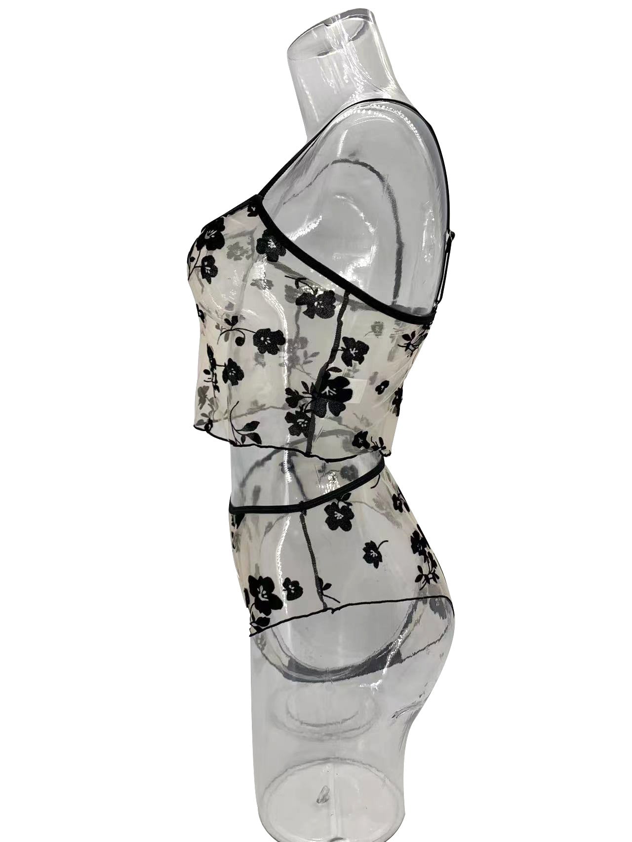 Ladies Floral See Through 2PCS Lingerie Set SKLG4160