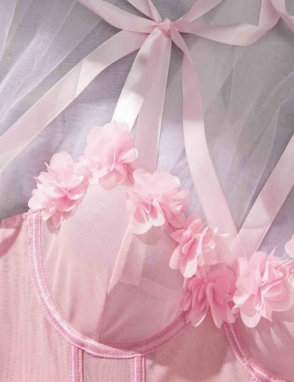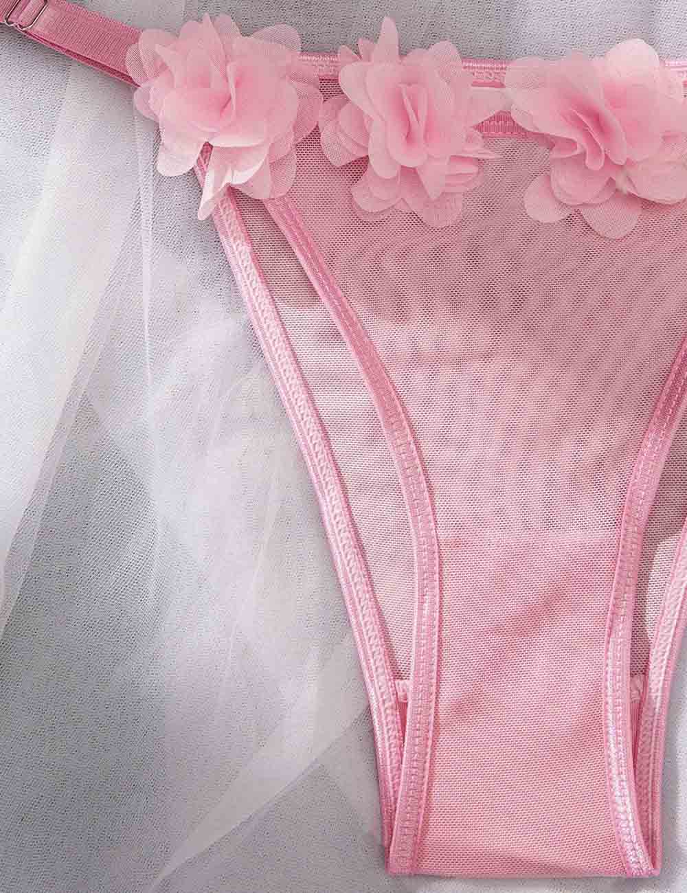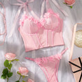 Ladies Floral Splice See Through 2PCS Lingerie Set 8HF4328