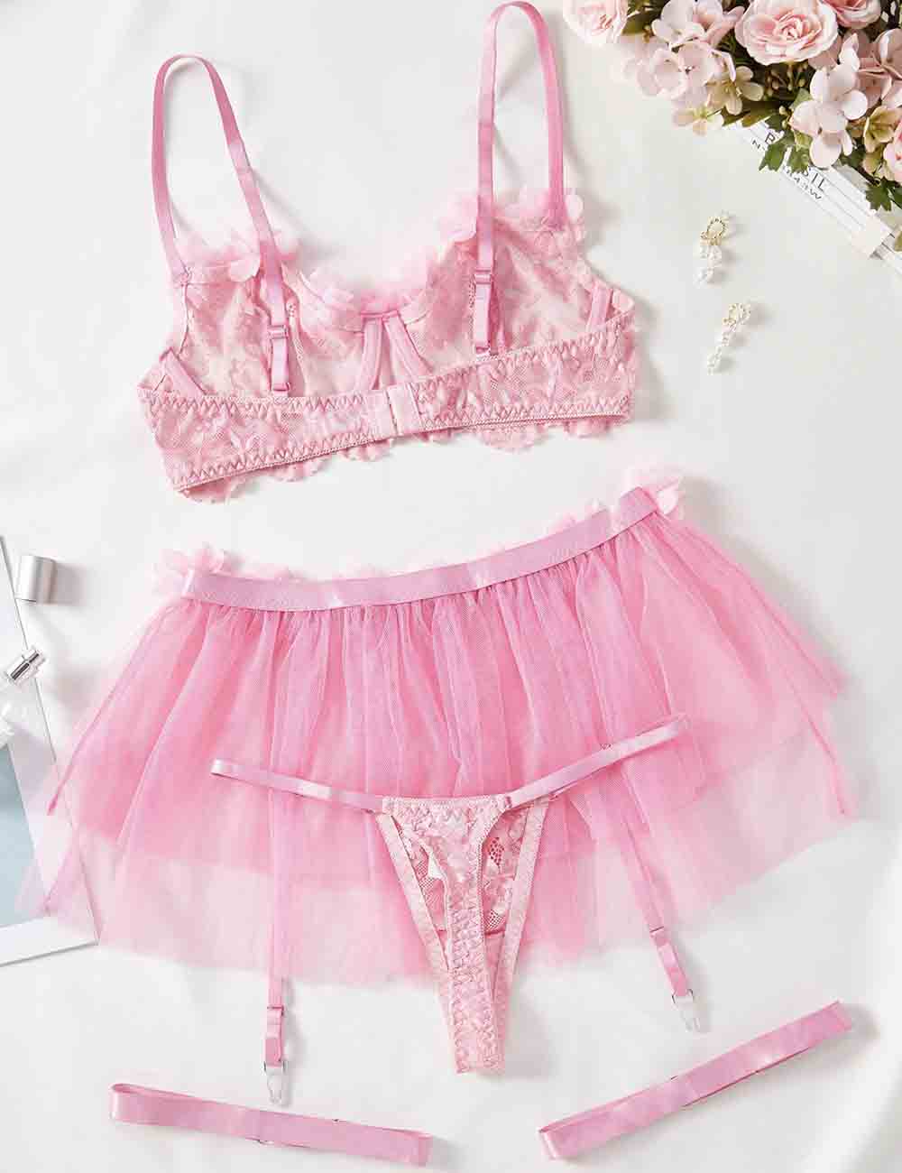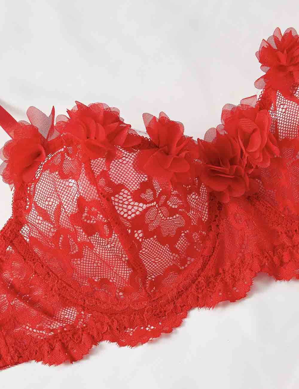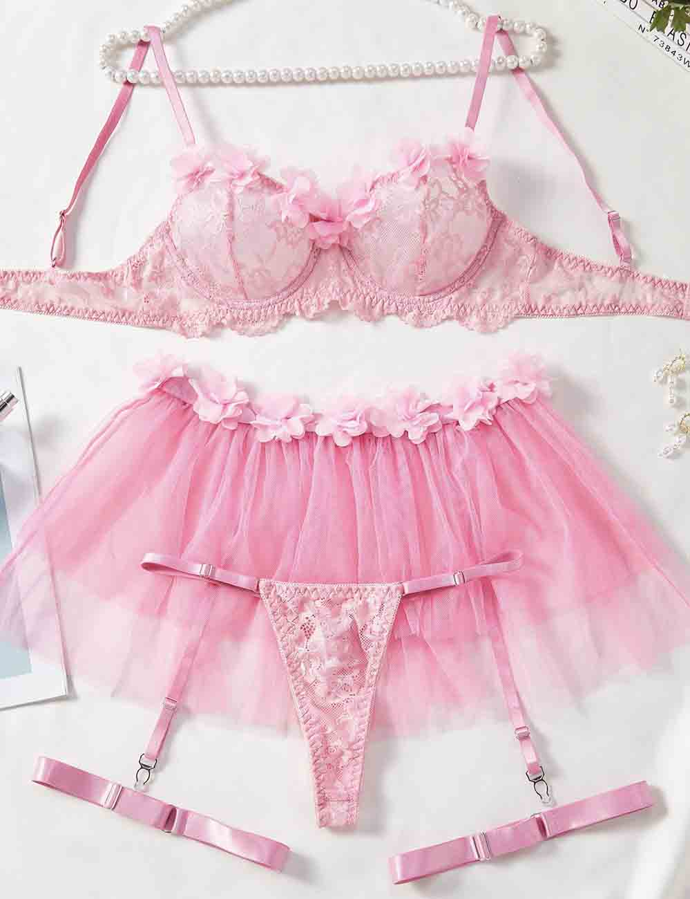 Ladies Floral Splice See Through 3PCS Lingerie Set 8HF4247