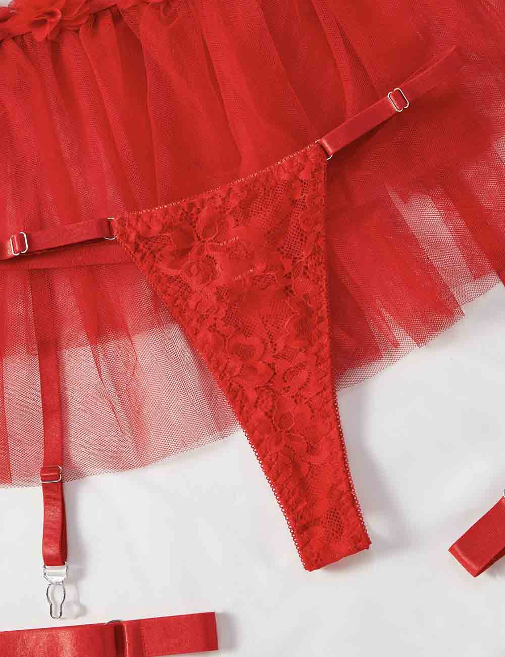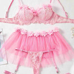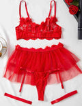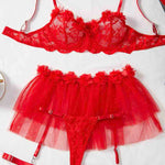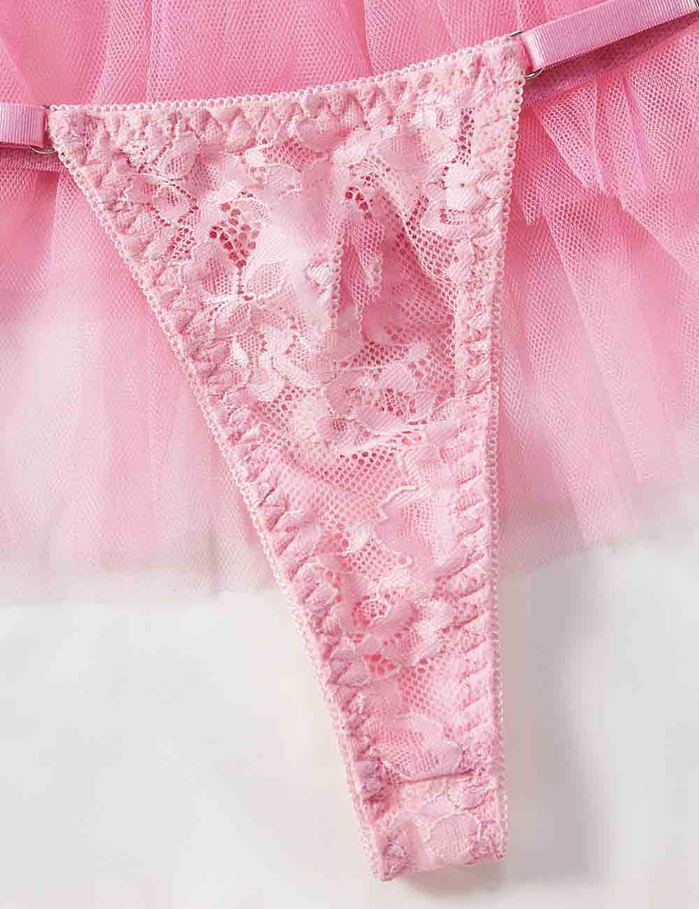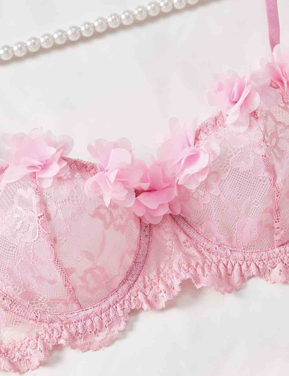 Ladies Floral Splice See Through 3PCS Lingerie Set 8HF4247