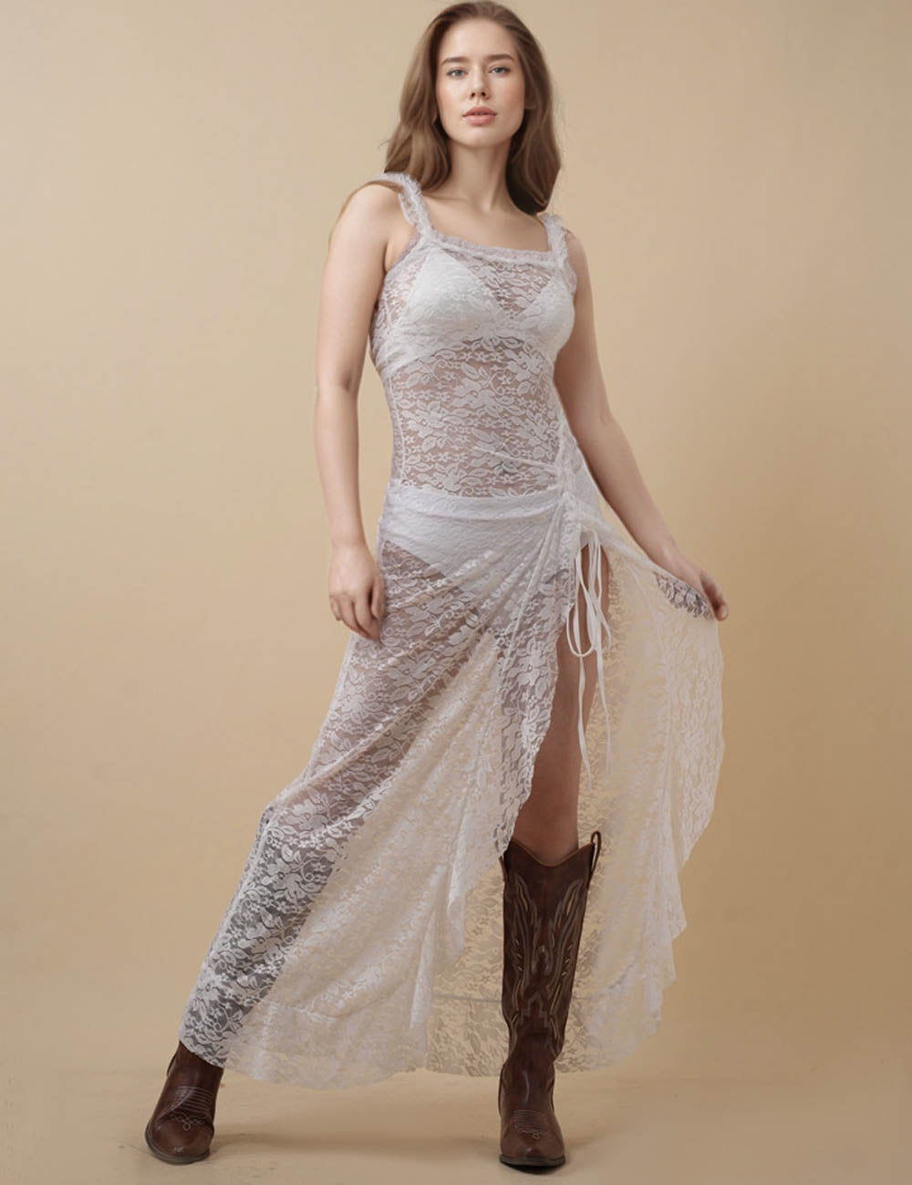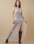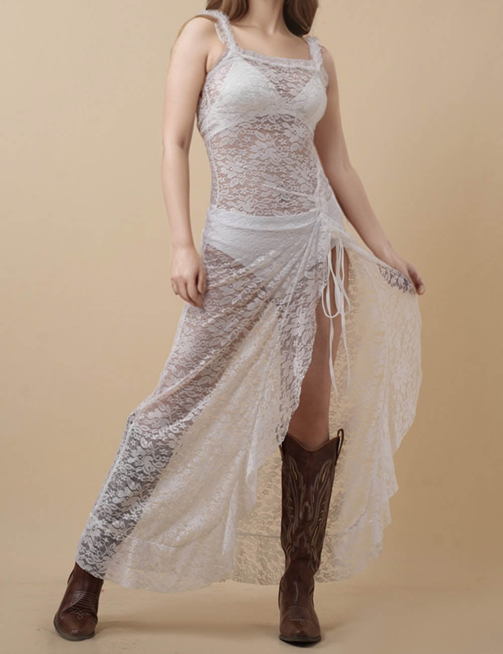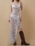 Ladies Floral String Shoulder Lace Ruffle Maxi Dress 8SKD51209