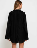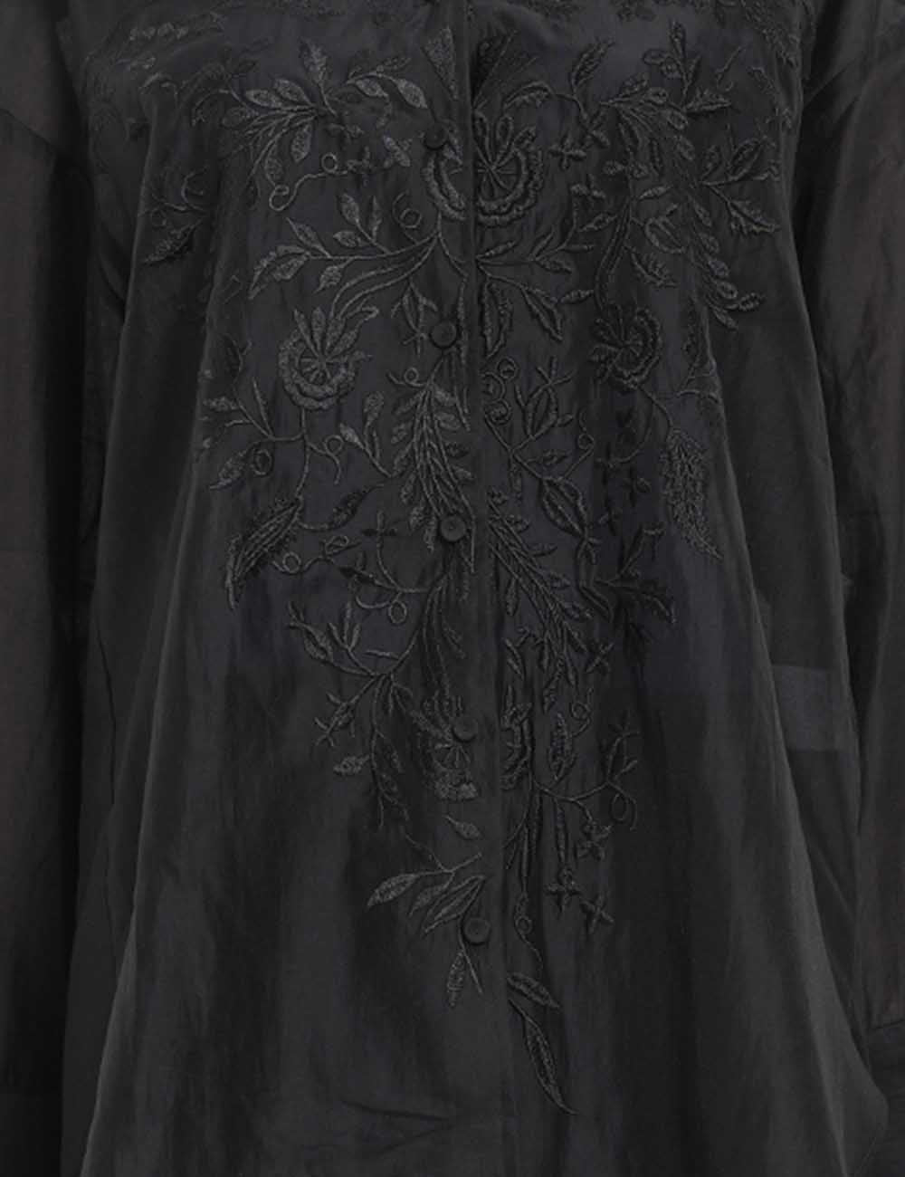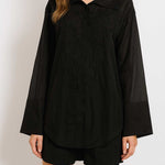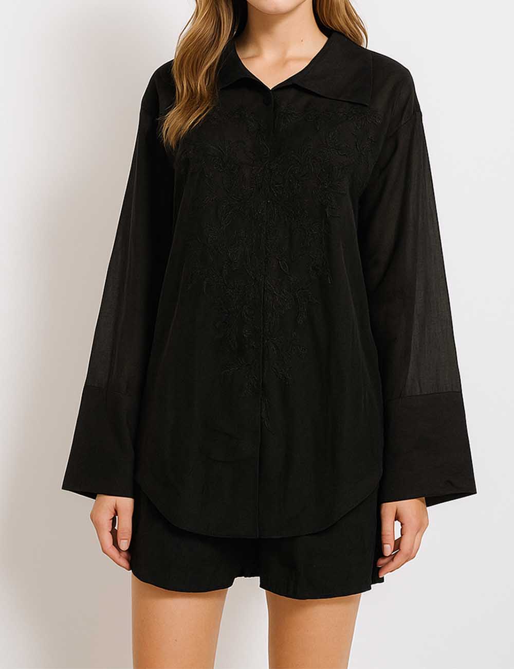 Ladies Flower Embroidery Button Down Shirt & Shorts Set