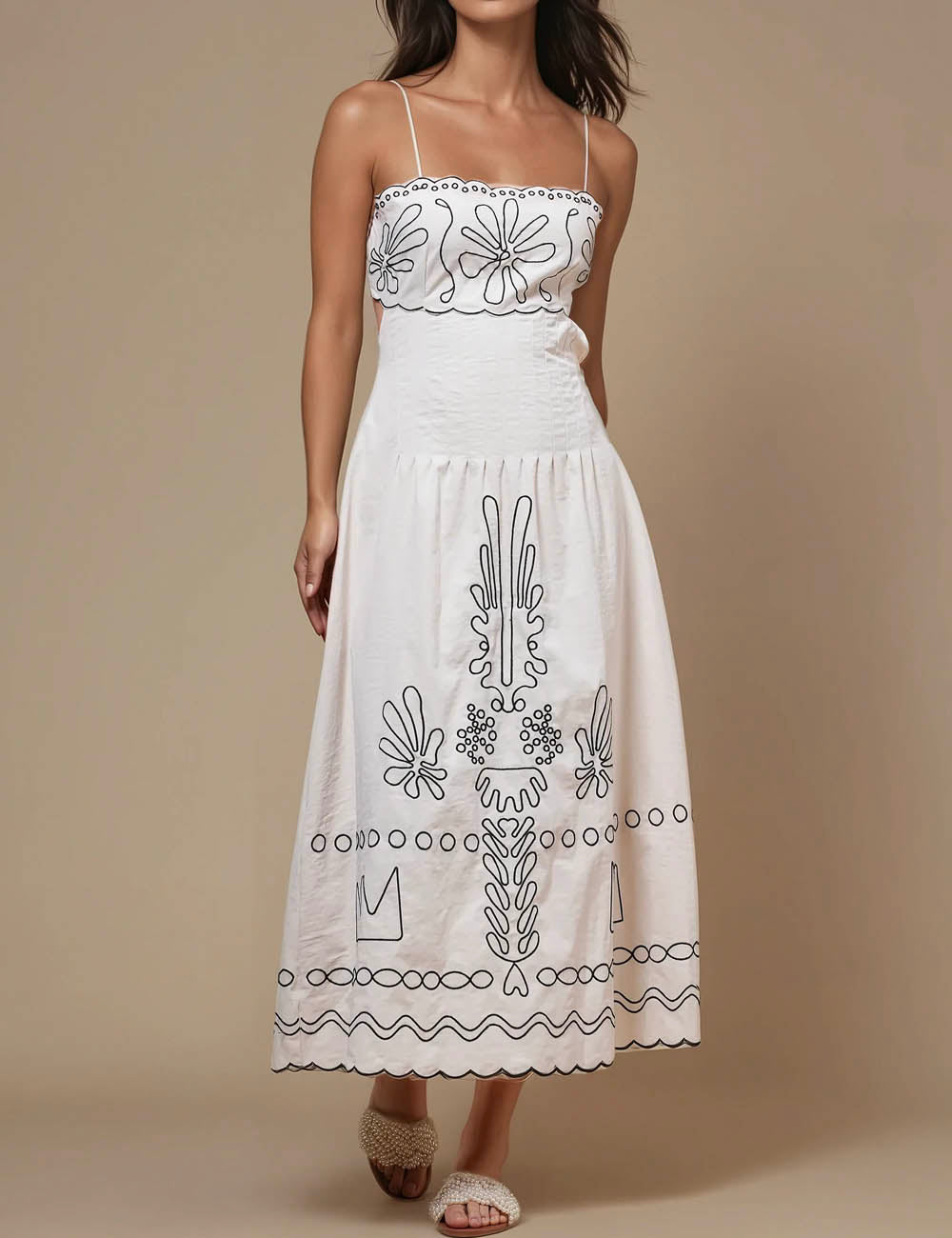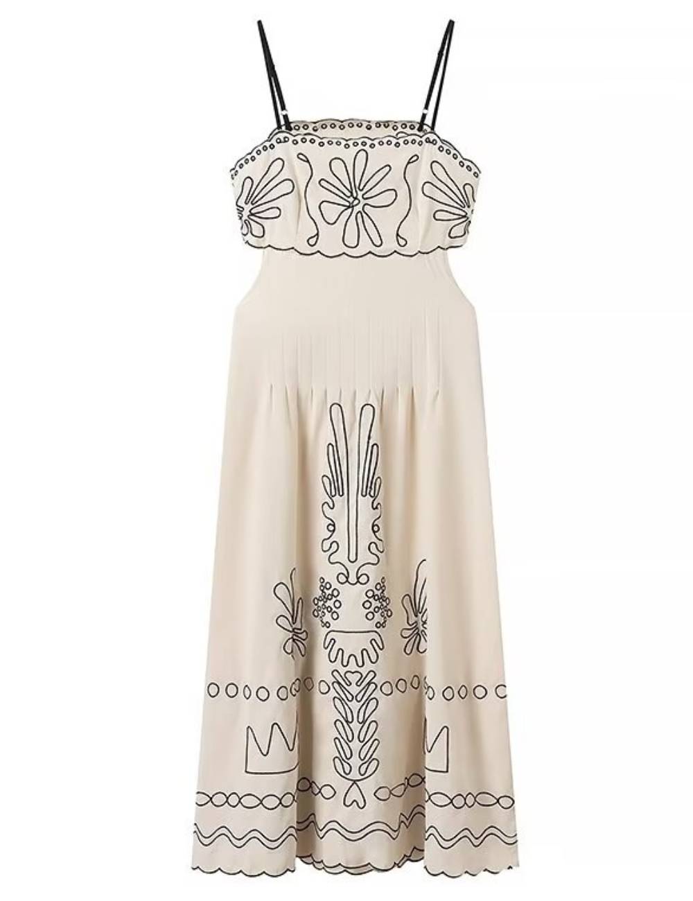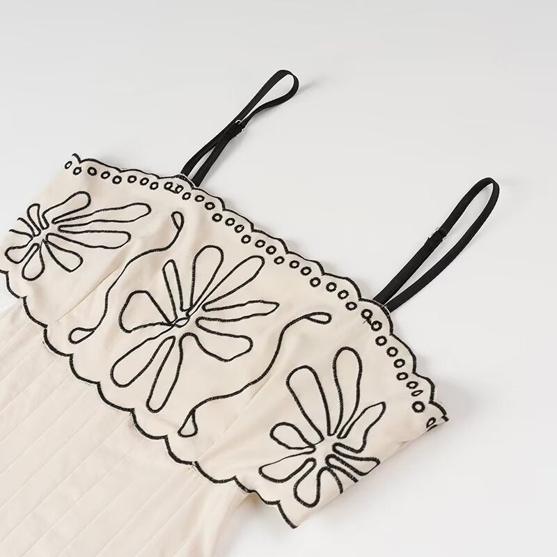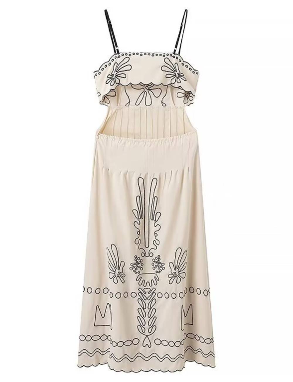 Ladies Flower Embroidery Sleeveless Midi Dress SKD50206