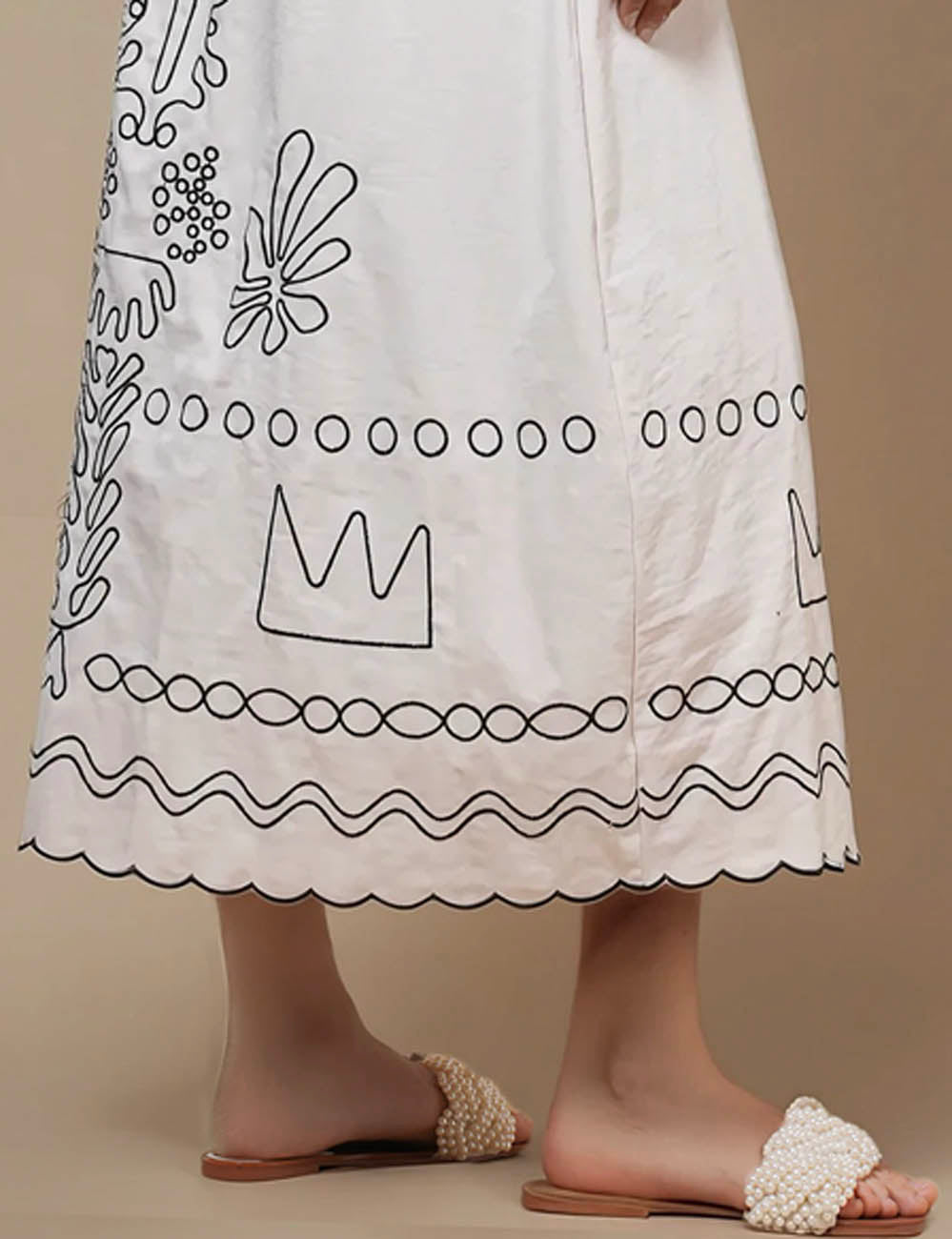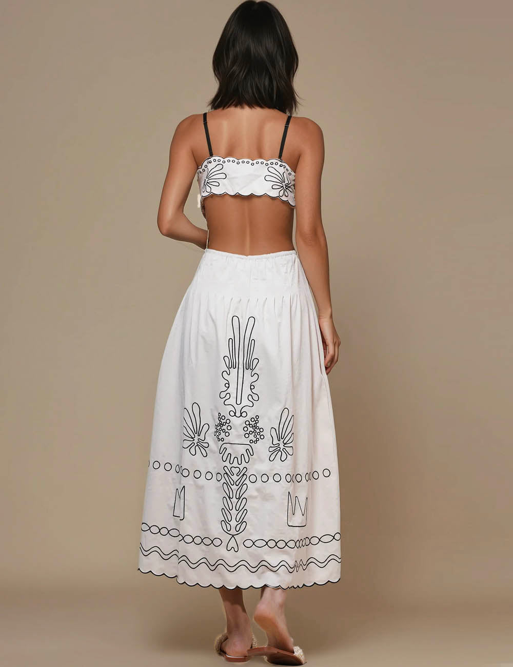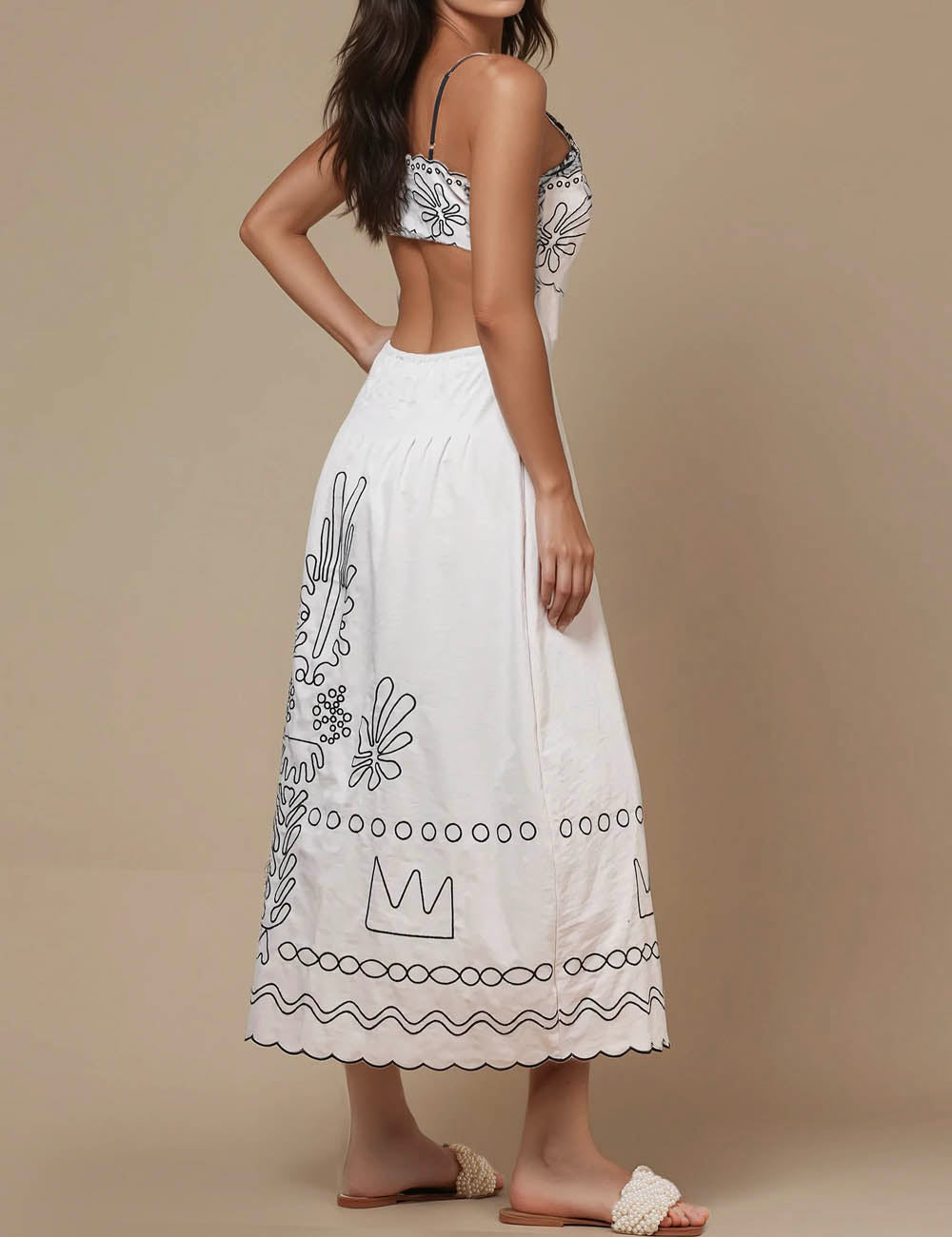 Ladies Flower Embroidery Sleeveless Midi Dress SKD50206