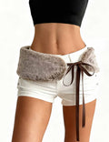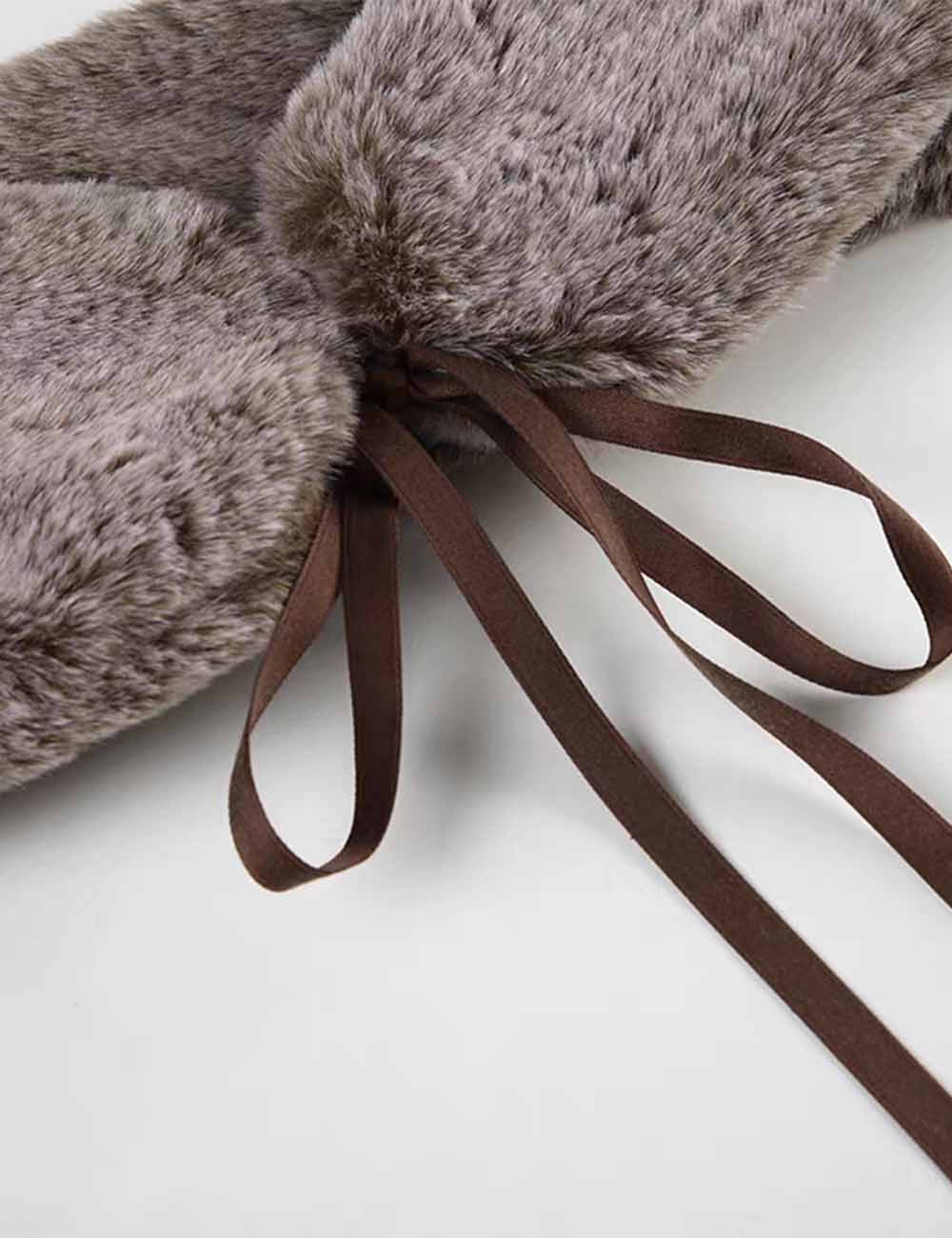 Ladies Fluffy Plush Faux Fur Side Tie Waist Belt