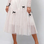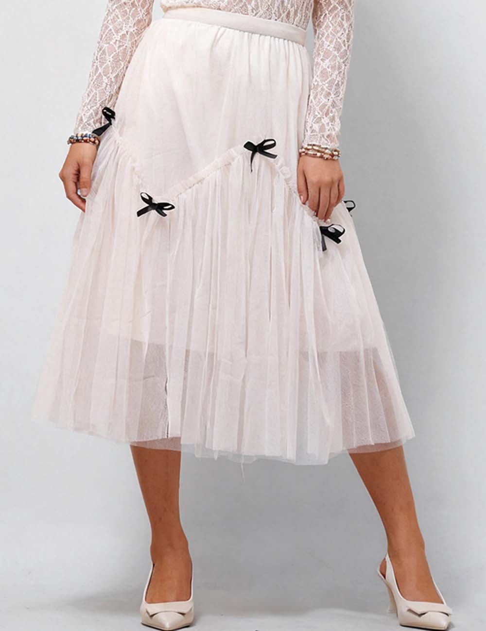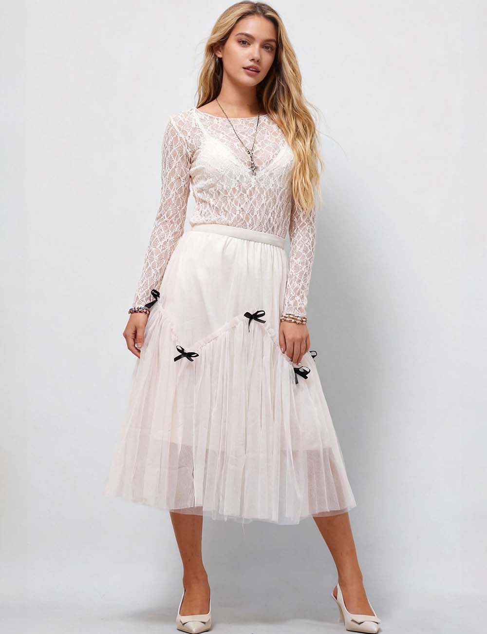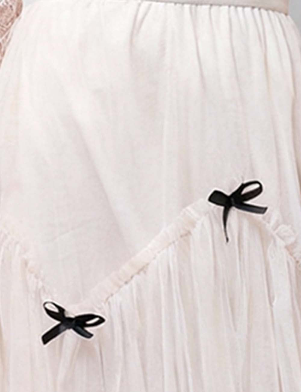 Ladies Gauzy Tiny Bowknot Color Block Midi Skirt SKS50450B