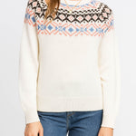 Ladies Geometric Jacquard Pullover Long Sleeves Sweater