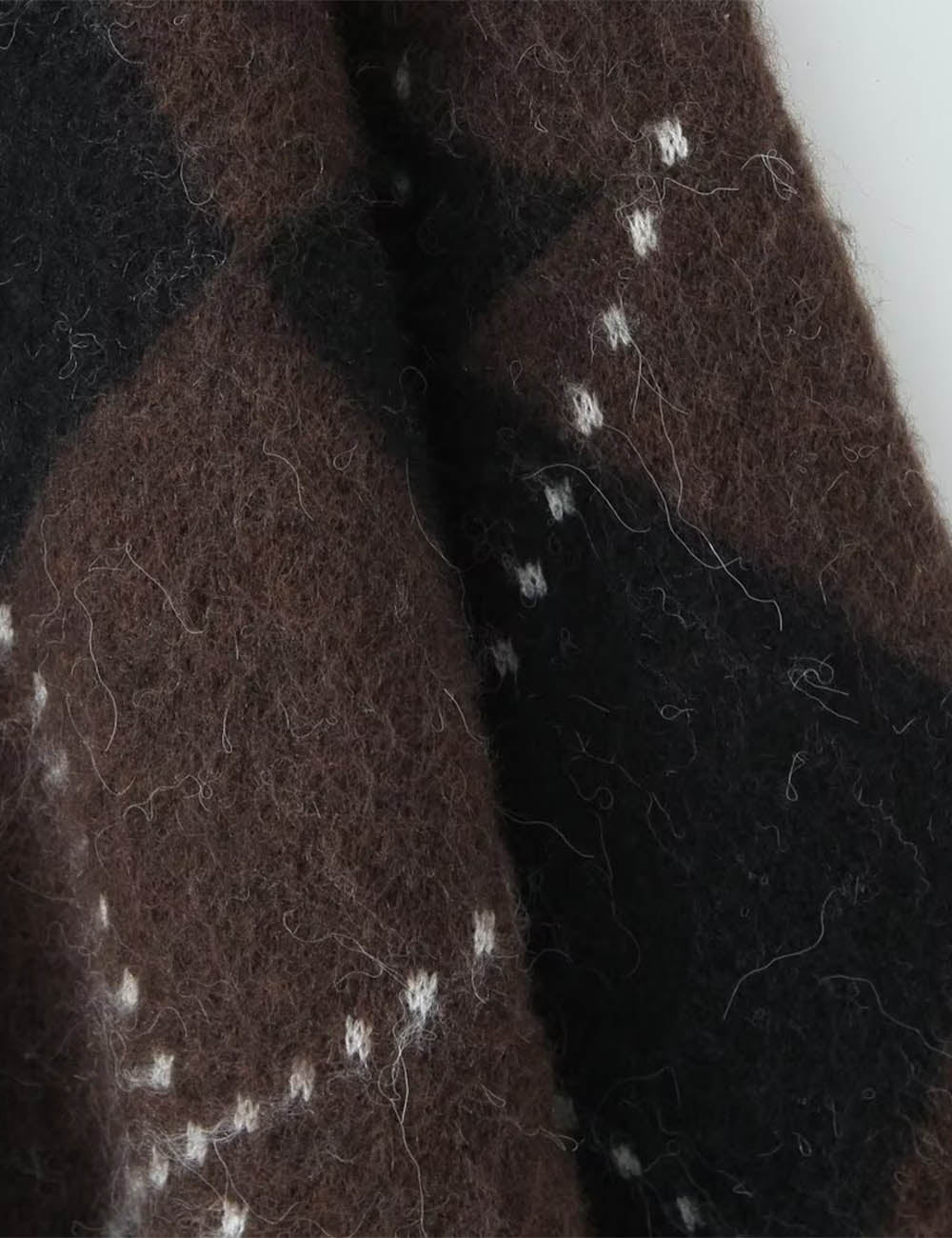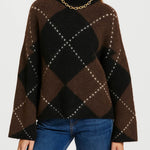 Ladies Geometric Pattern Mock Collar Long Sleeves Sweater