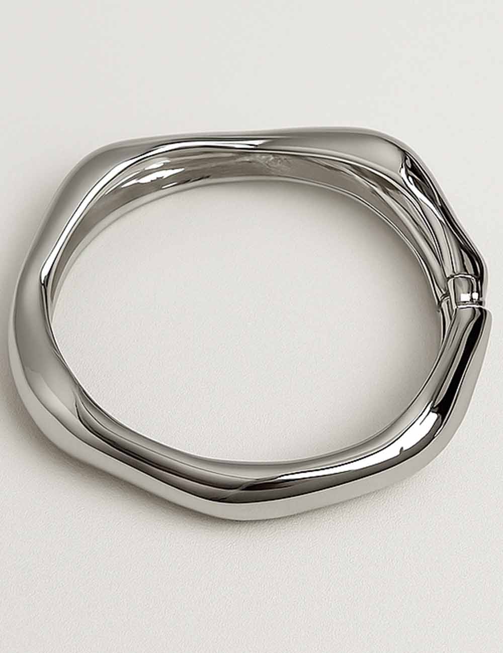 Ladies Geometric Wave-Shaped Glossy Metal Bangle