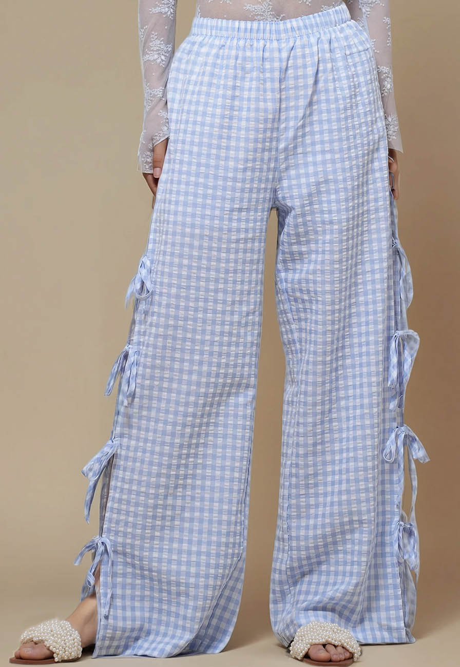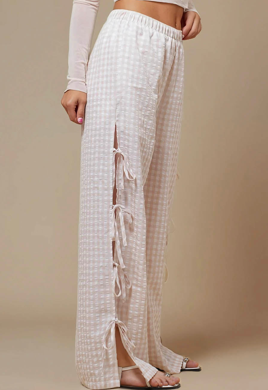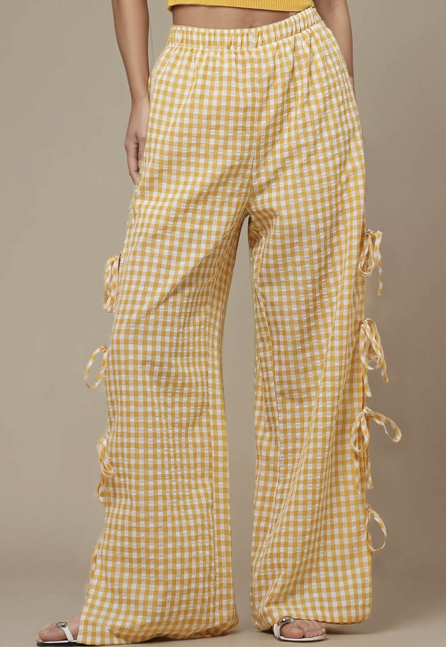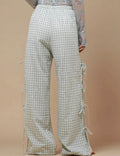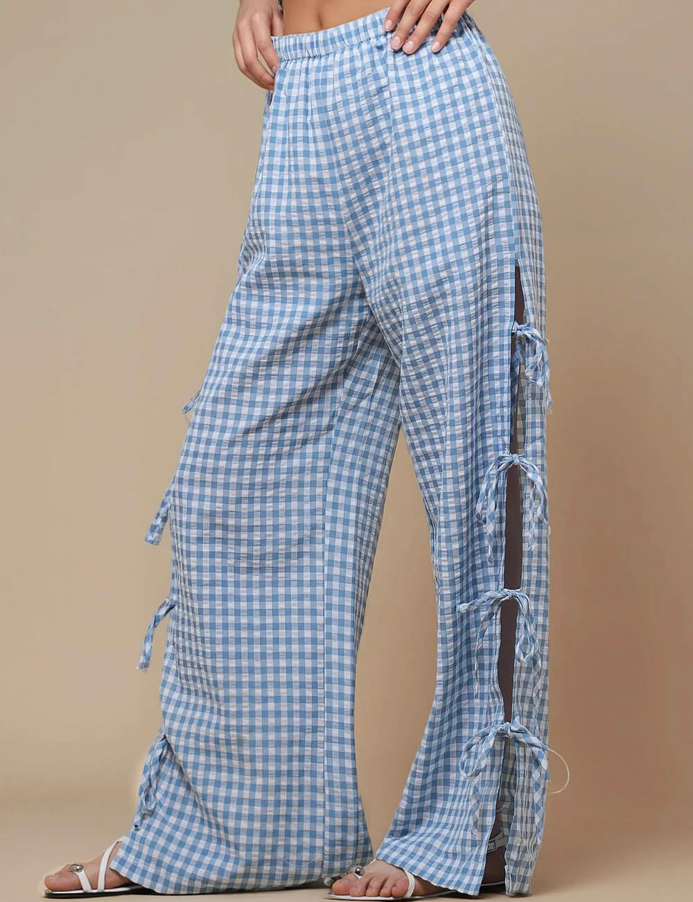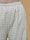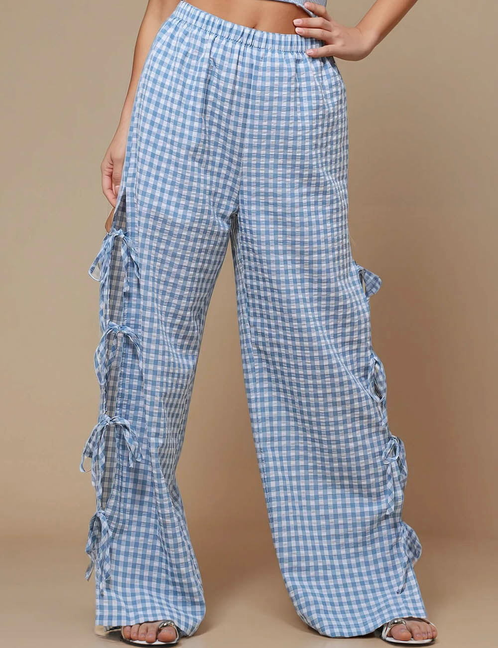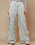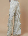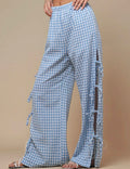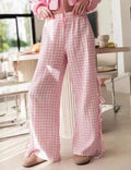 Ladies Gingham Elastic Waist Wide Leg Pants 60052