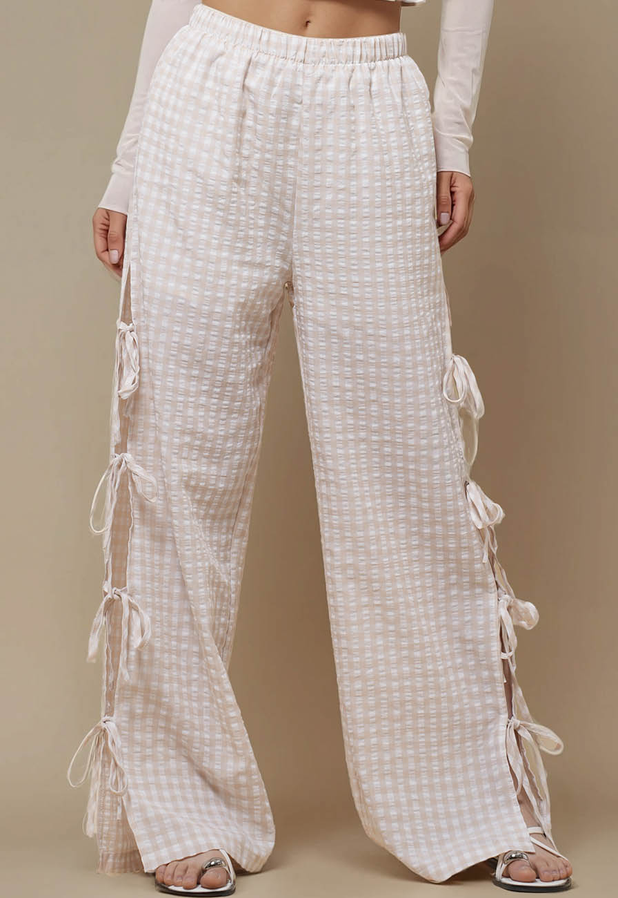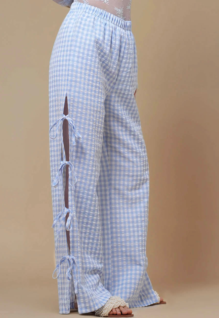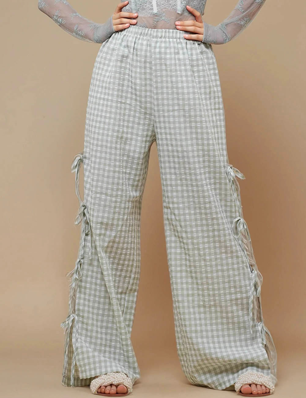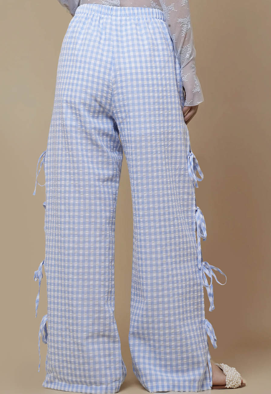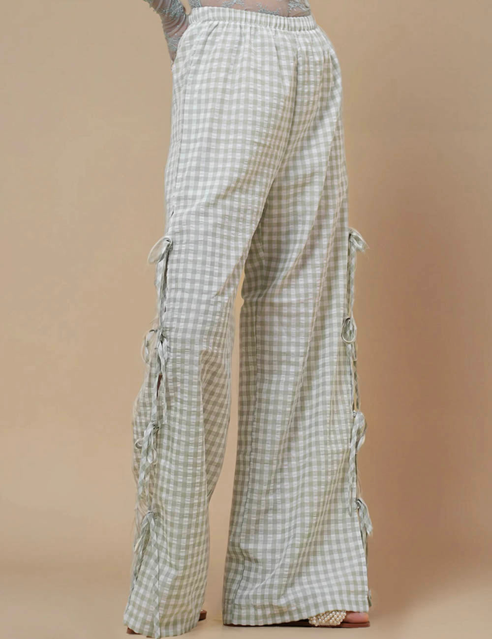 Ladies Gingham Elastic Waist Wide Leg Pants 60052