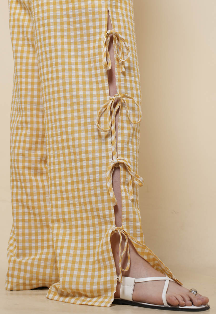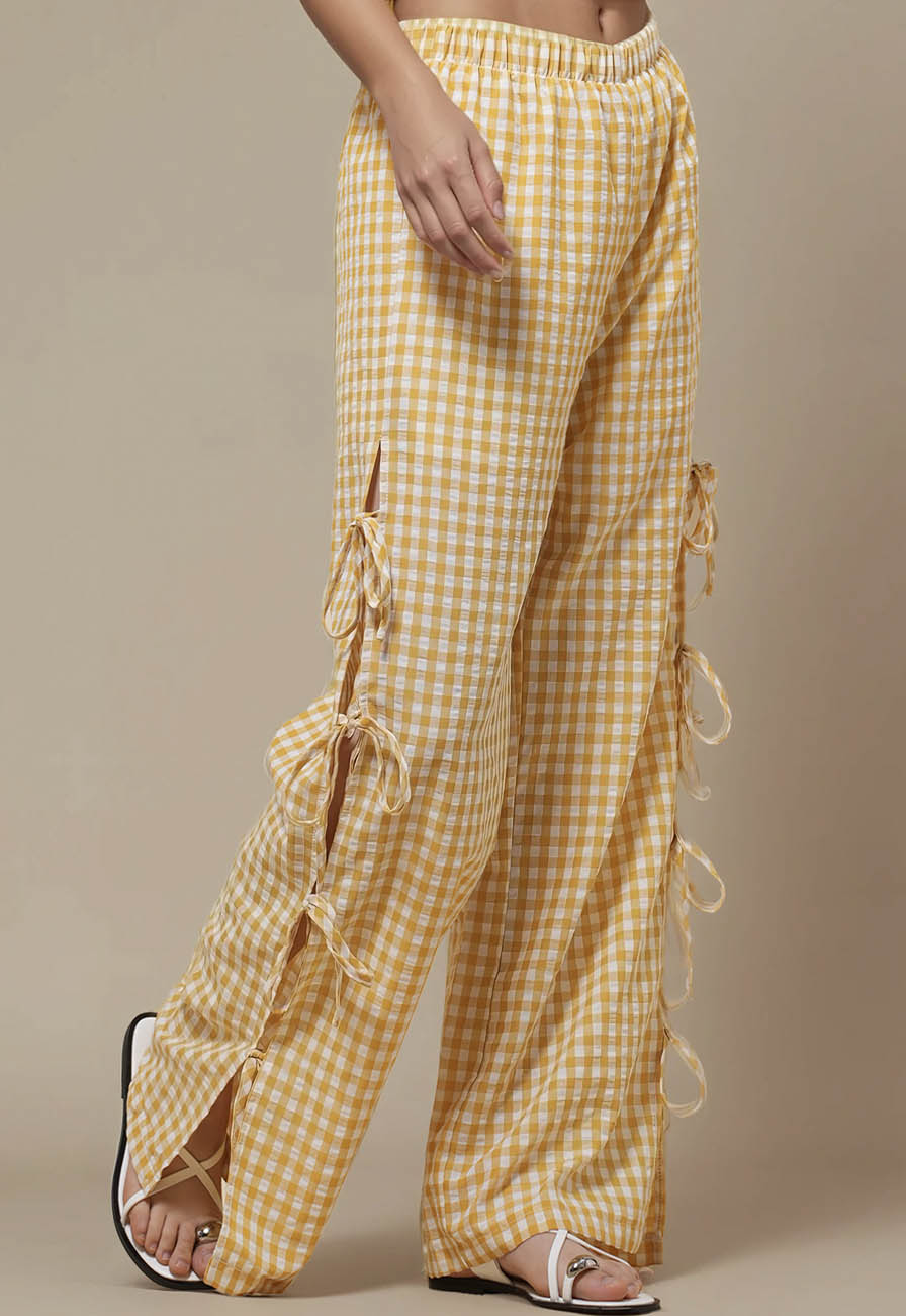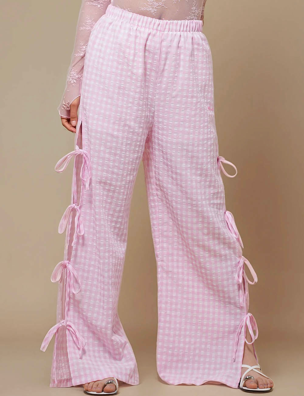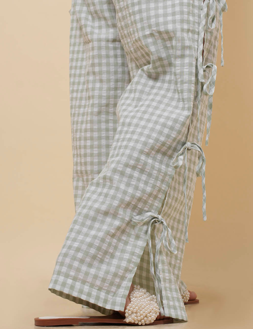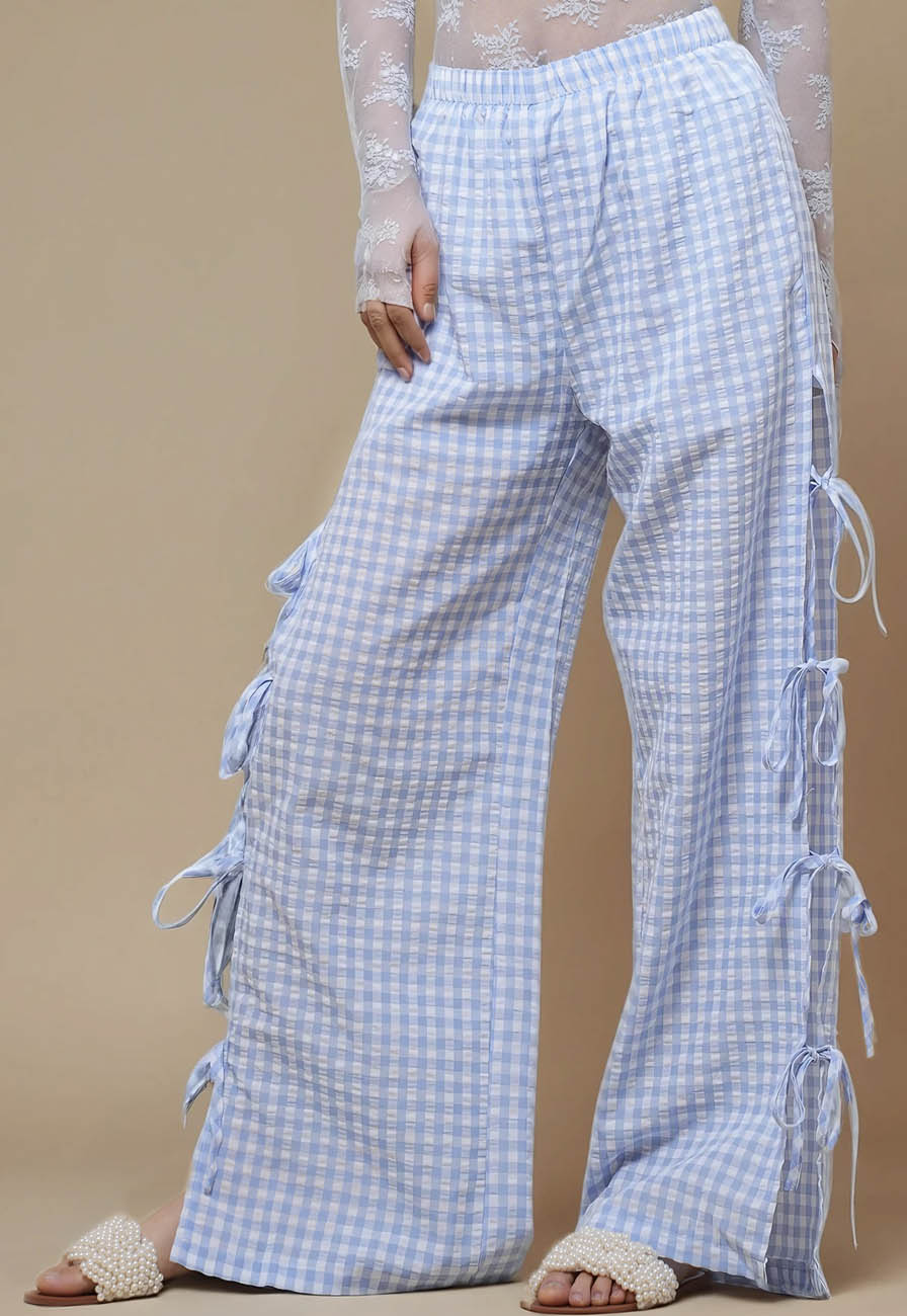 Ladies Gingham Elastic Waist Wide Leg Pants 60052