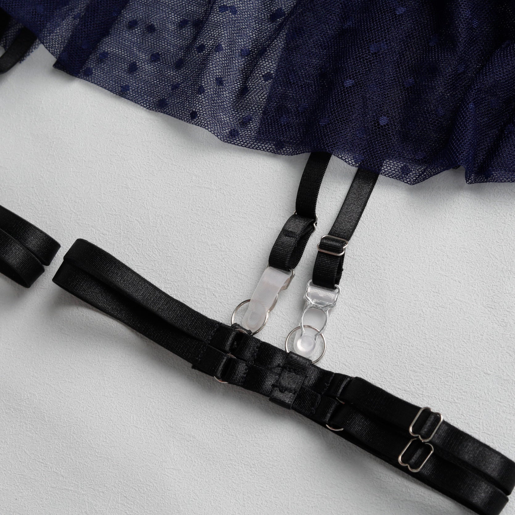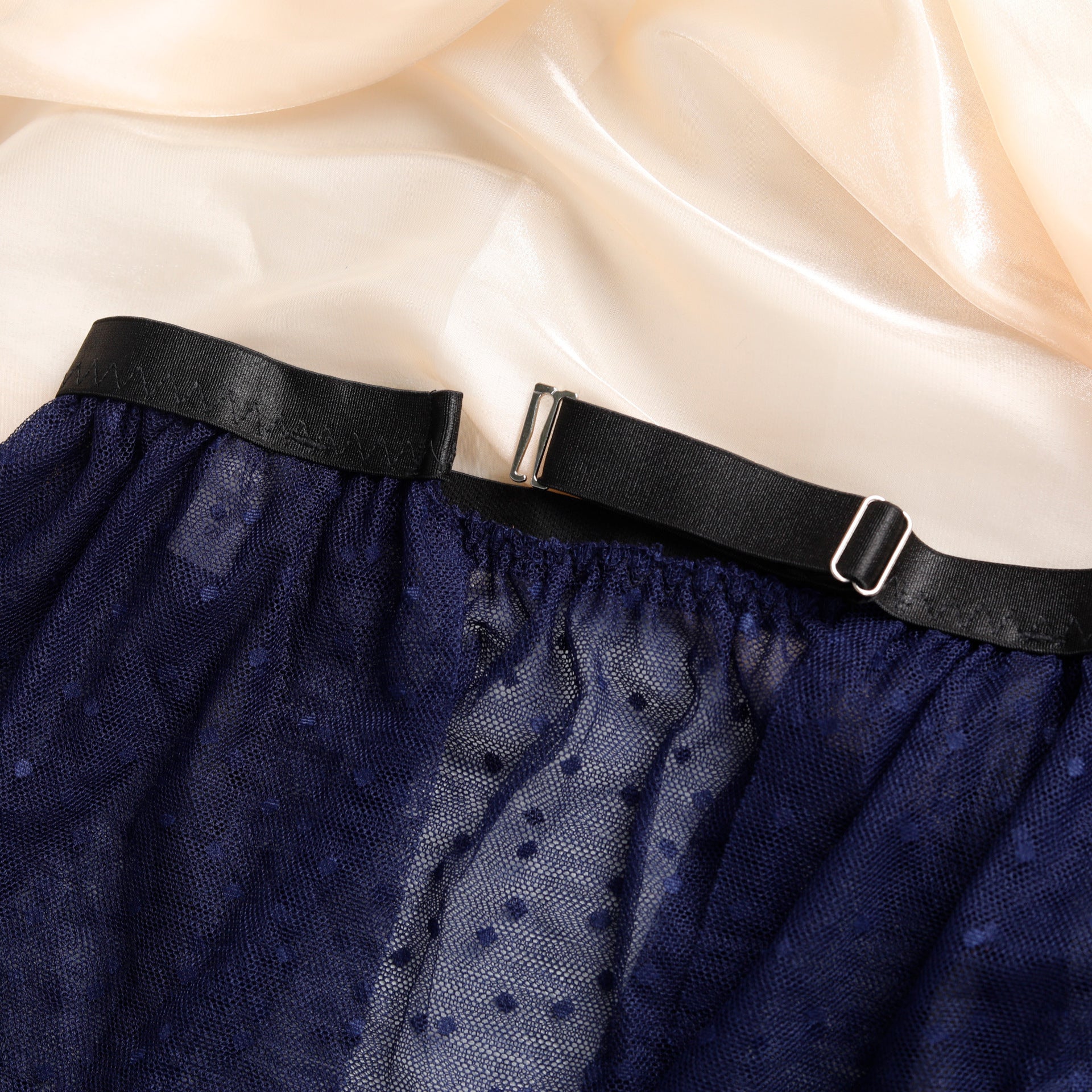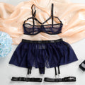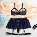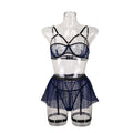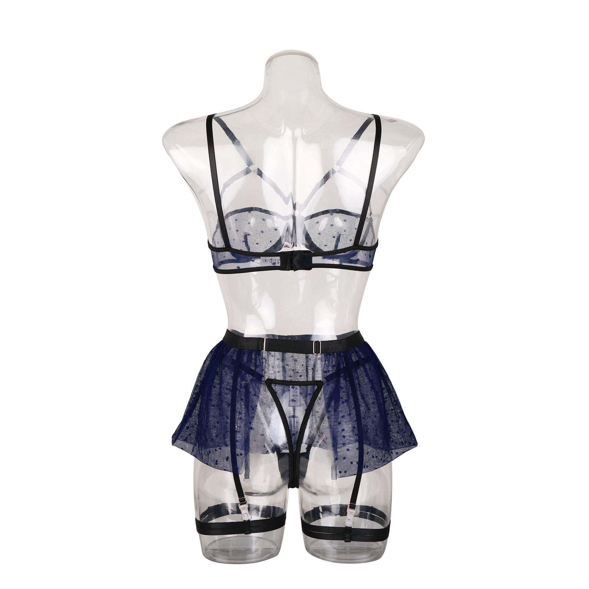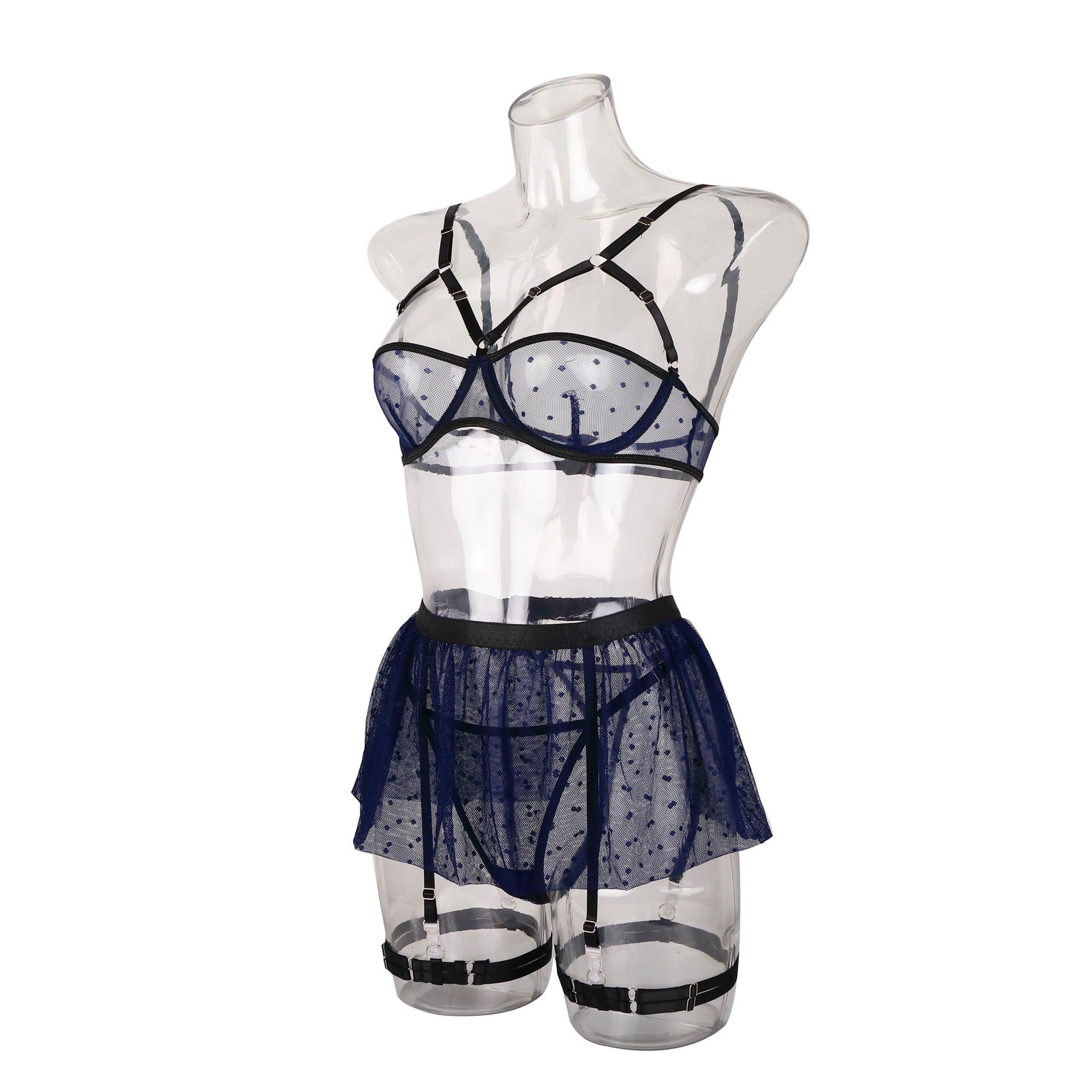 Ladies Half Cup Polka Dot Mesh 4PCS Lingerie Set SKLG4091