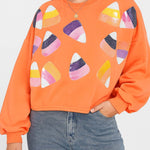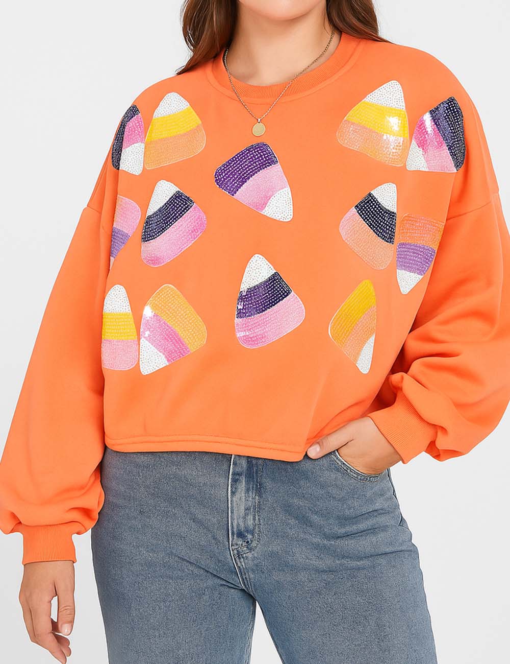 Ladies Halloween Sequin Round Neck Long Sleeves Sweatshirt