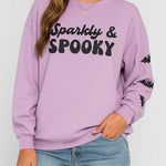 Ladies Halloween Sparkly & Spooky Bat Sleeves Print Sweatshirt
