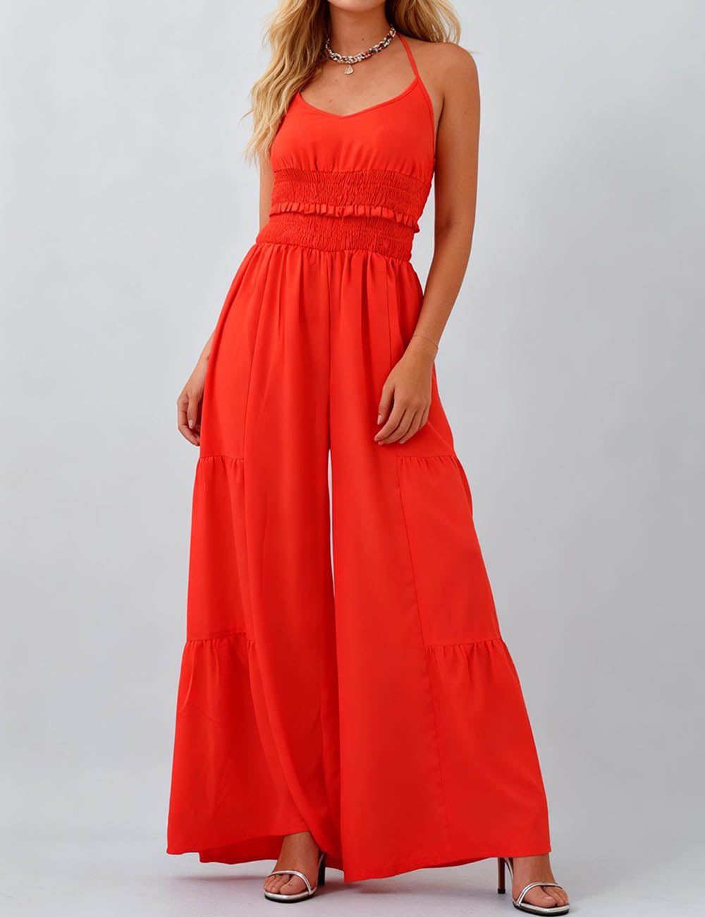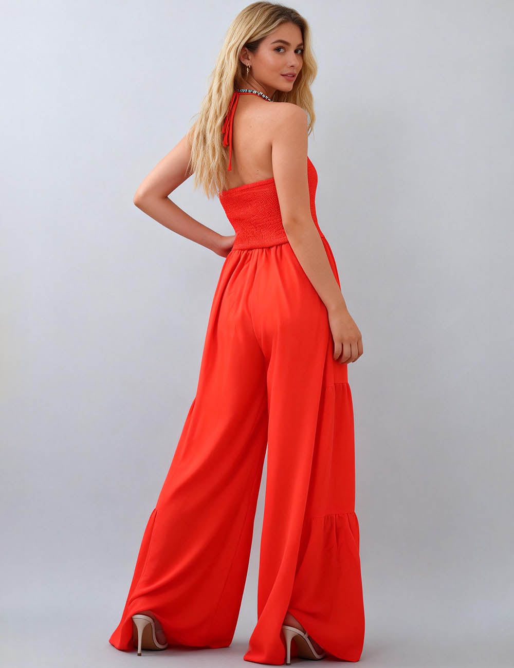 Ladies Halter Overall Elastic Waist Wide Leg Jumpsuit SKJ5KC901