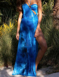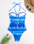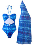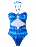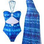 Ladies Halter Tye-Dye One Piece Swimwear with Skirt