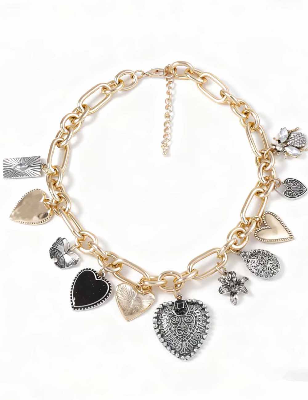 Ladies Heart Butterfly Bee Pendant Link Chain Necklace