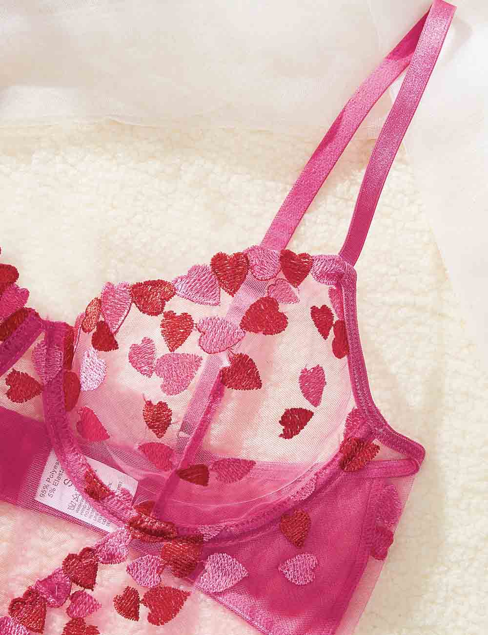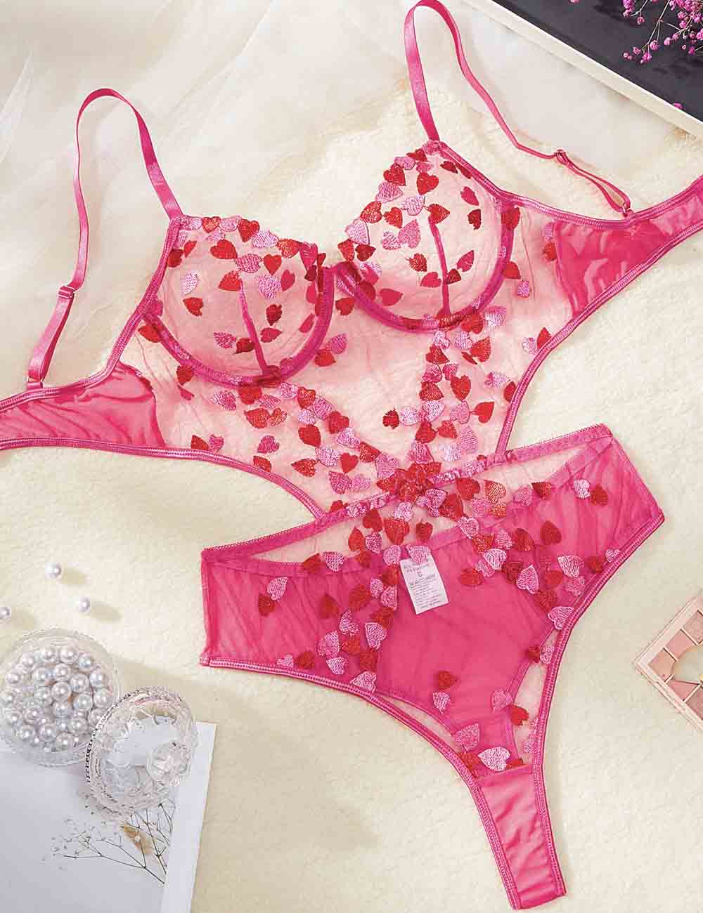 Ladies Heart Embroidery See Through Teddy 8HF4305