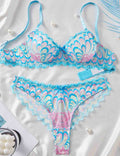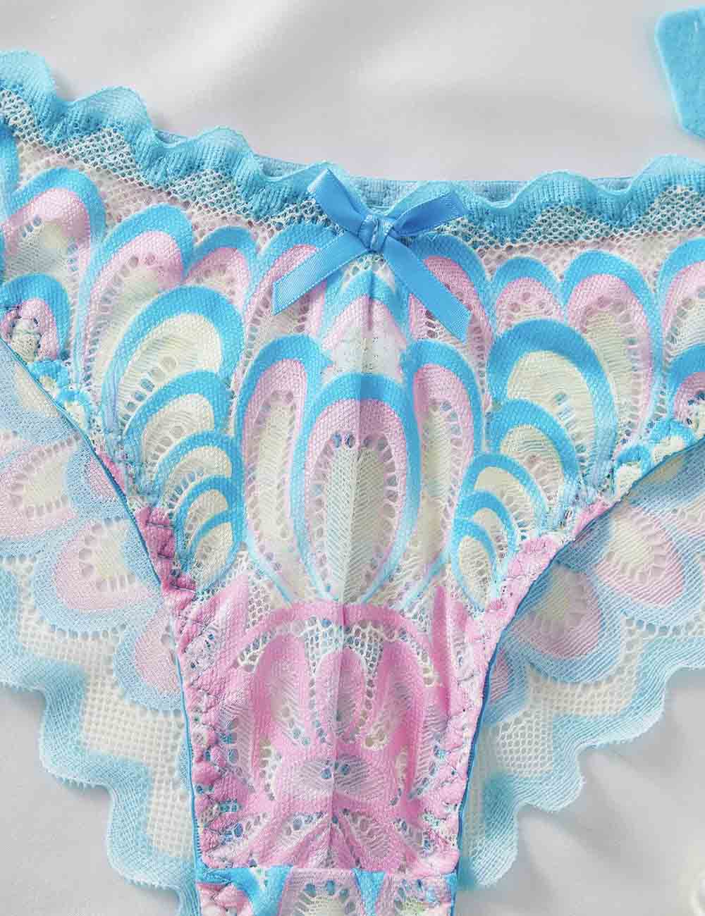 Ladies Heart Print Hollow Out 2PCS Lingerie Set 8XX0239