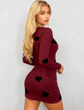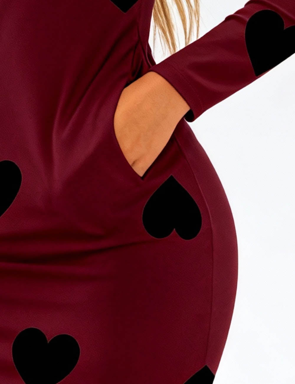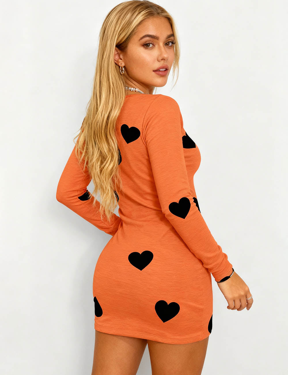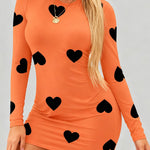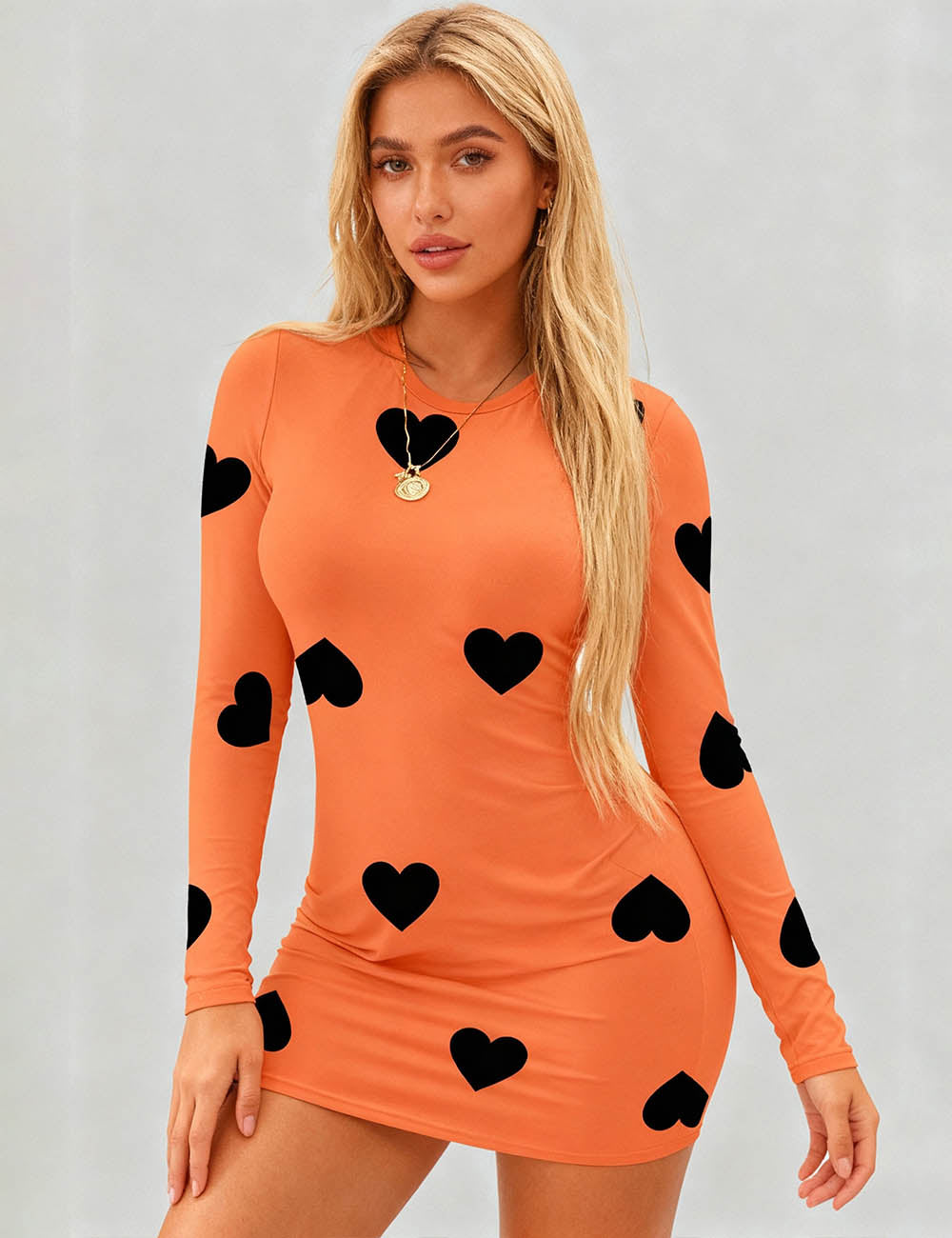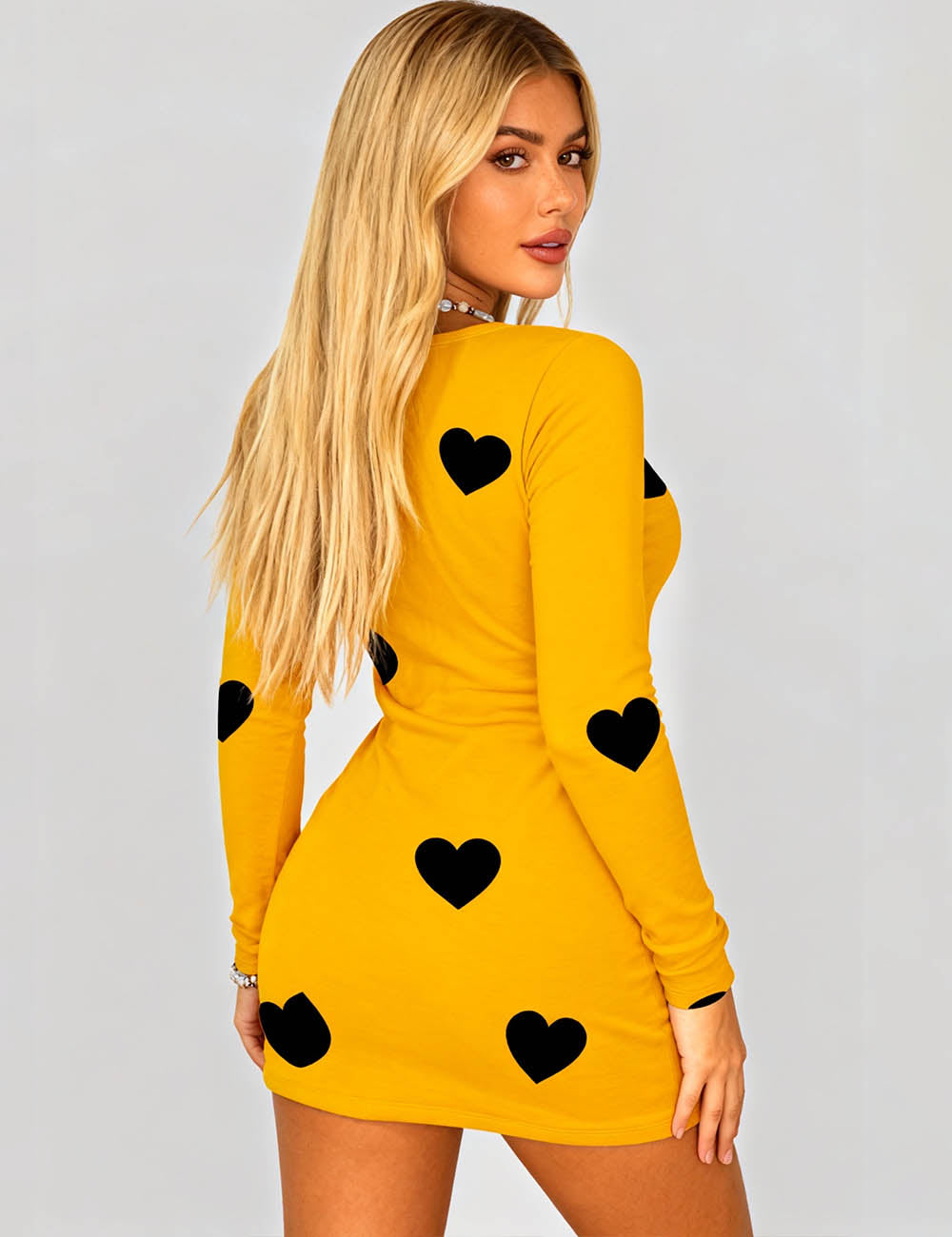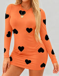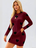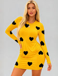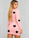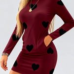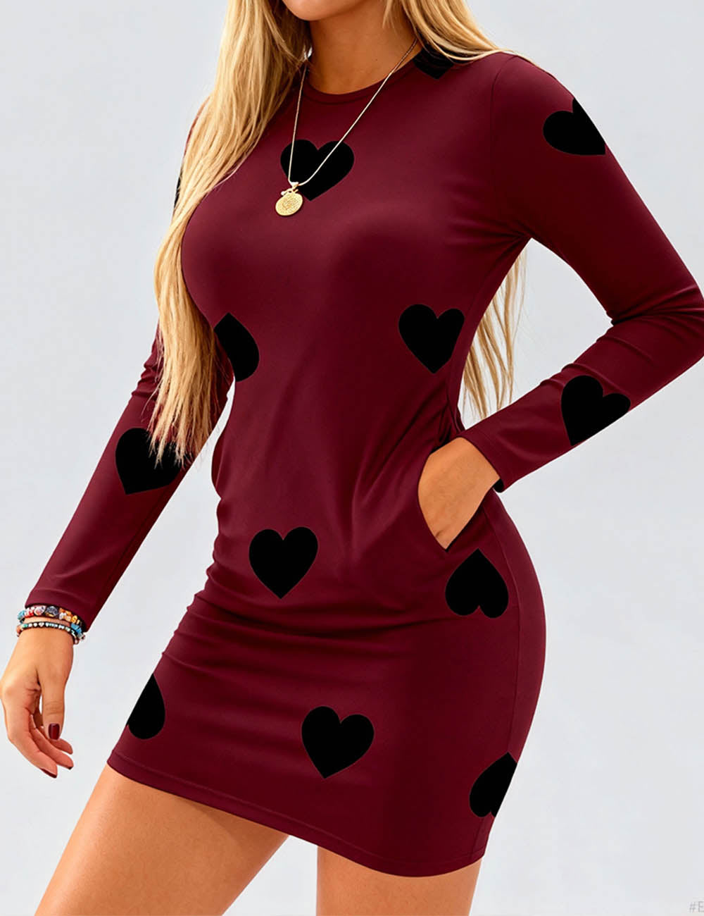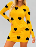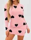 Ladies Heart Print Round Neck Bodycon Mini Dress