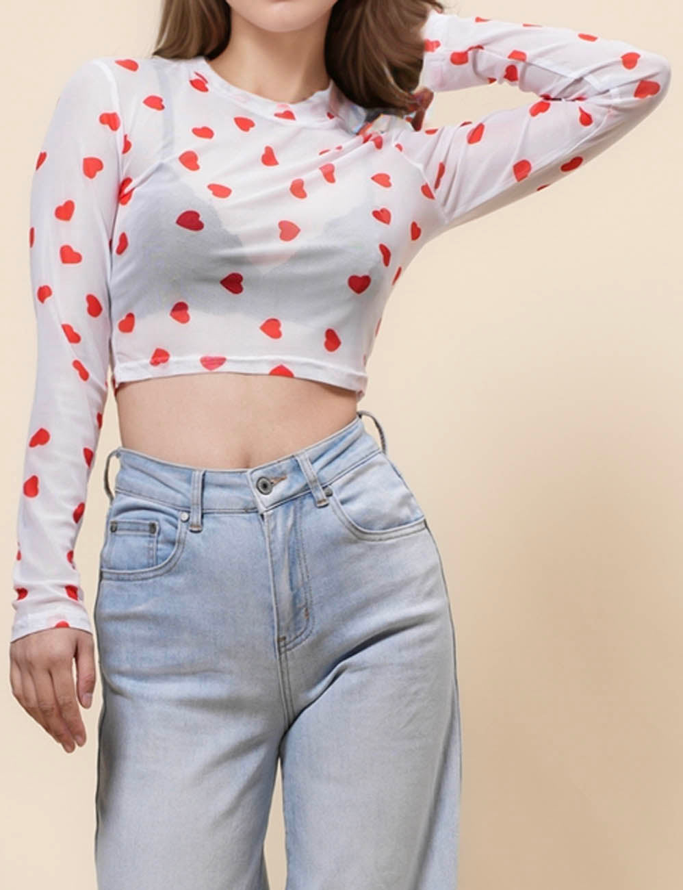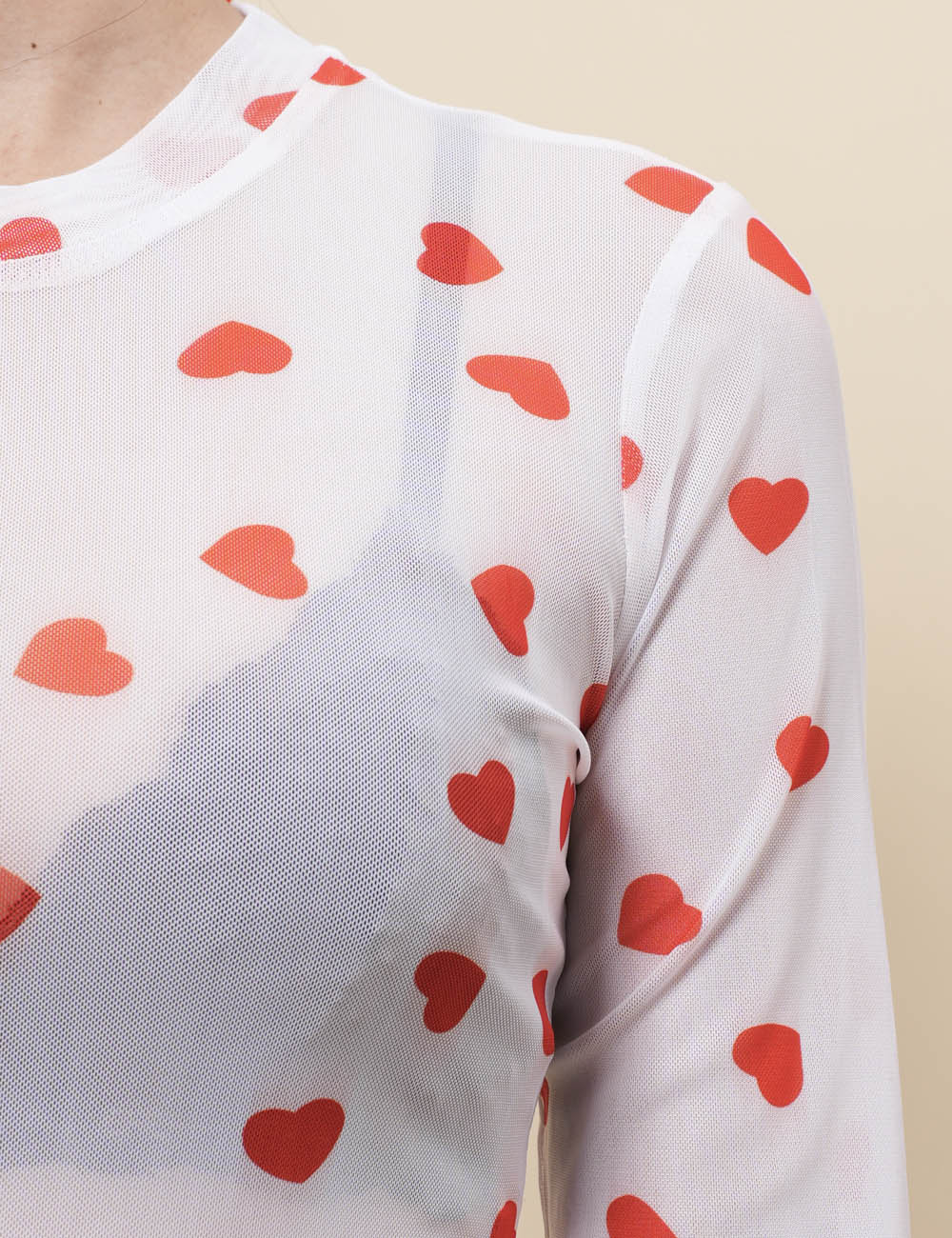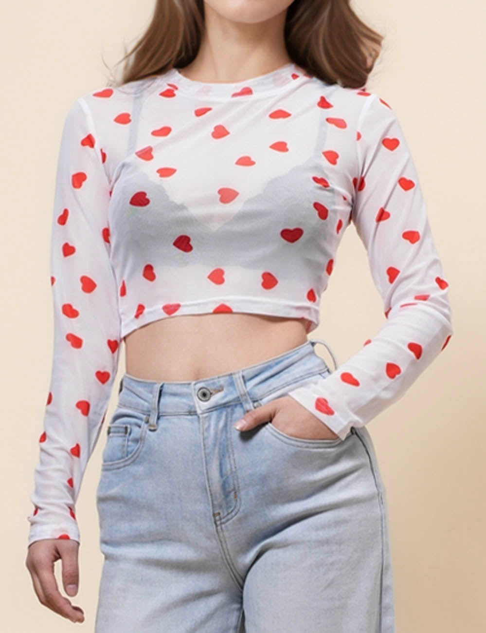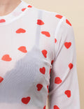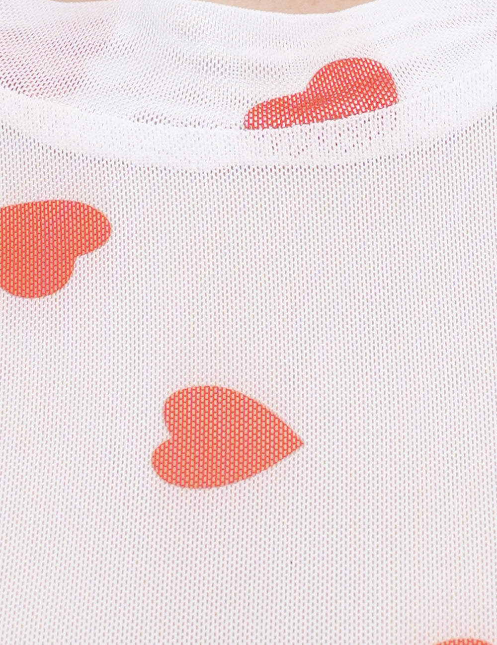 Ladies Heart Print See Sheer Mesh Layring Top SKT4995