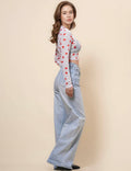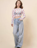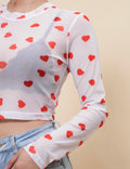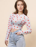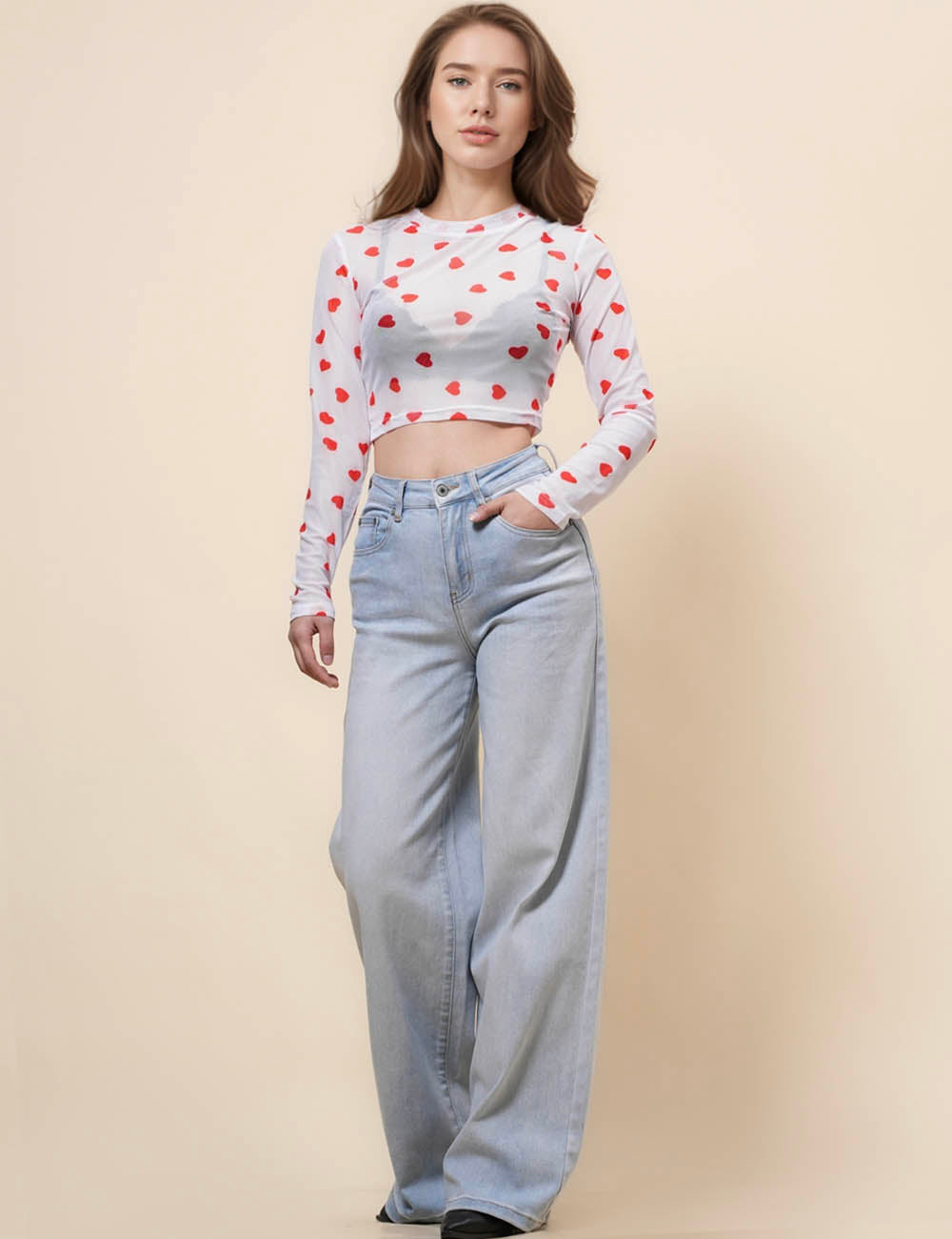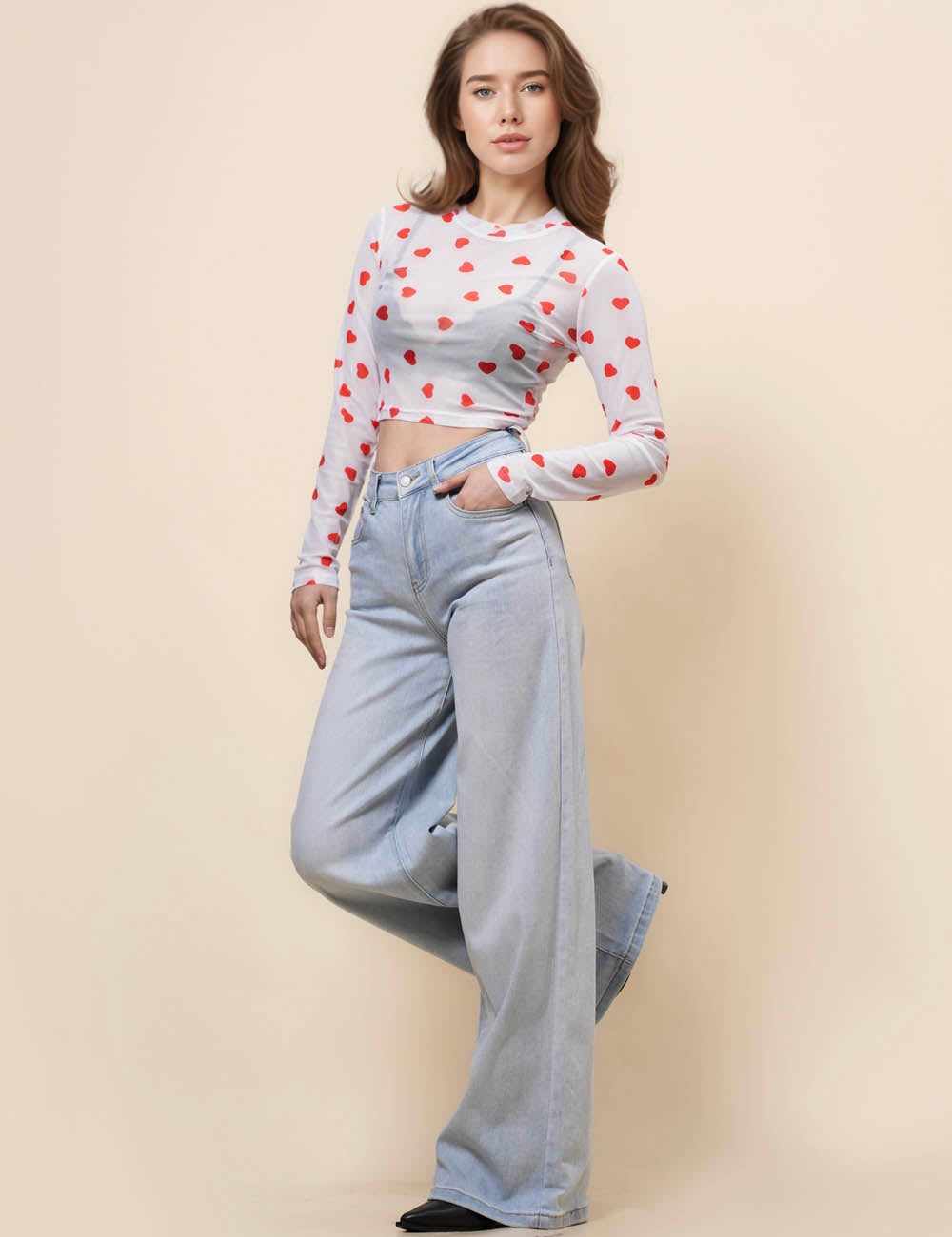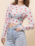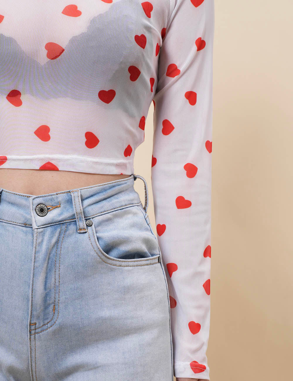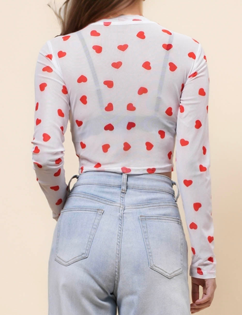 Ladies Heart Print See Sheer Mesh Layring Top SKT4995