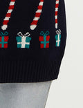 Ladies Holiday Christmas Tree & Snowfake Pattern Pullover Sweater