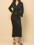 Ladies Holiday Party Night Out Sequin Midi Dress SKD4814