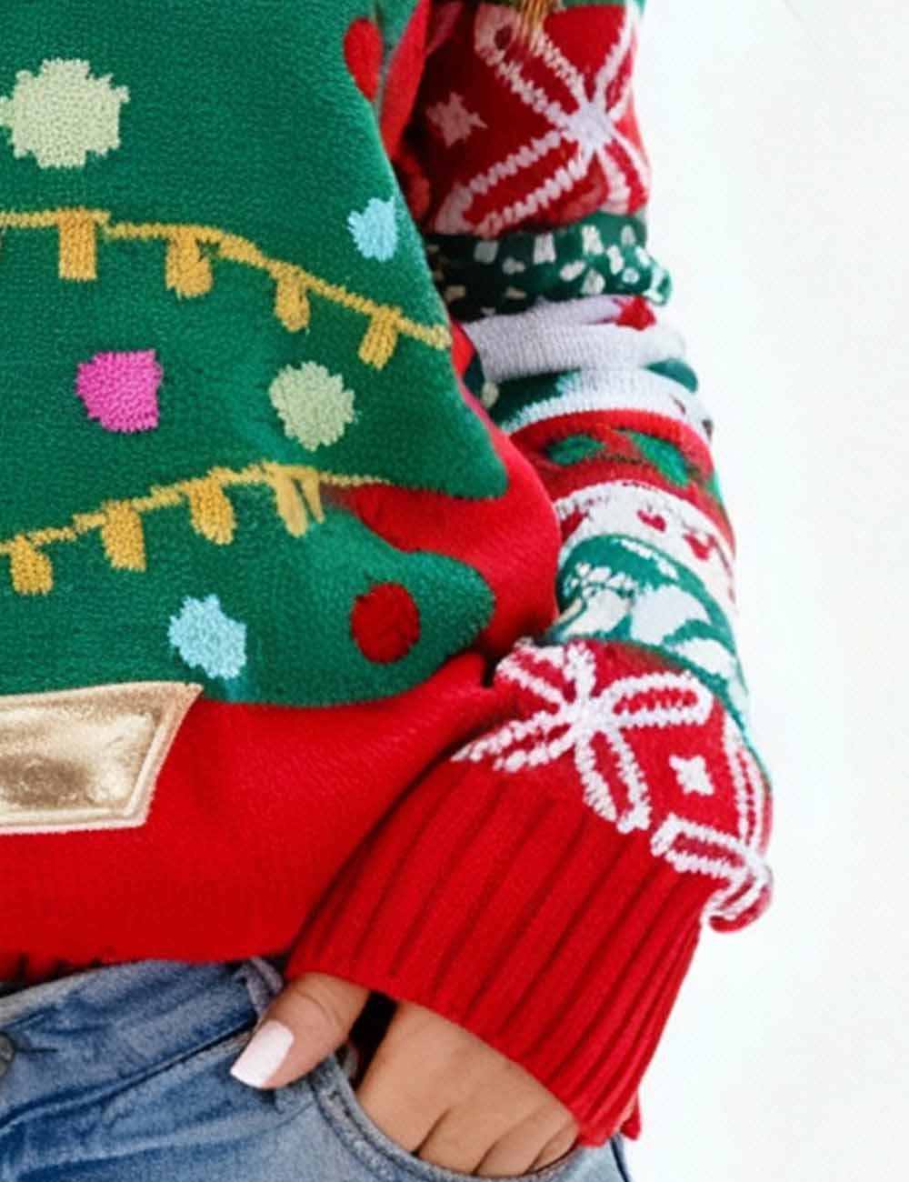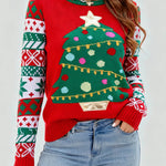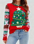 Ladies Holiday Round Neck Christmas Tree Knit Sweater