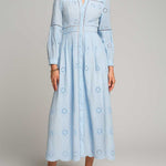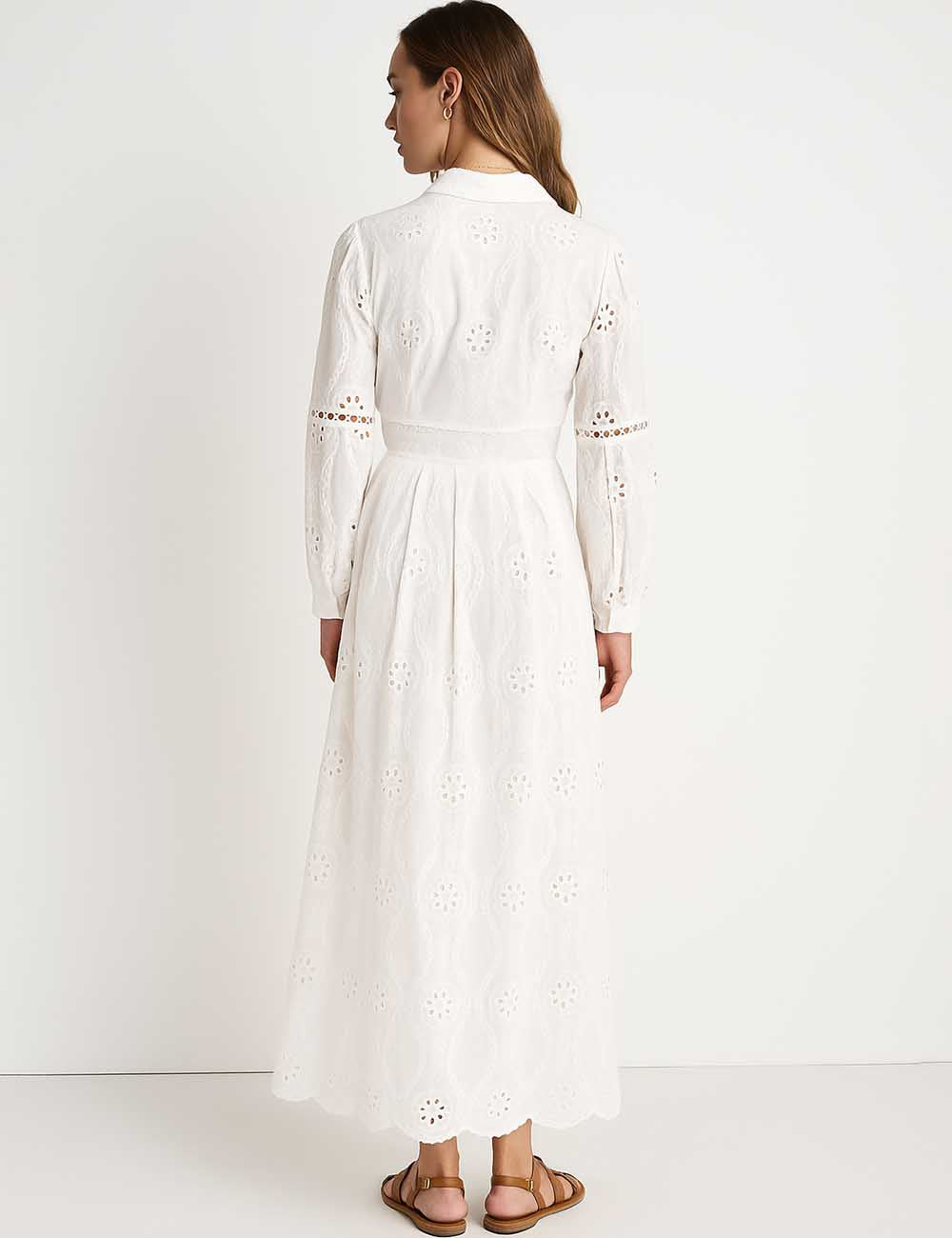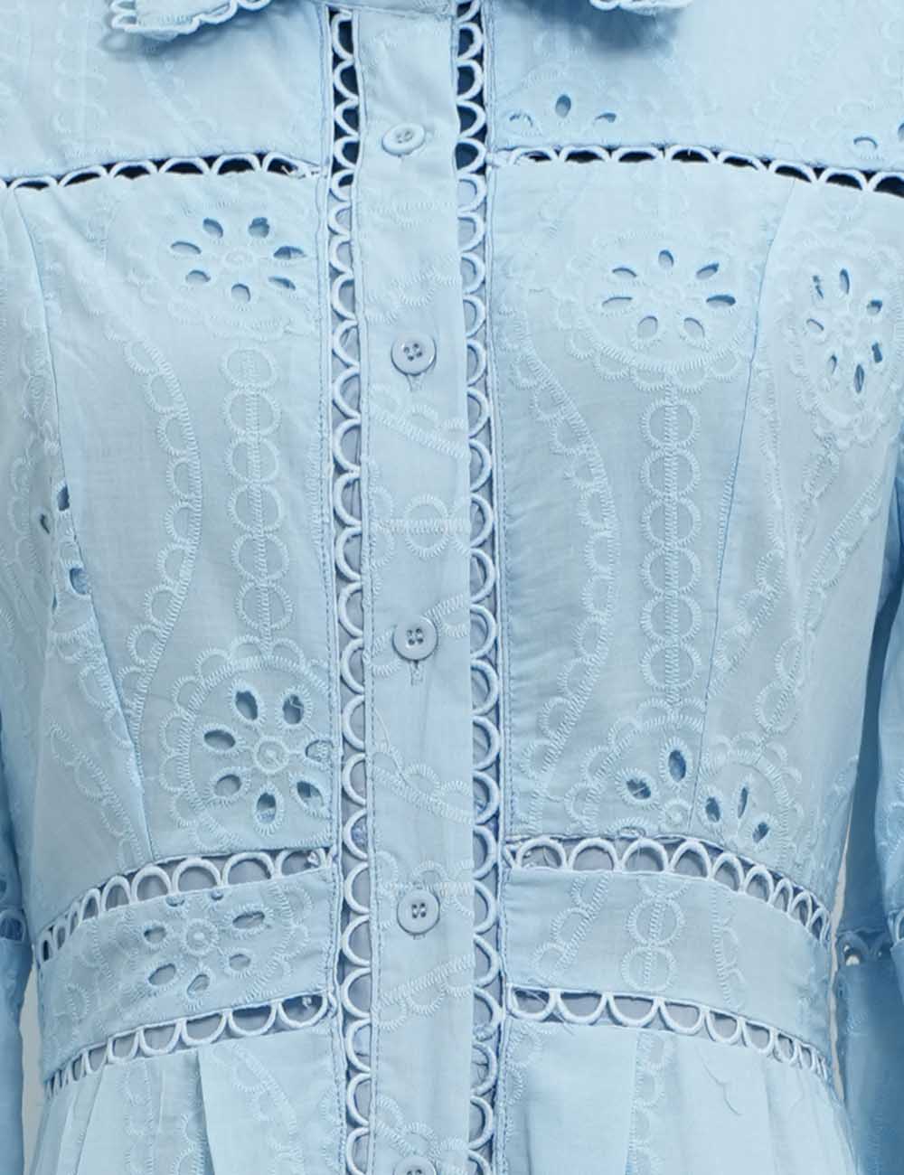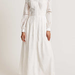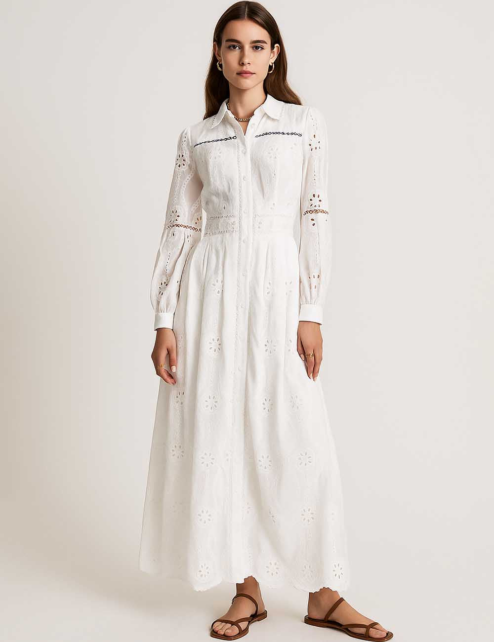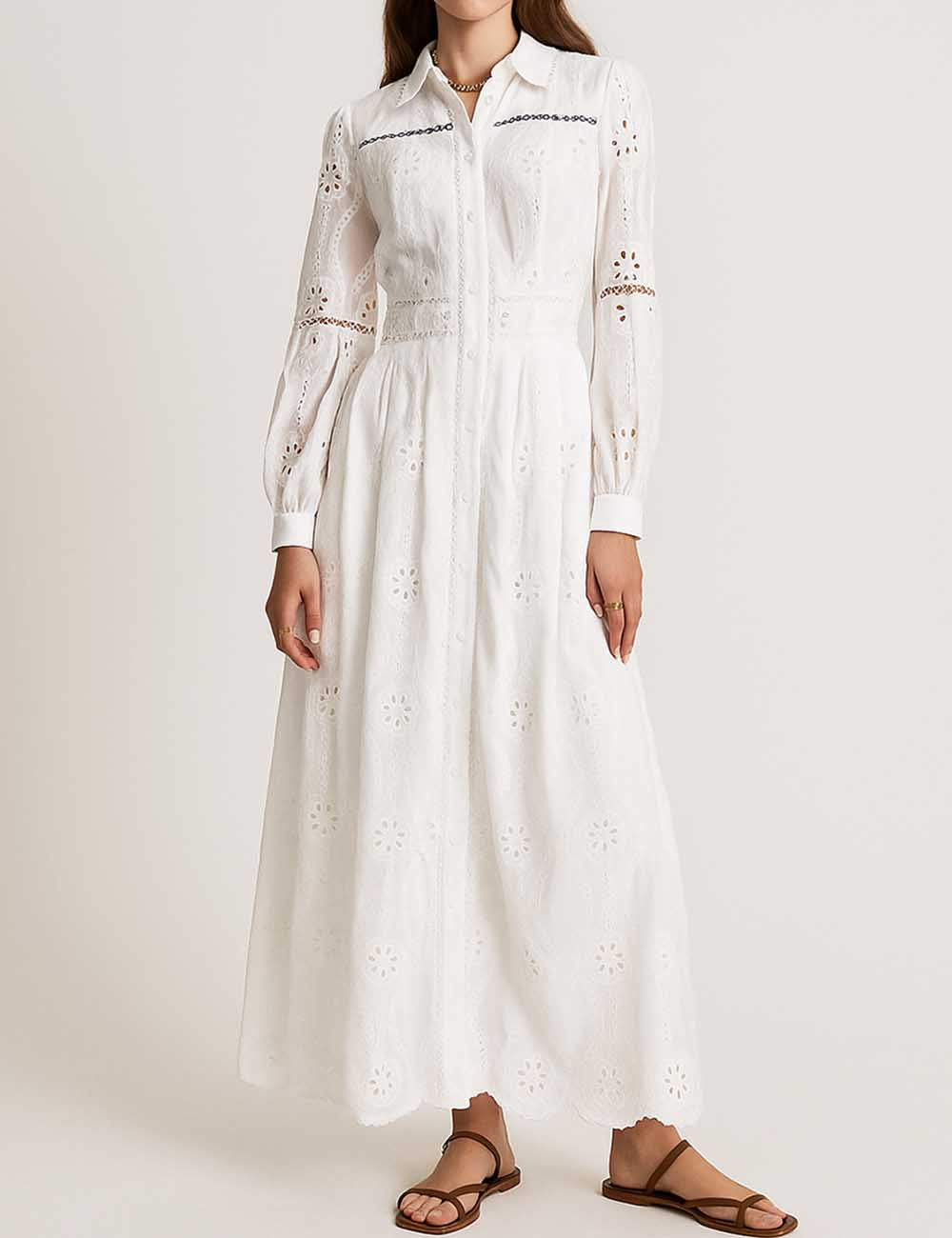 Ladies Hollow Out Button Down Long Sleeves Maxi Dress