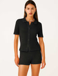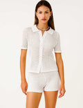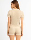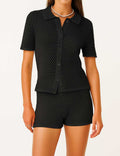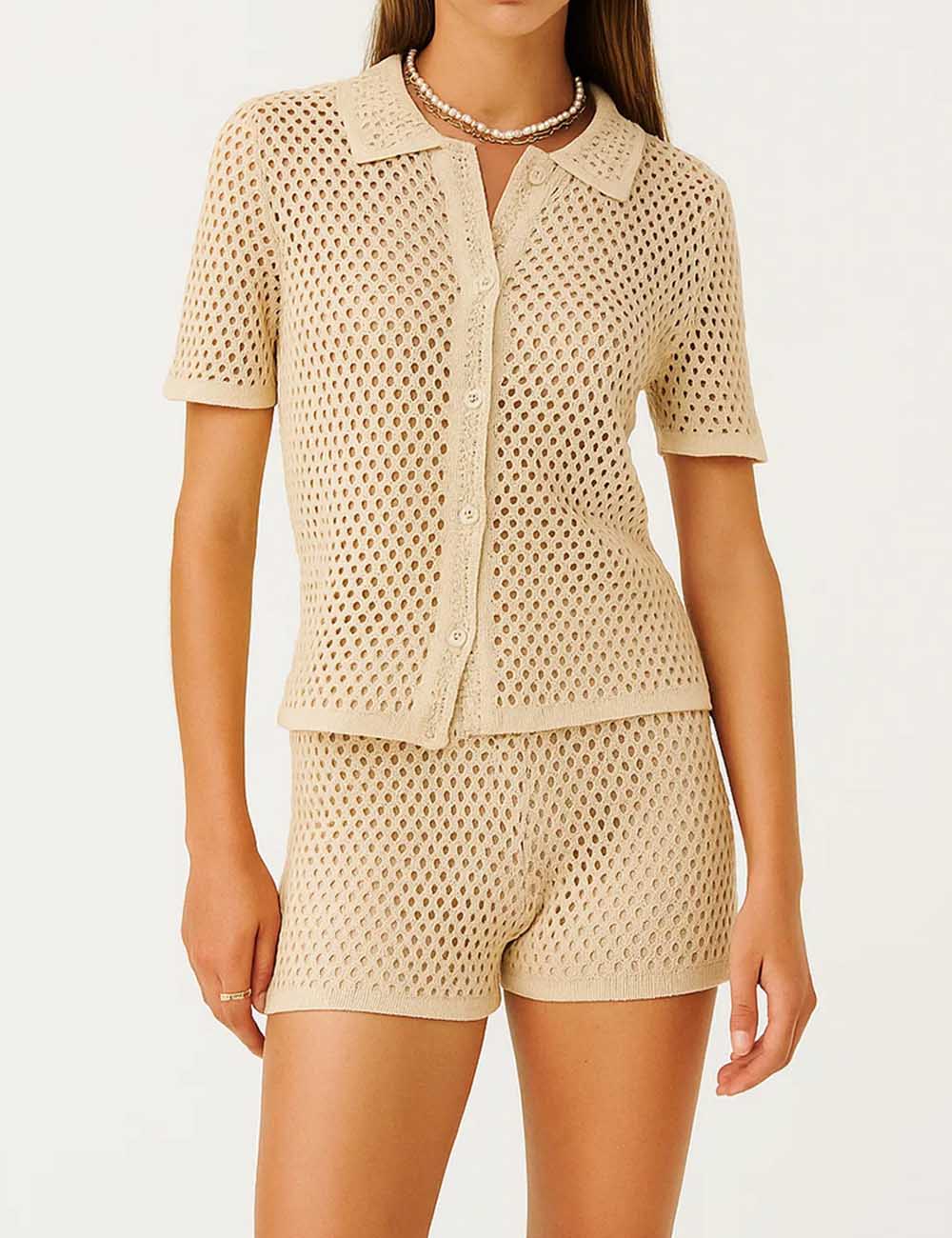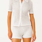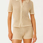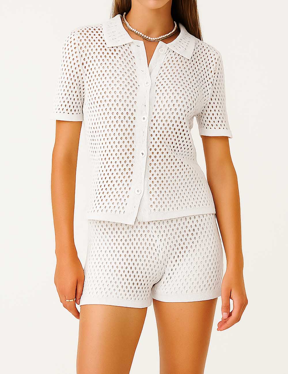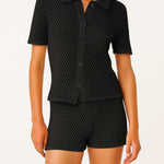 Ladies Hollow Out Knit Short Sleeves Shirt & Shorts Set