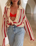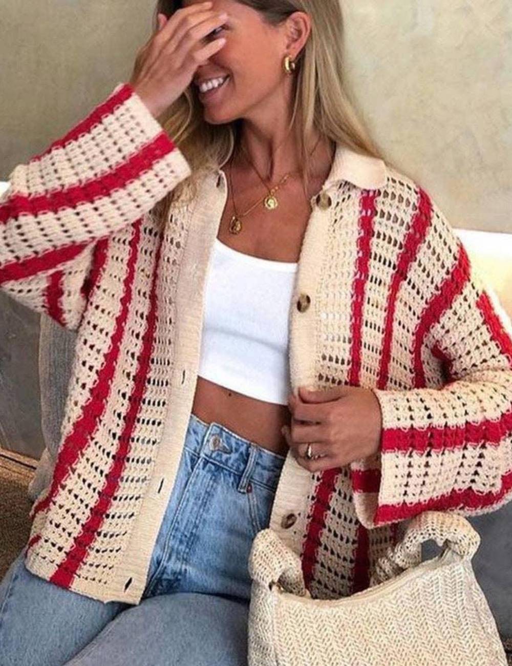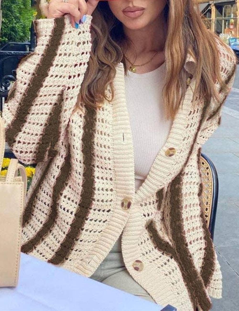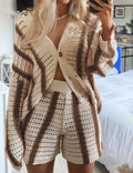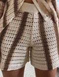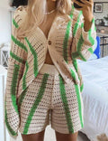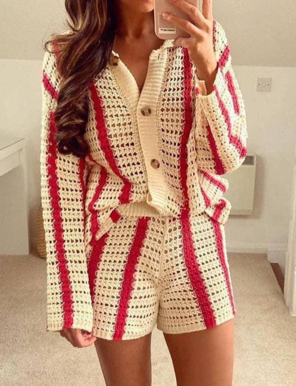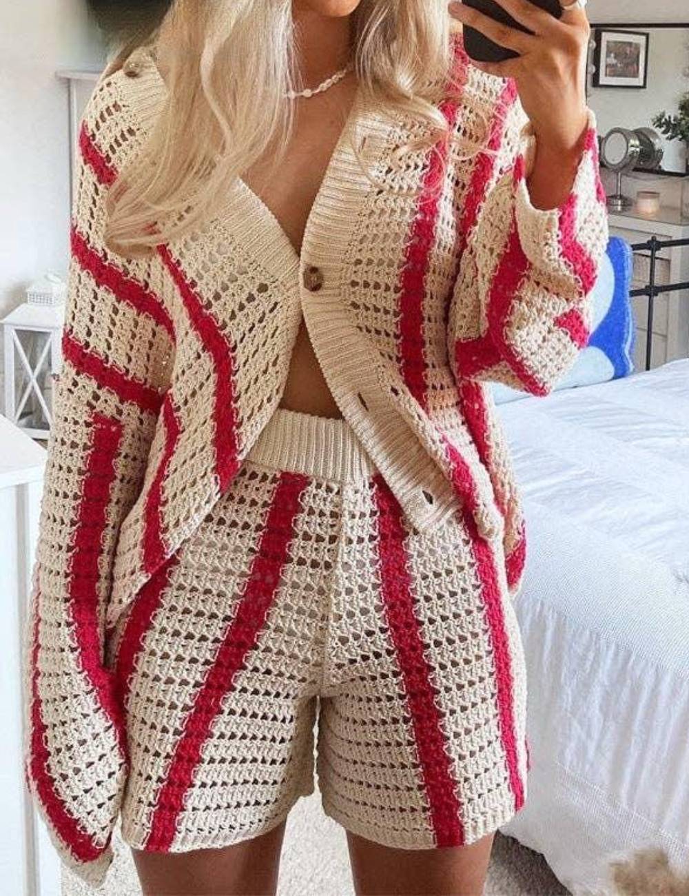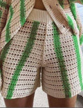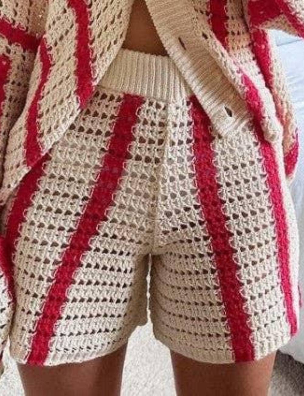 Ladies Hollow Out Stripe Top & Short 2PCS Knit Set SKST039