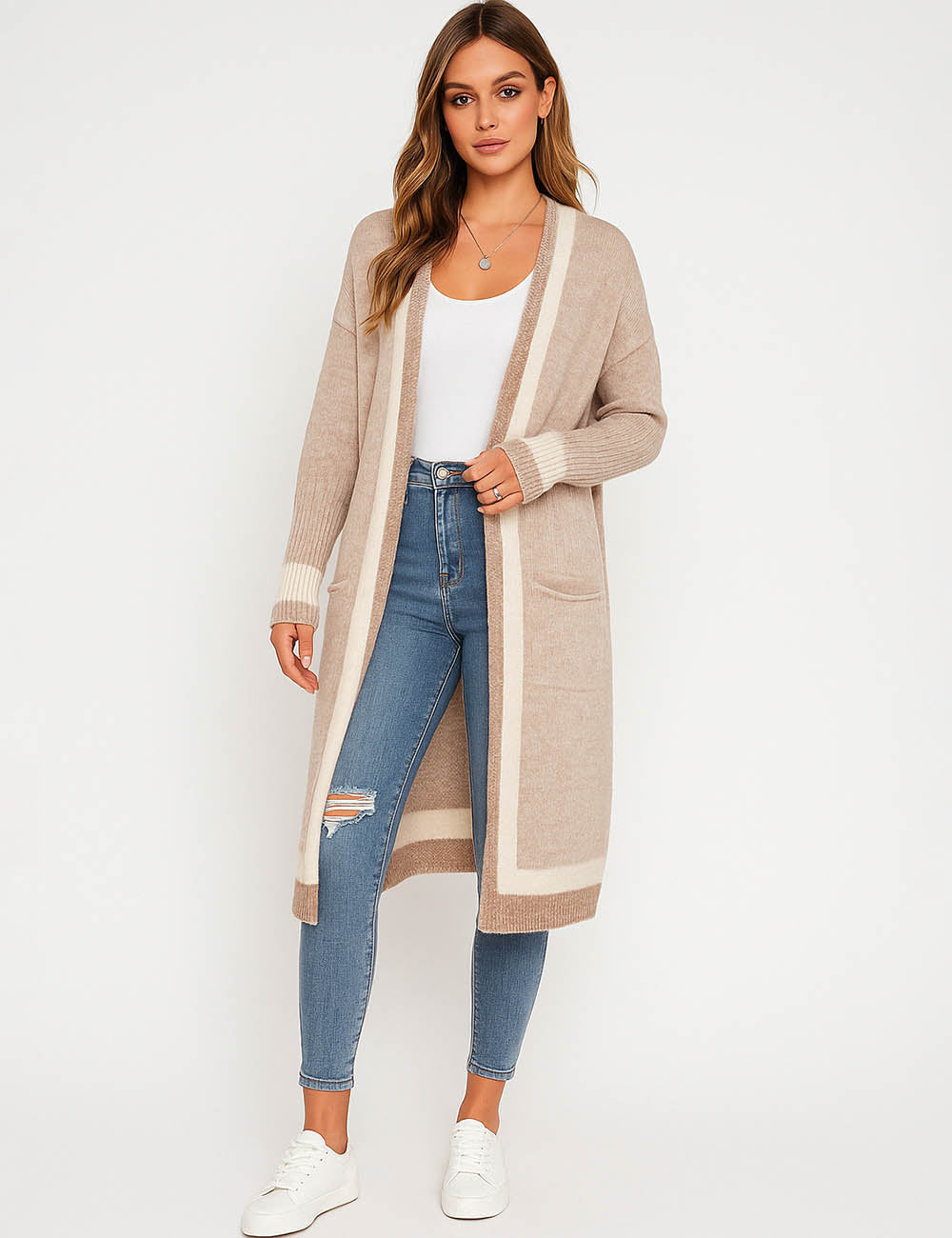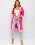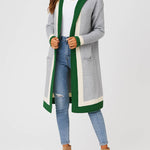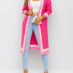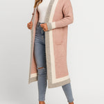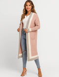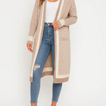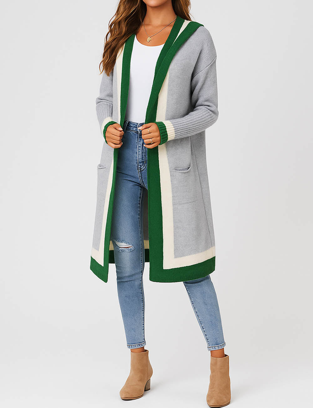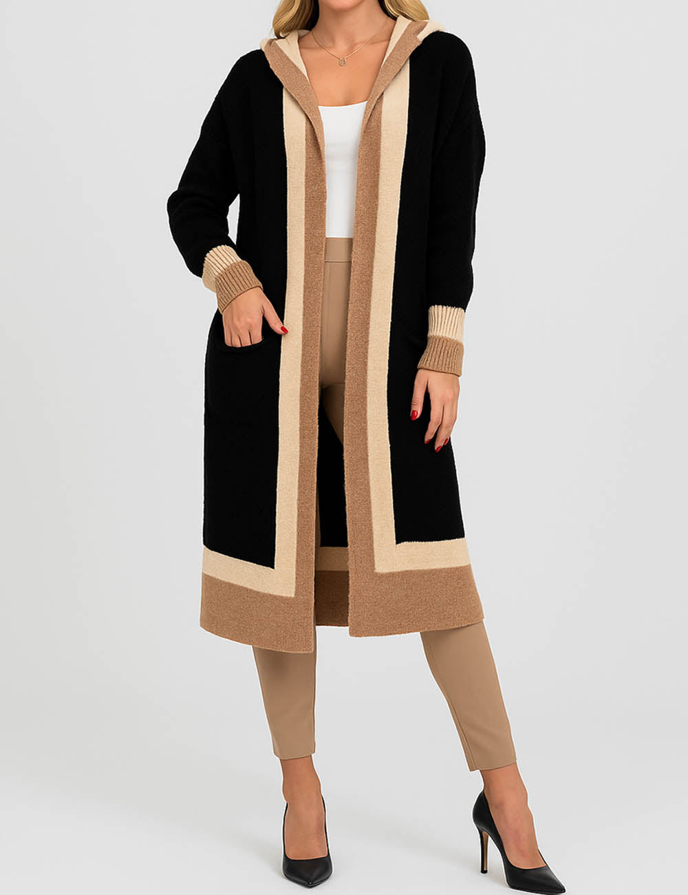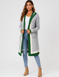 Ladies Hooded Collar Open Front Long Knit Cardigan