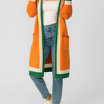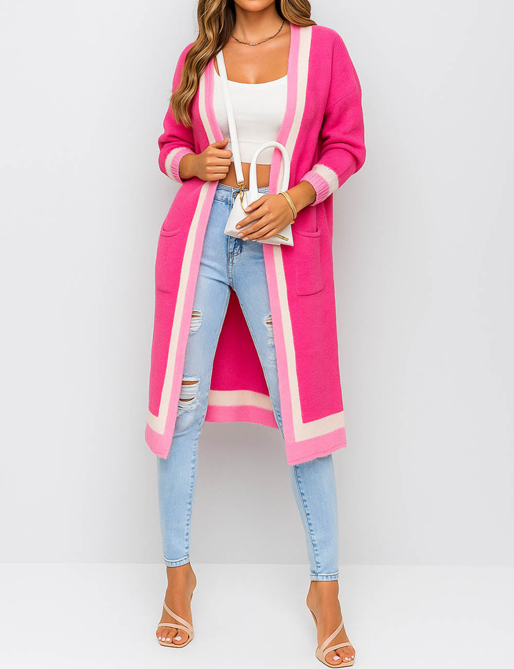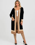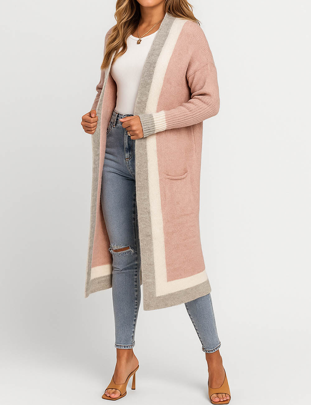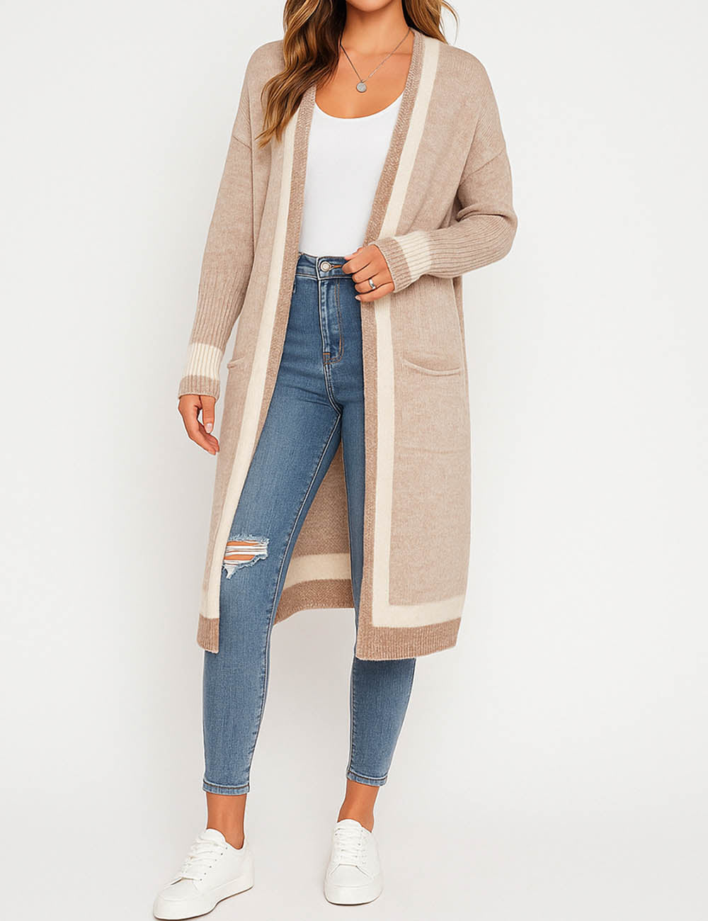 Ladies Hooded Collar Open Front Long Knit Cardigan