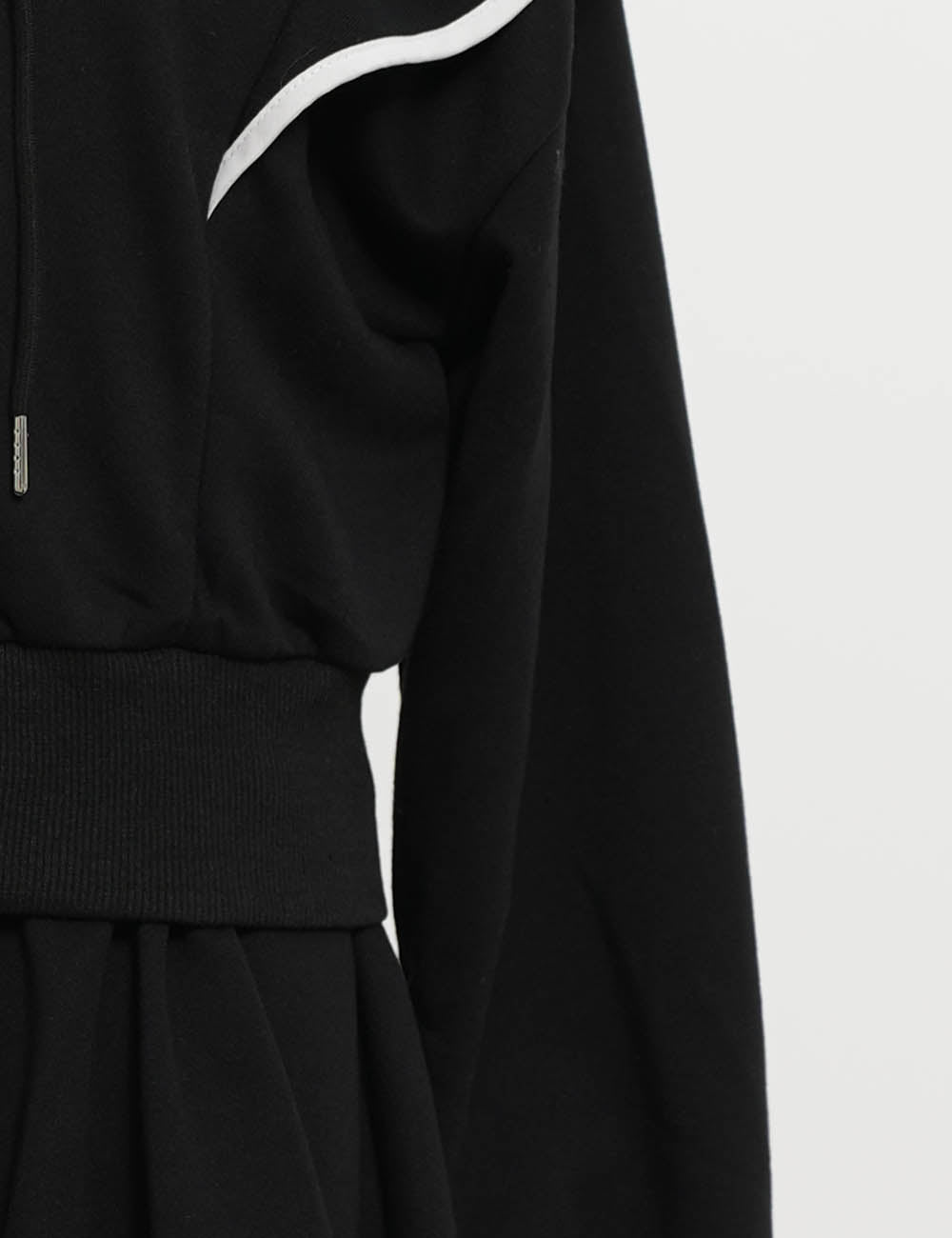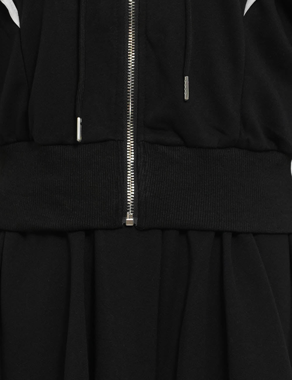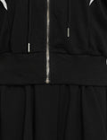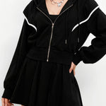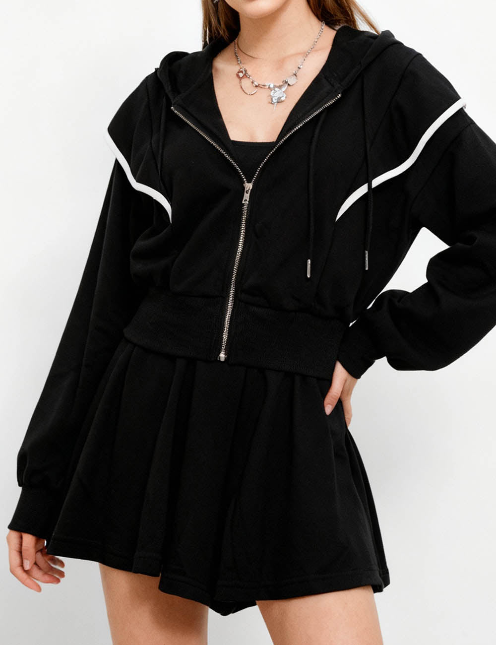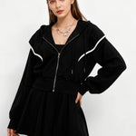 Ladies Hooded Collar Zip Up Sweatshirt Wide Leg Shorts Set