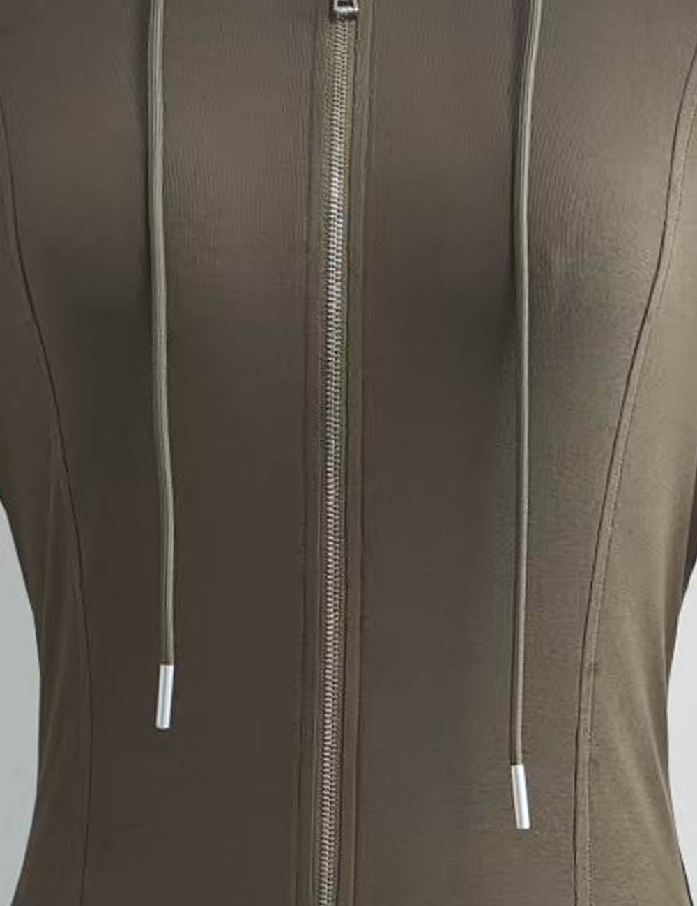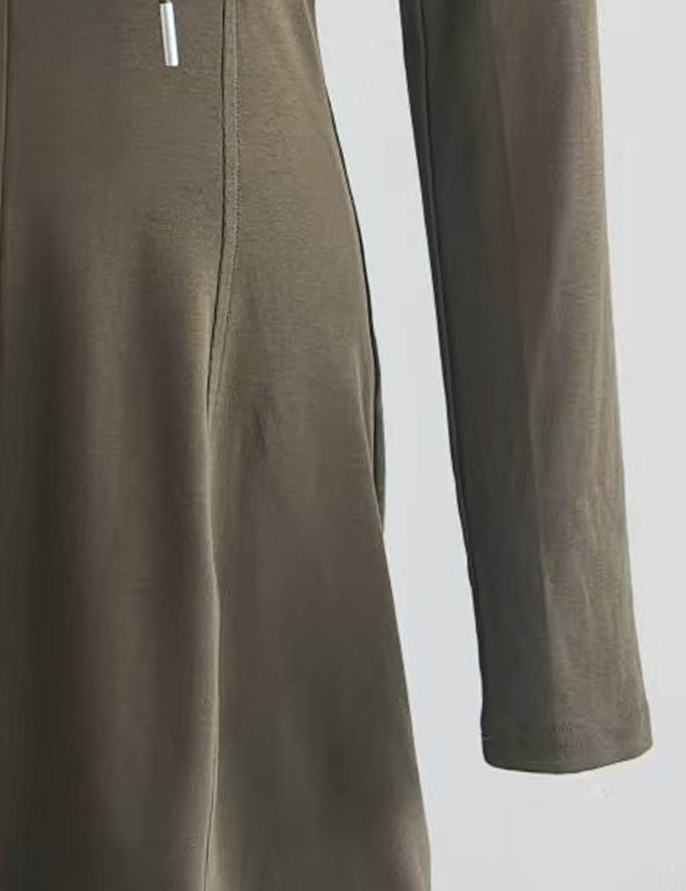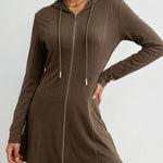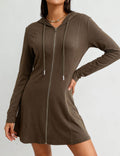 Ladies Hooded Collar Zipper Front Drawstring Mini Dress