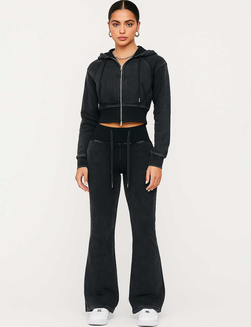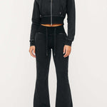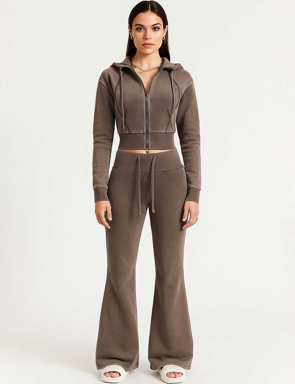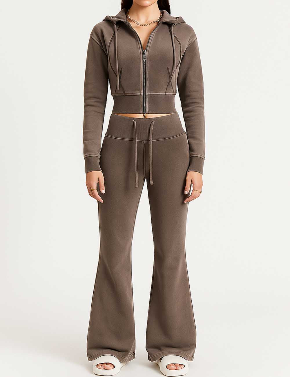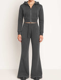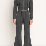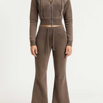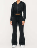 Ladies Hooded Zipper Closure Flared Leg Sweatshirt & Pants Set