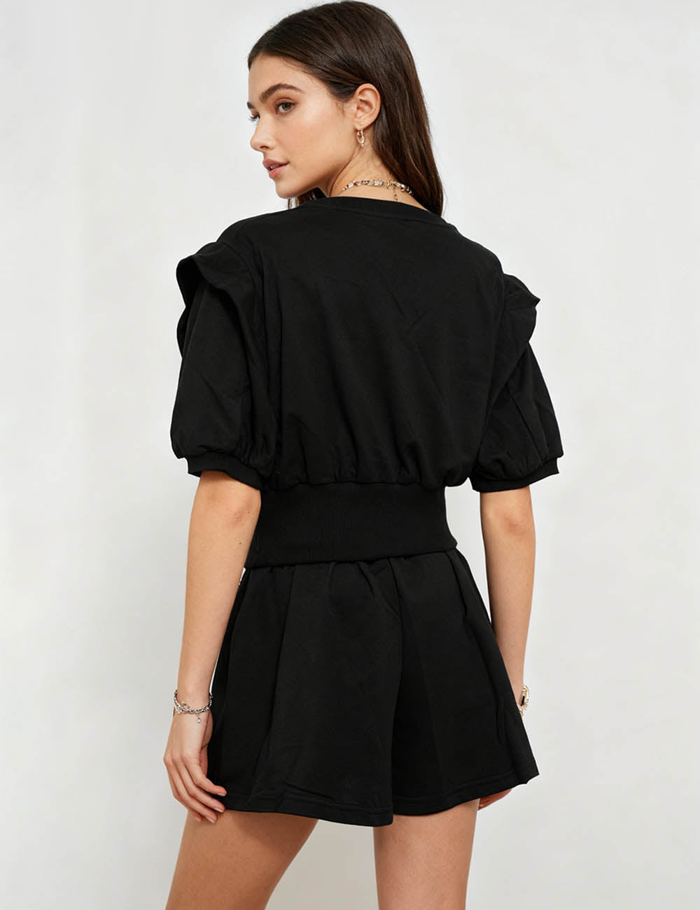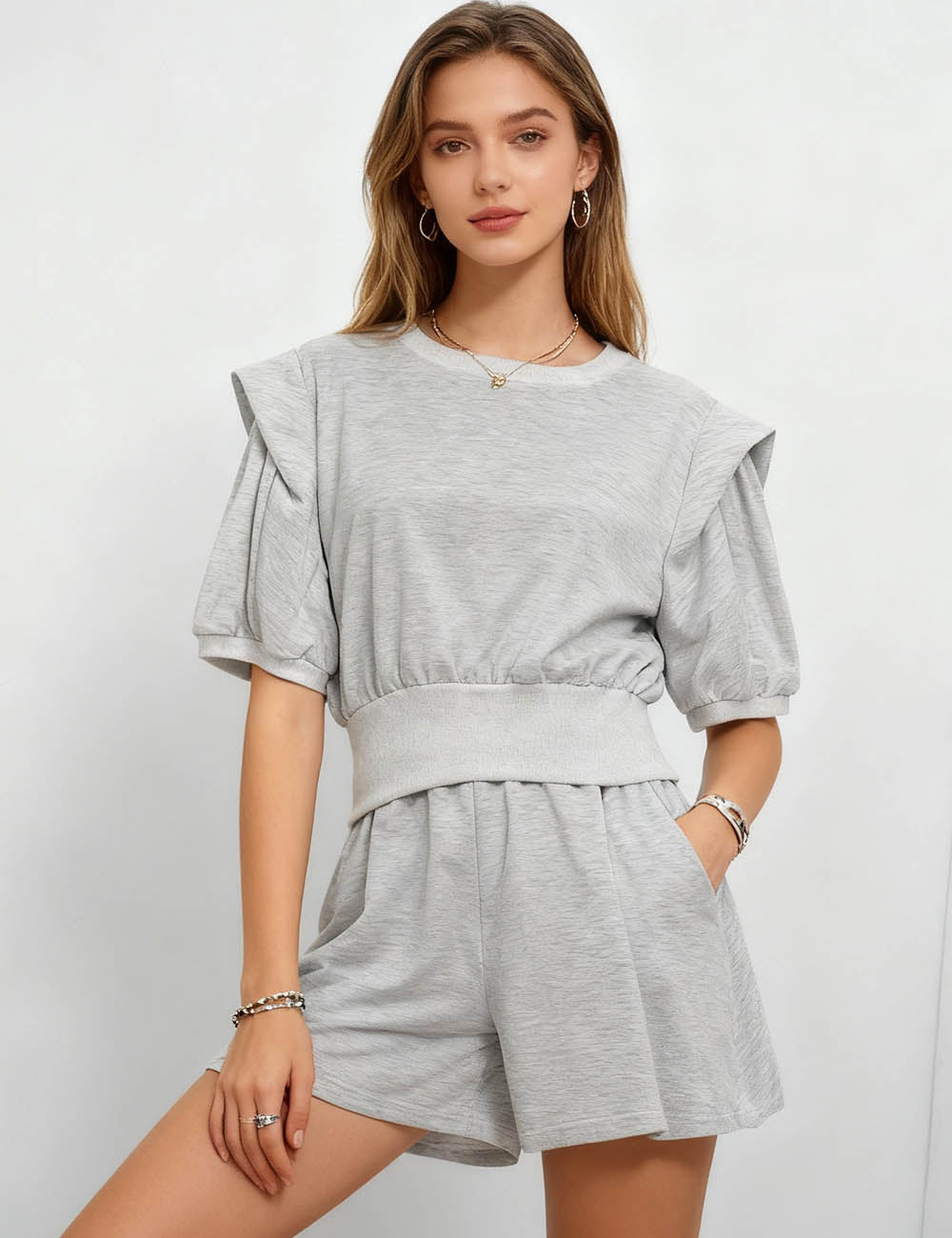Ladies Hoodie Feeling Top and Shorts 2PCS Set SKST401