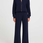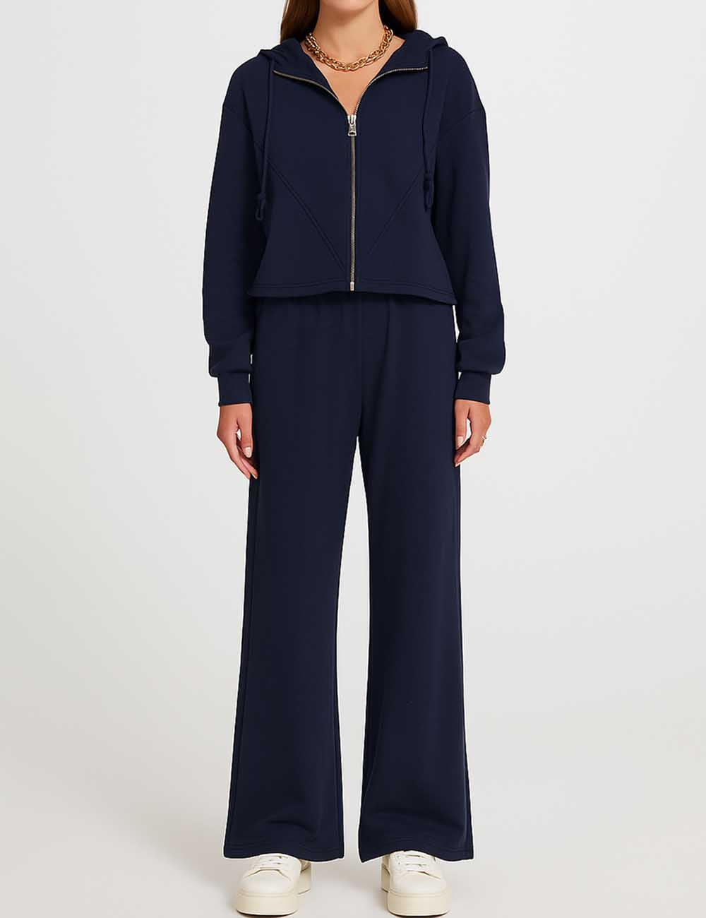 Ladies Hooded Zipper Front Wide Leg Sweatshirt & Pants Set