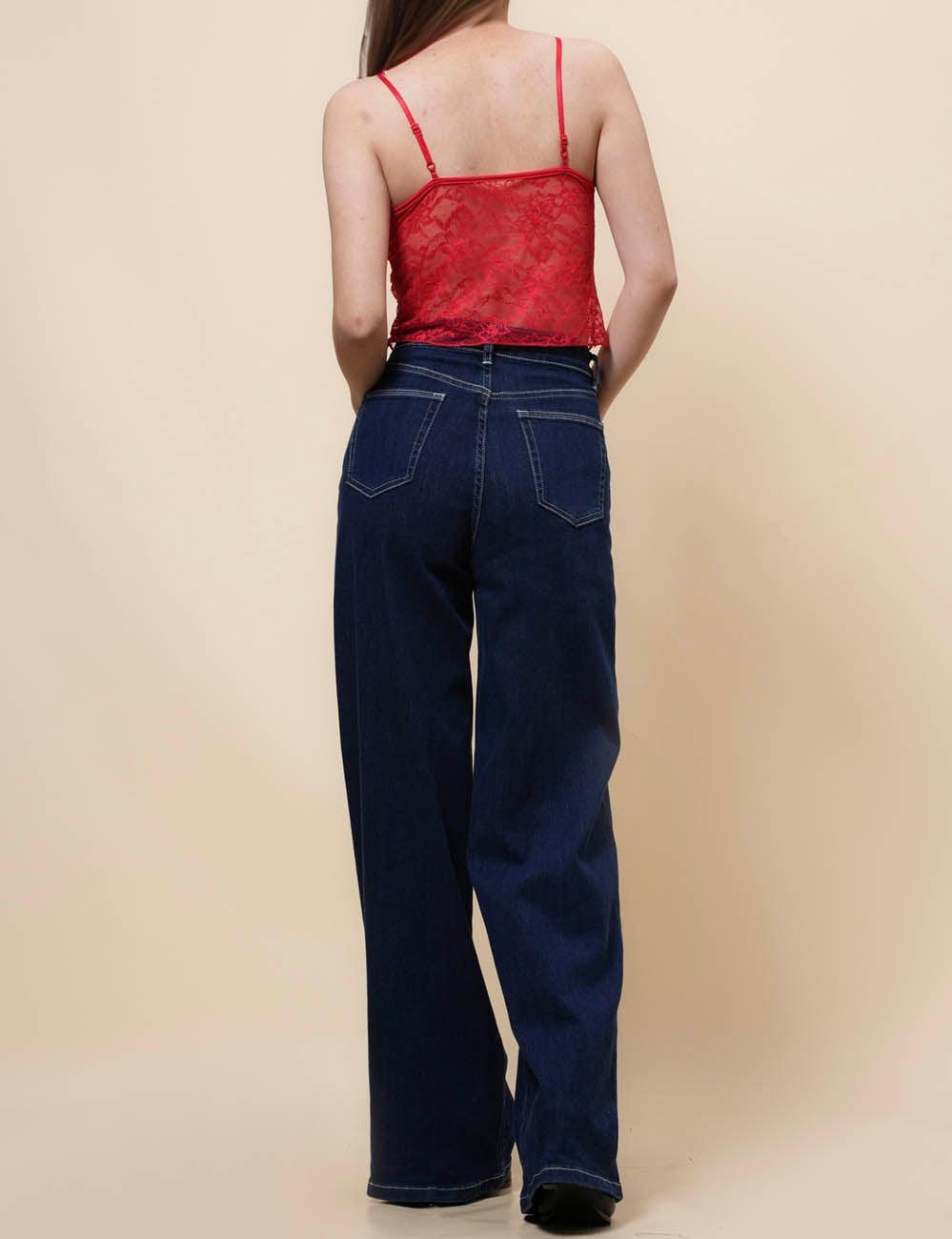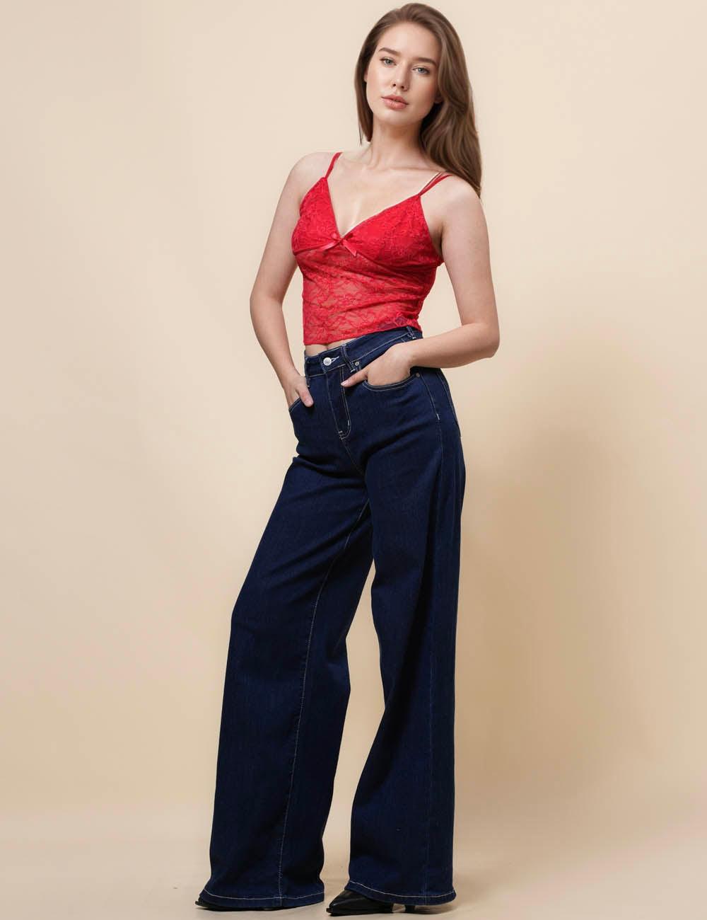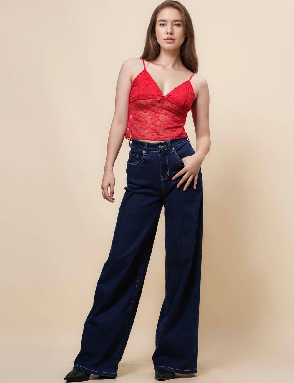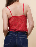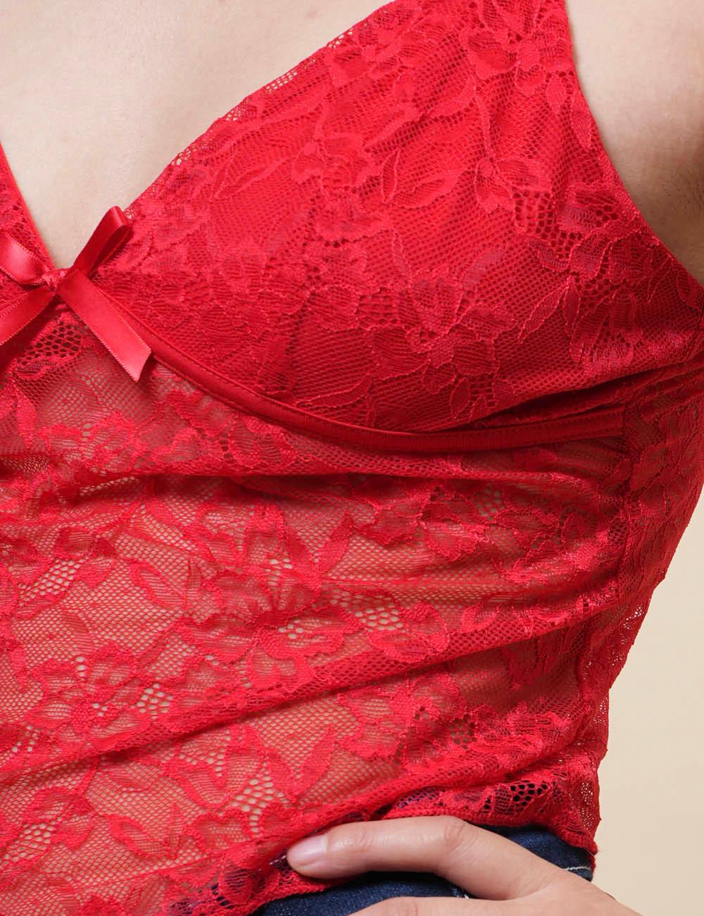 Ladies Hot Red Floral Lace See Sheer Camis SKT4987