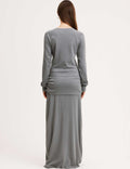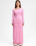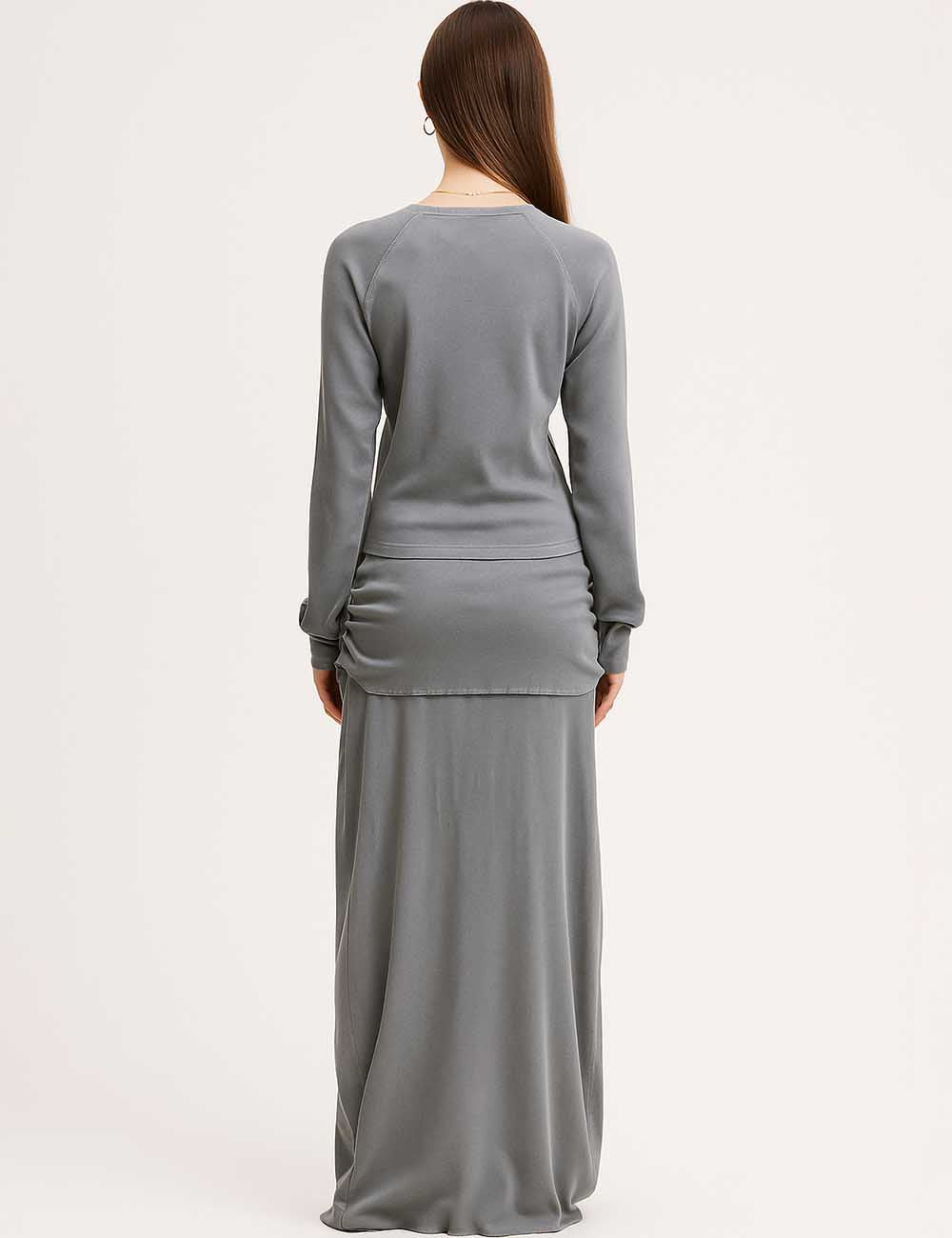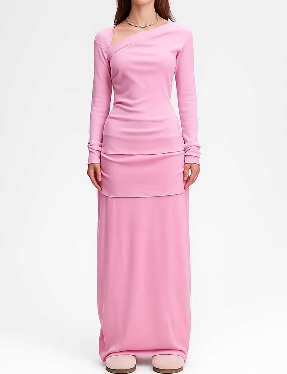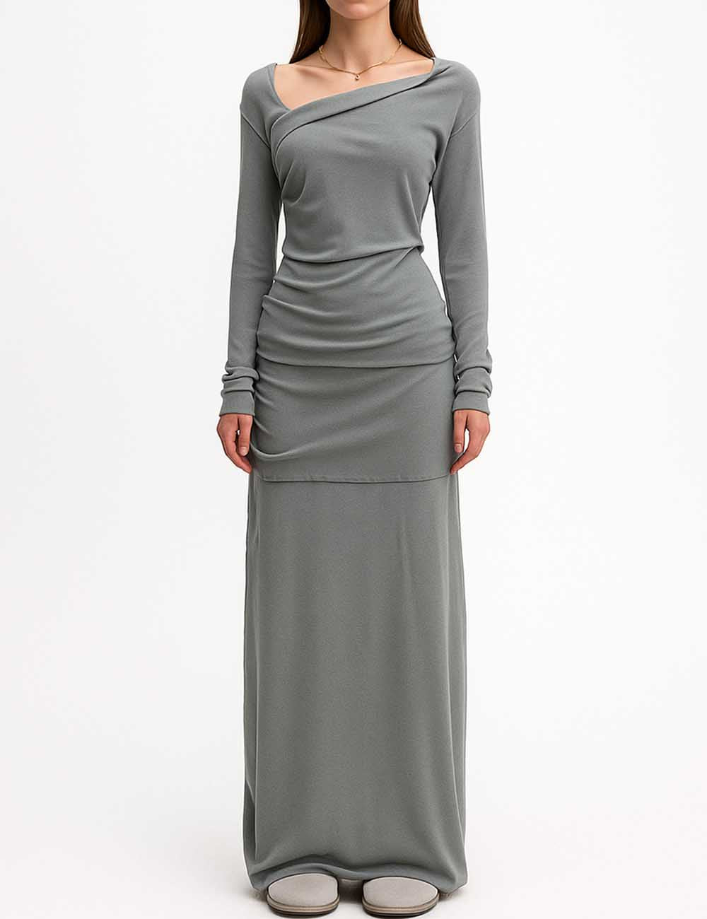 Ladies Irregular Neckline Ruched Top & Maxi Skirt 2PCS Set