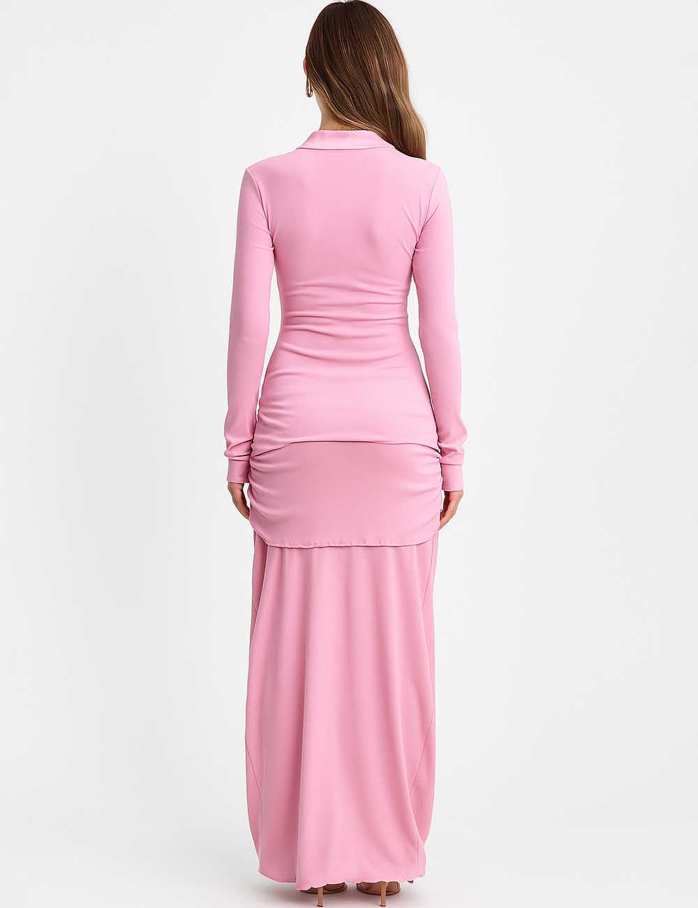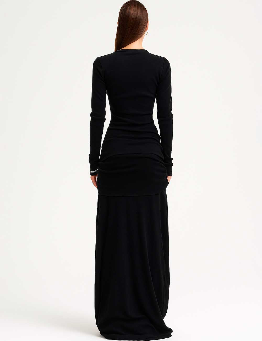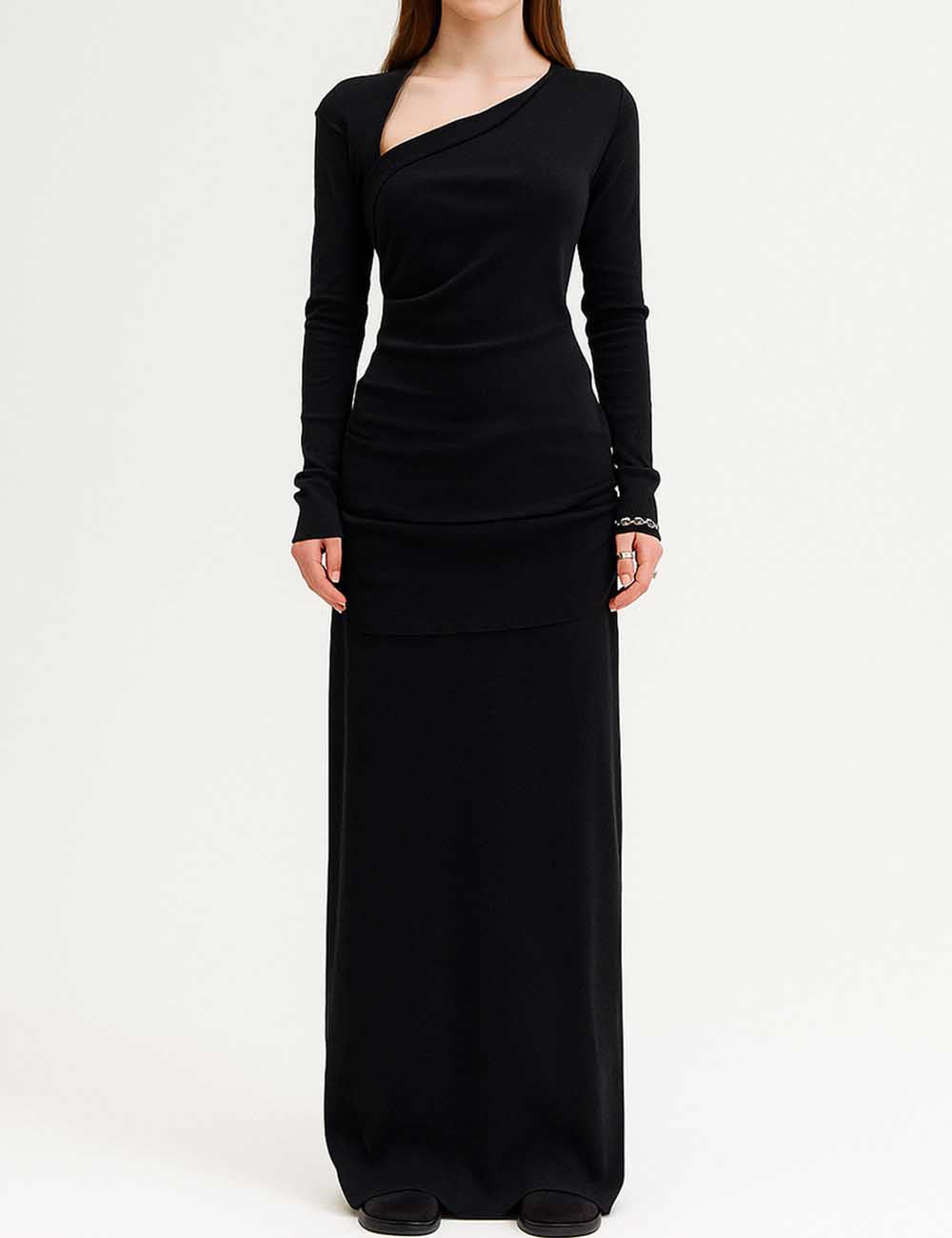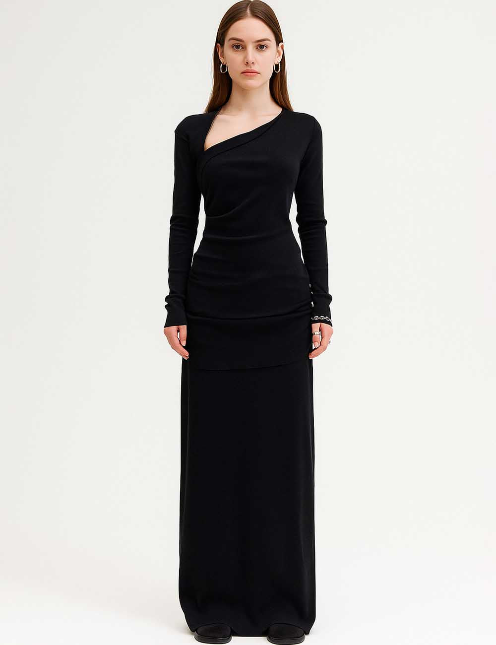 Ladies Irregular Neckline Ruched Top & Maxi Skirt 2PCS Set