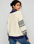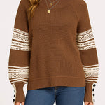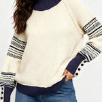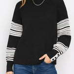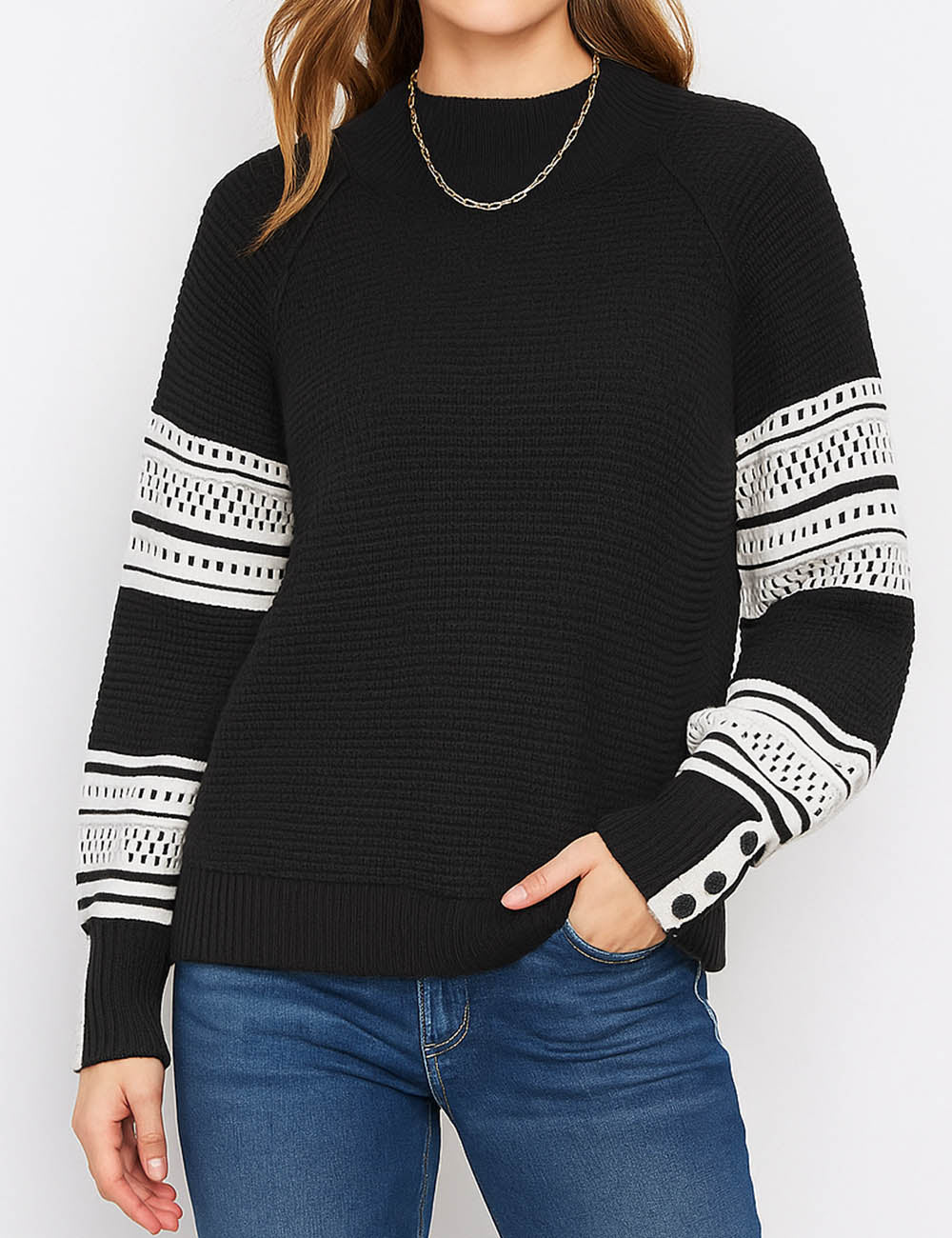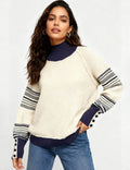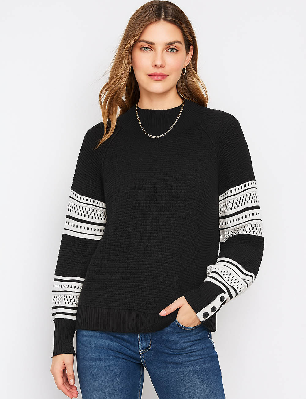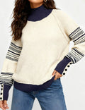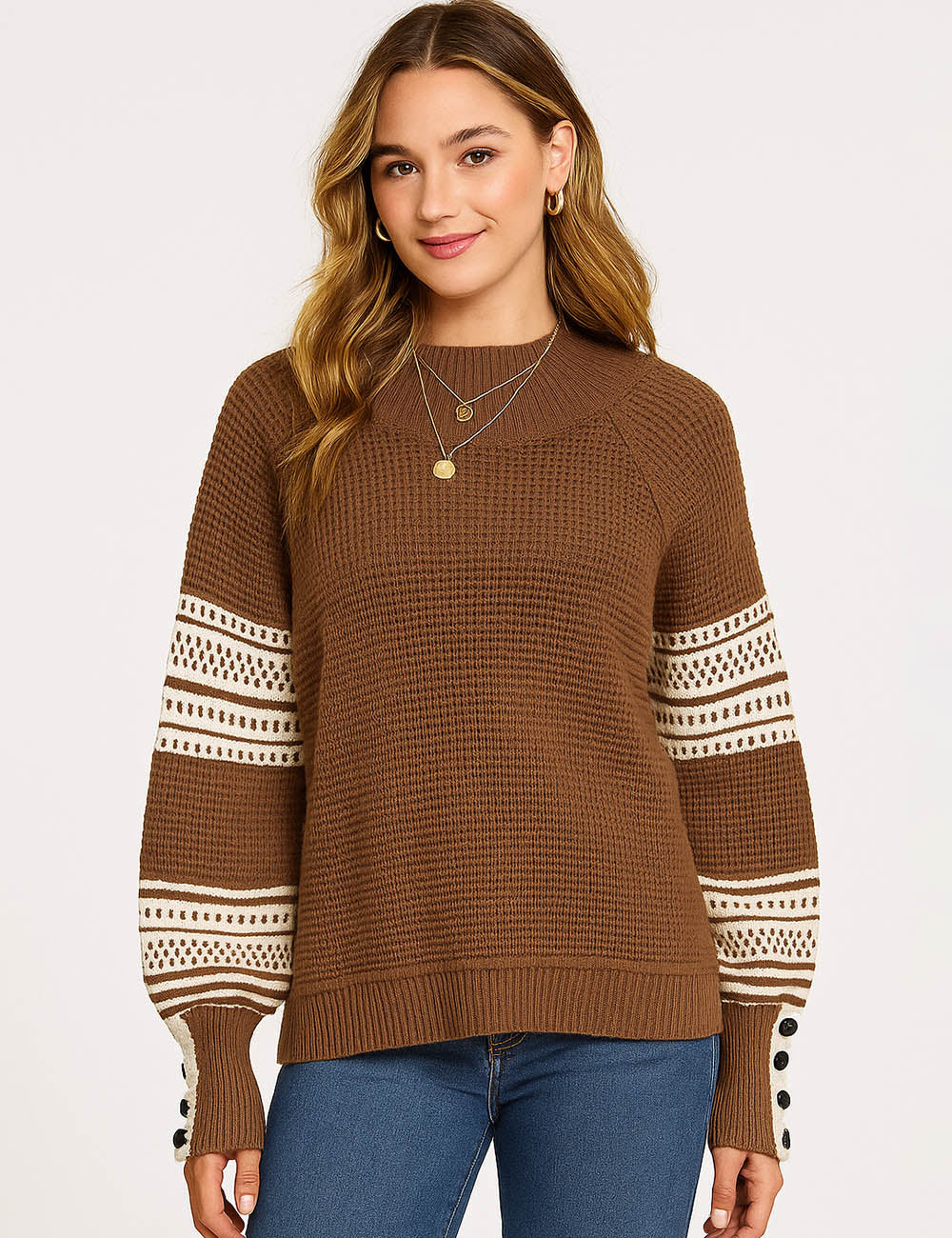 Ladies Jacquard Mock Neck Bubble Sleeves Rib Knit Sweater