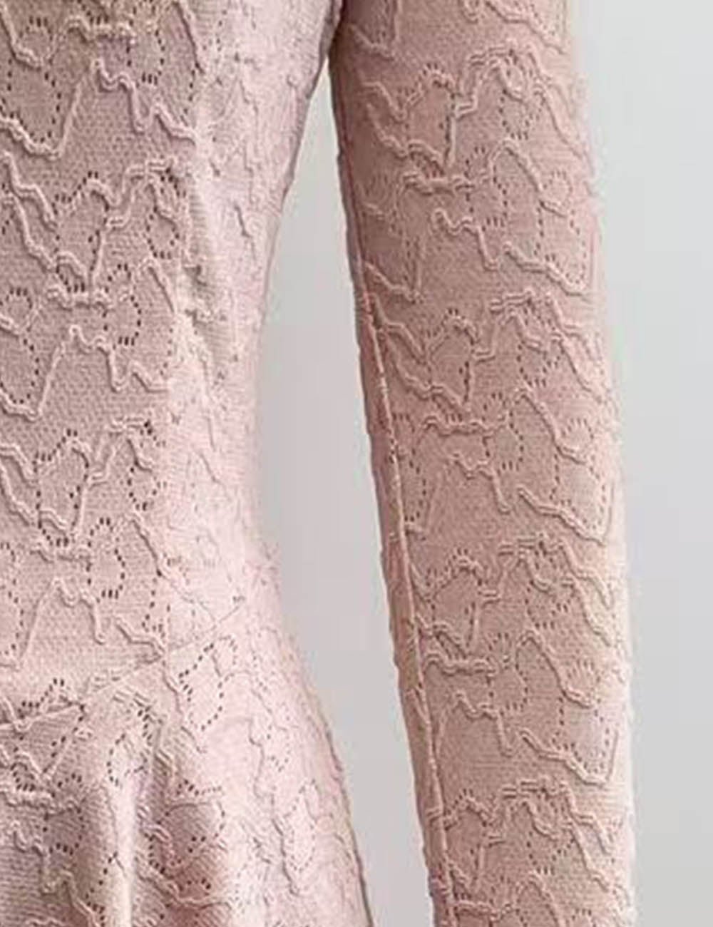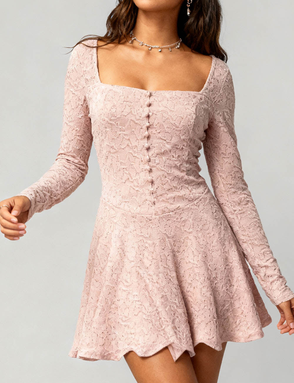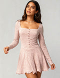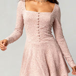 Ladies Jacquard Pattern Square Neck Flared Hem Mini Dress