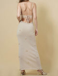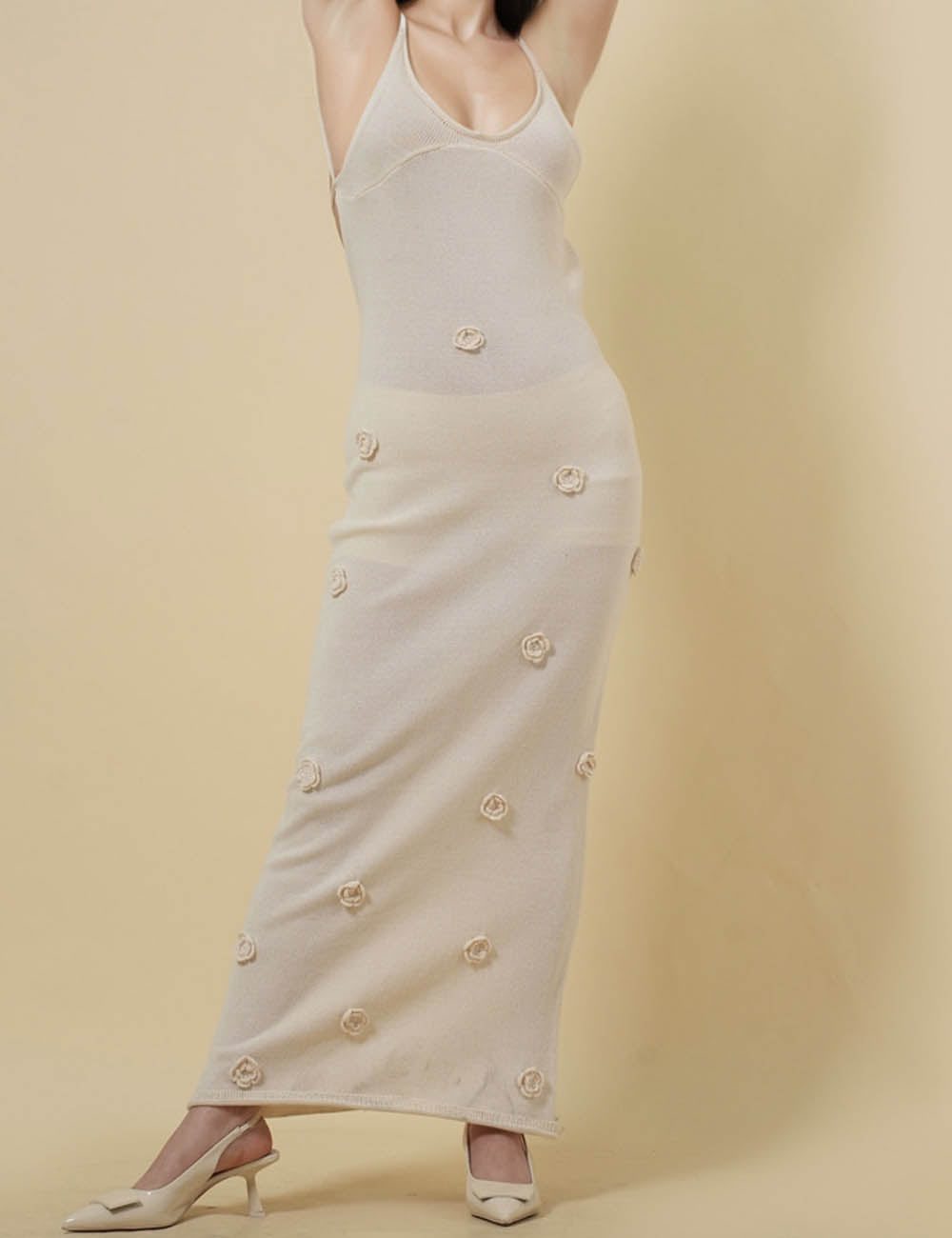 Ladies Knit Flower Backless Strape Tie Maxi Dress 8SKD51106