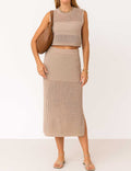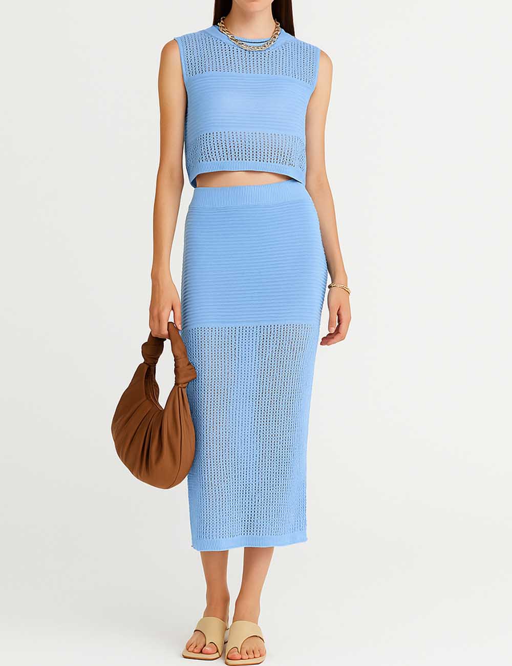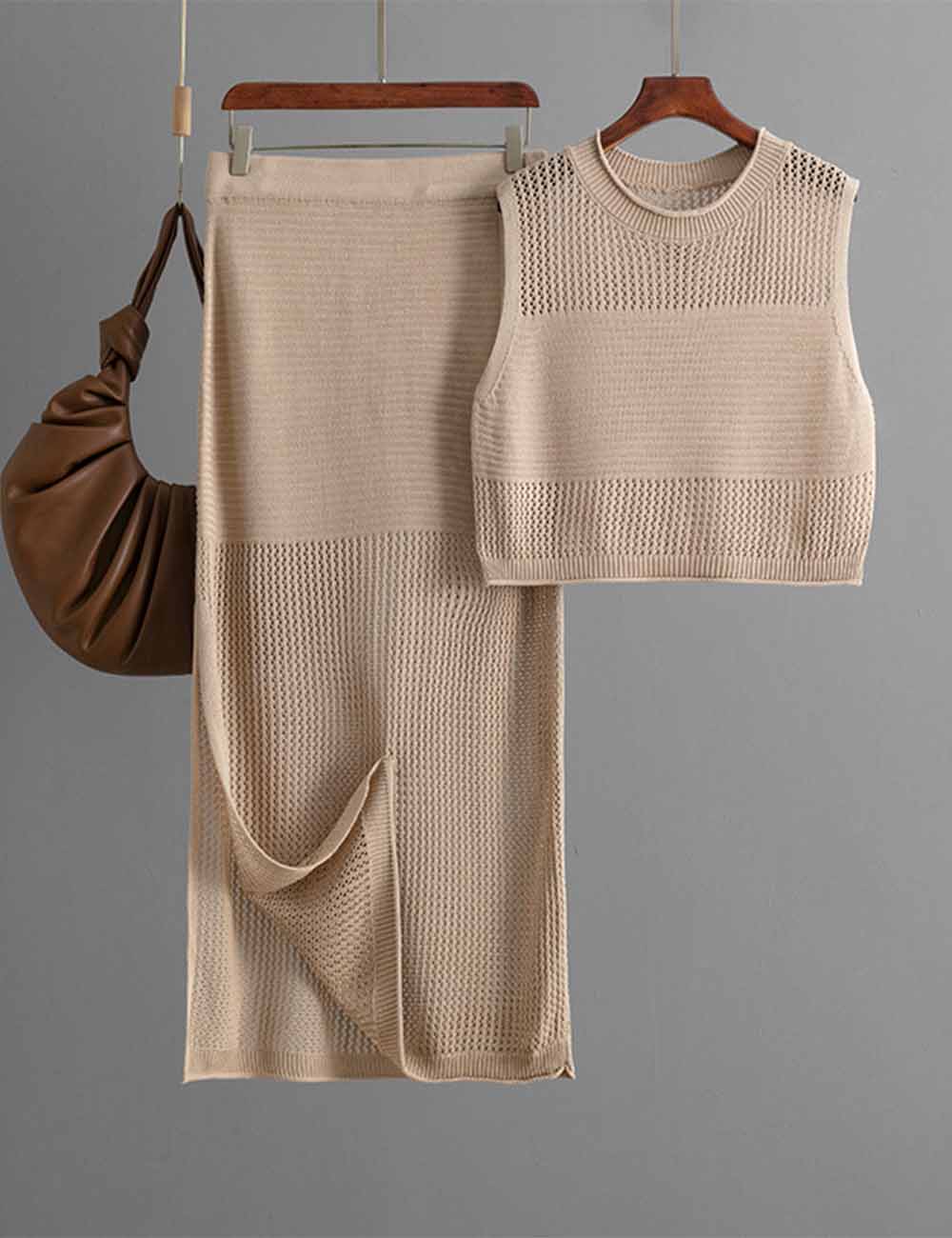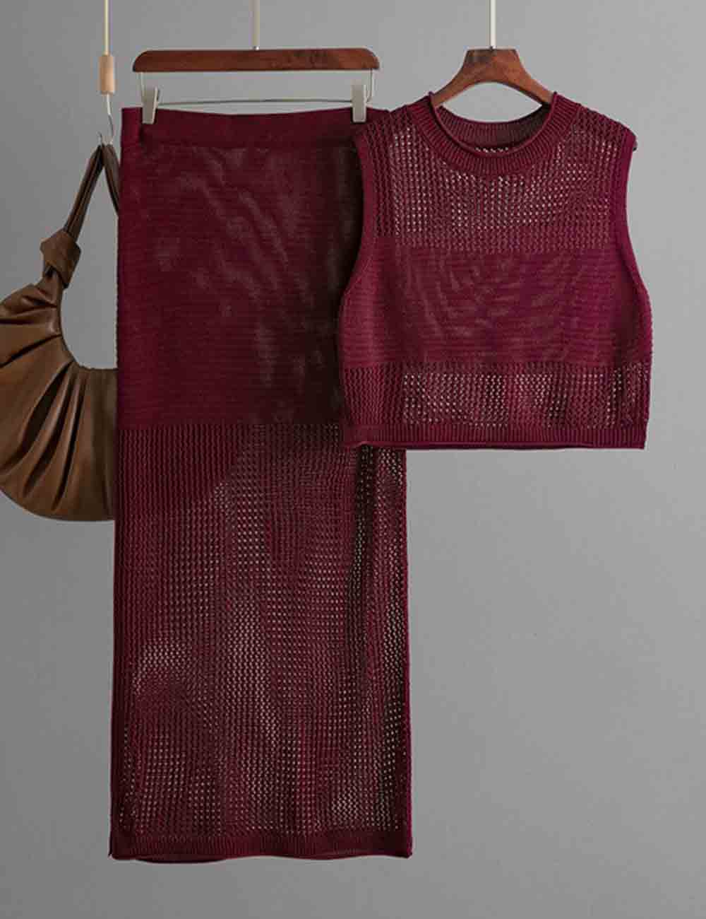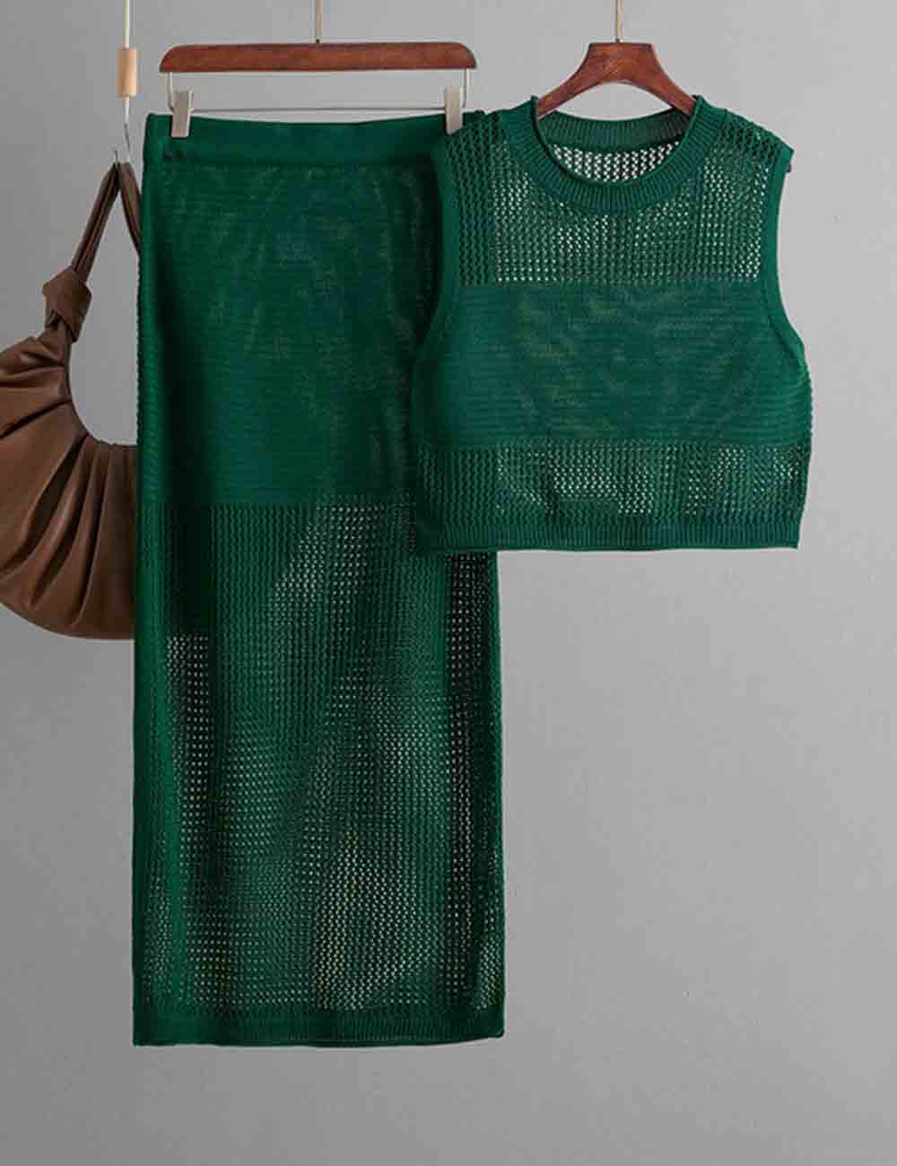 Ladies Knit Hollow Out Vest & Skirt 2PCS Set