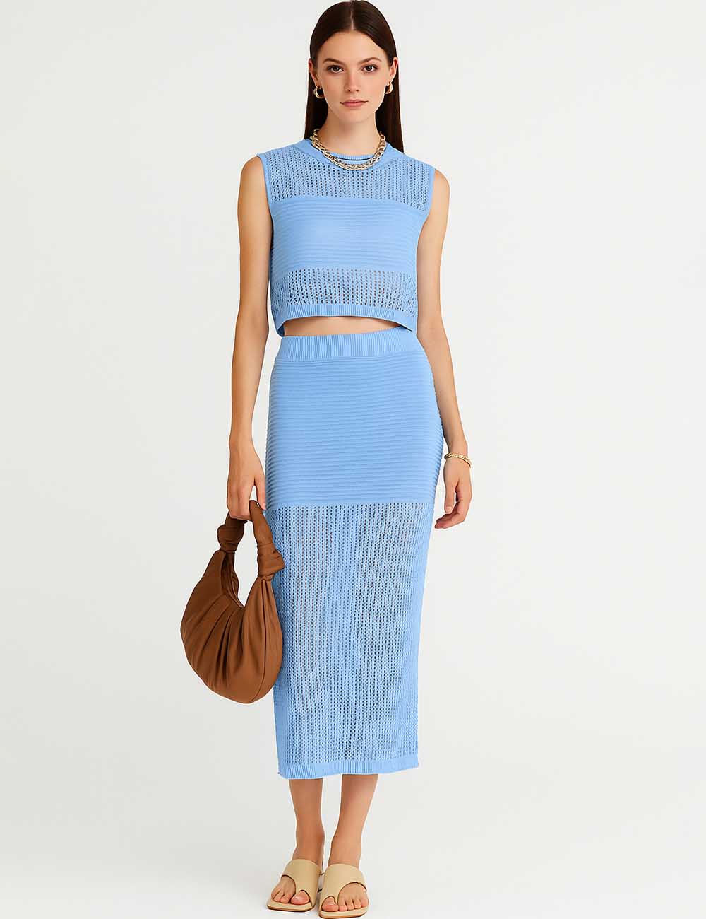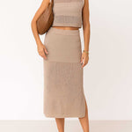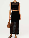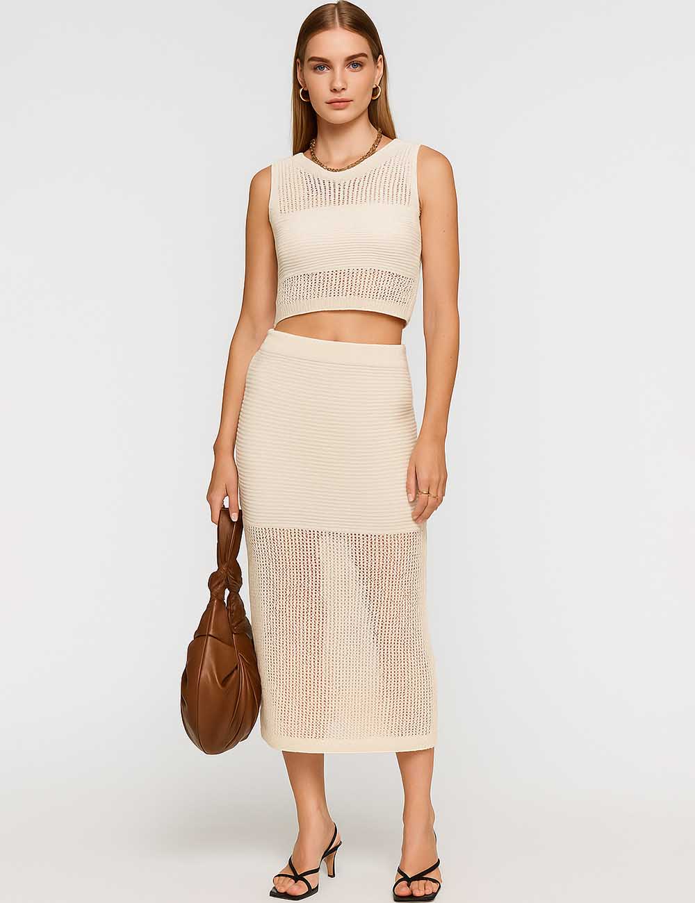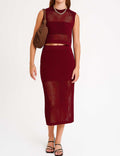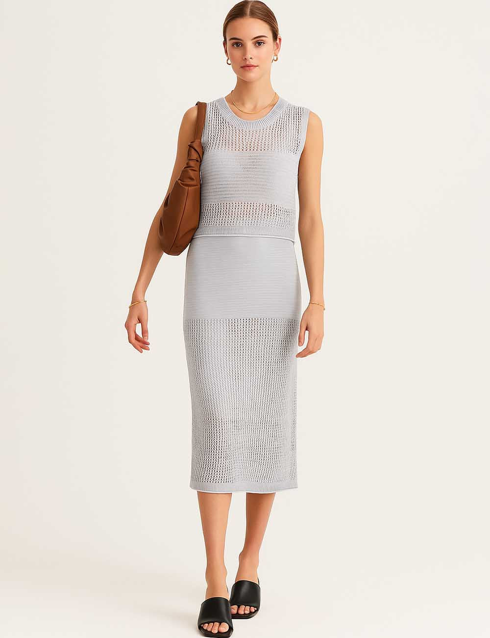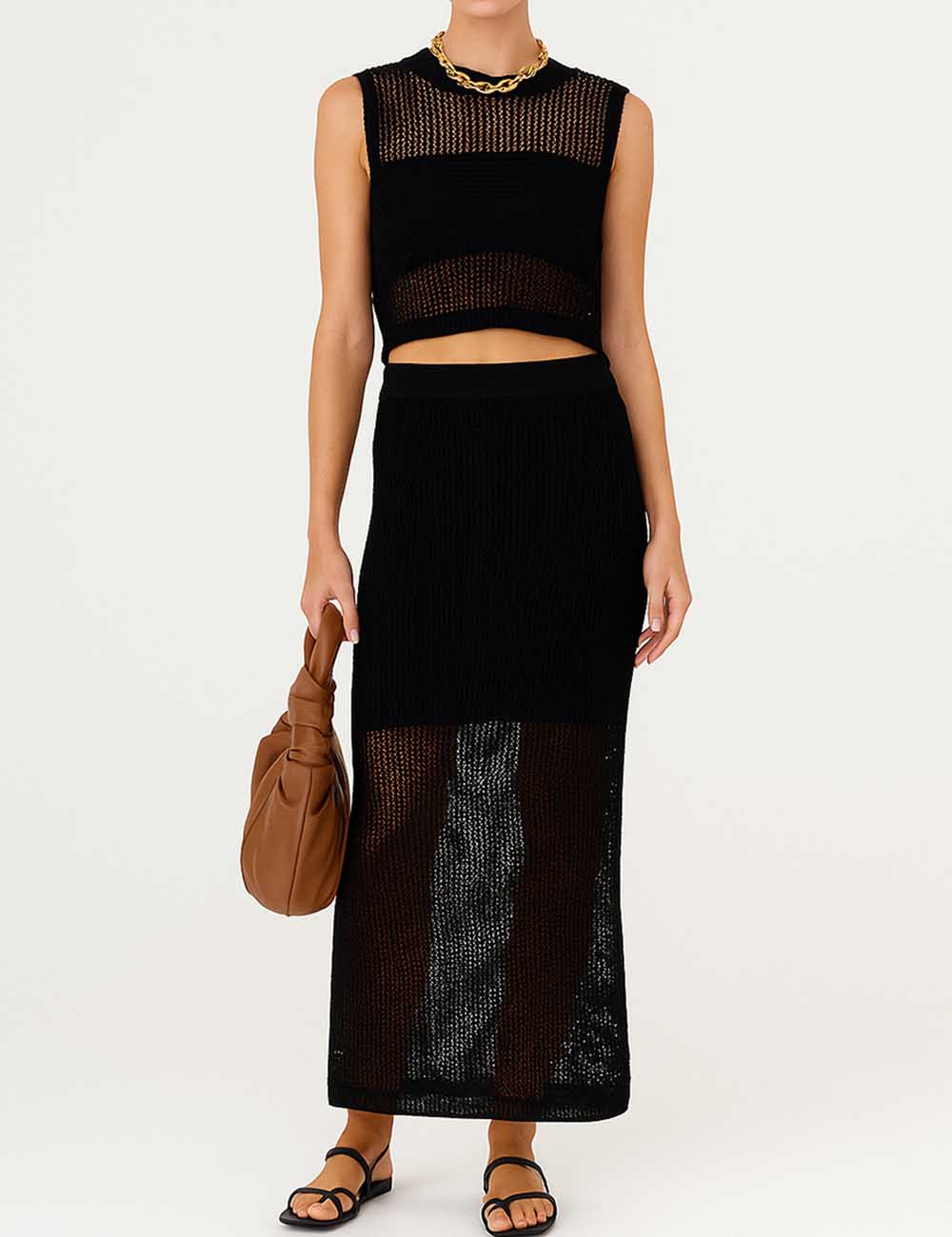 Ladies Knit Hollow Out Vest & Skirt 2PCS Set
