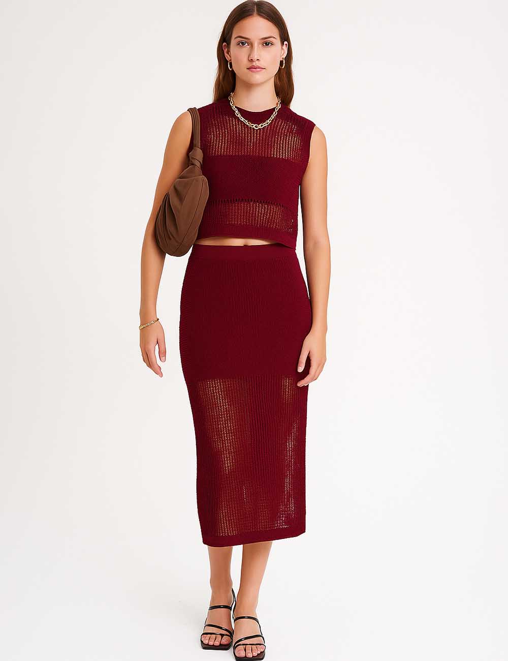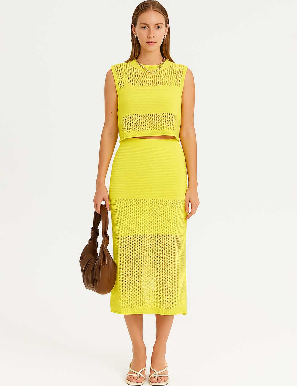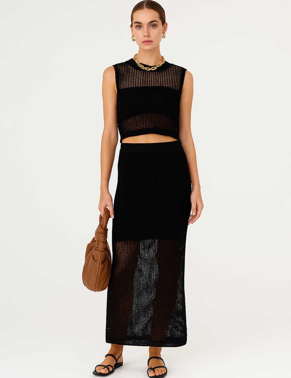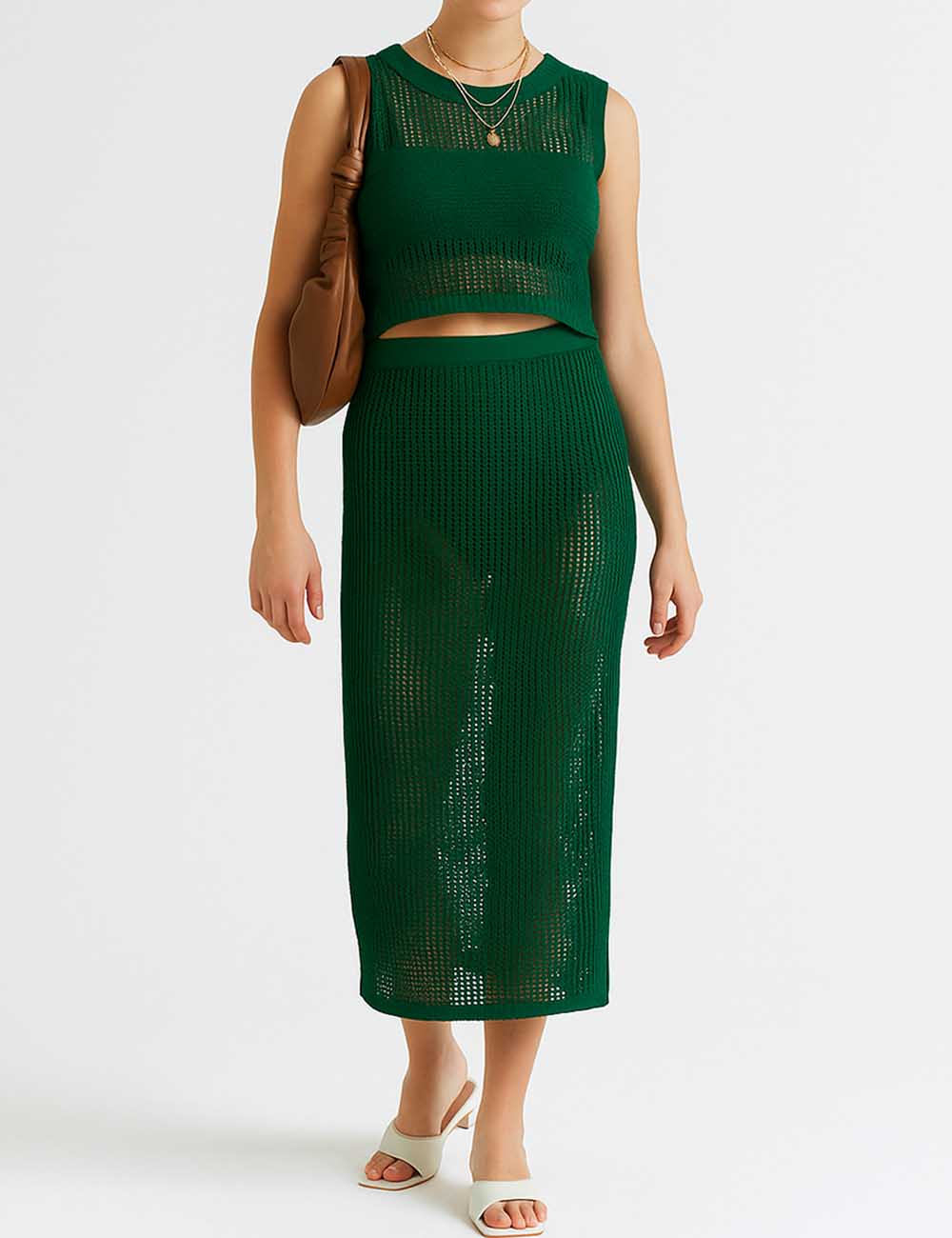 Ladies Knit Hollow Out Vest & Skirt 2PCS Set